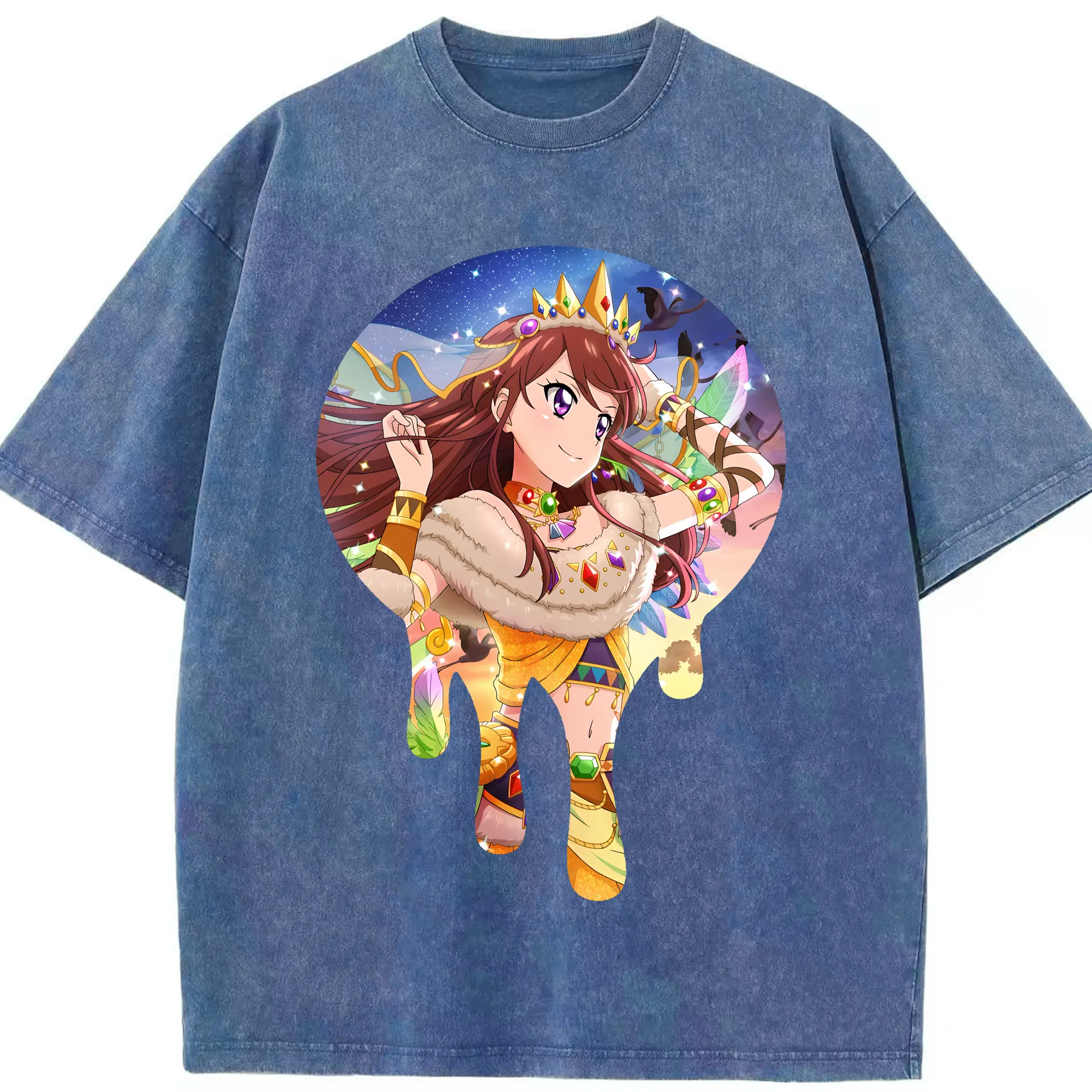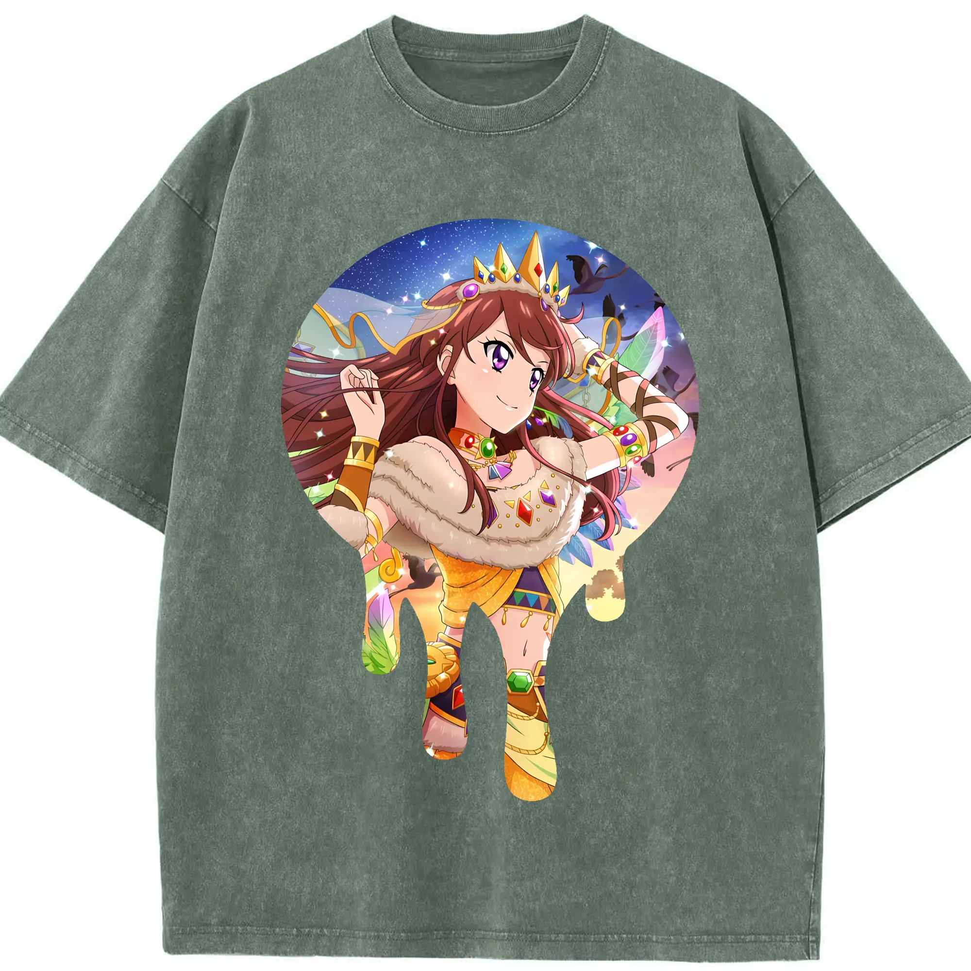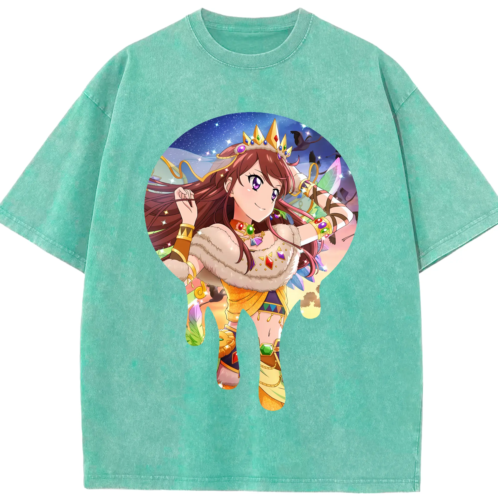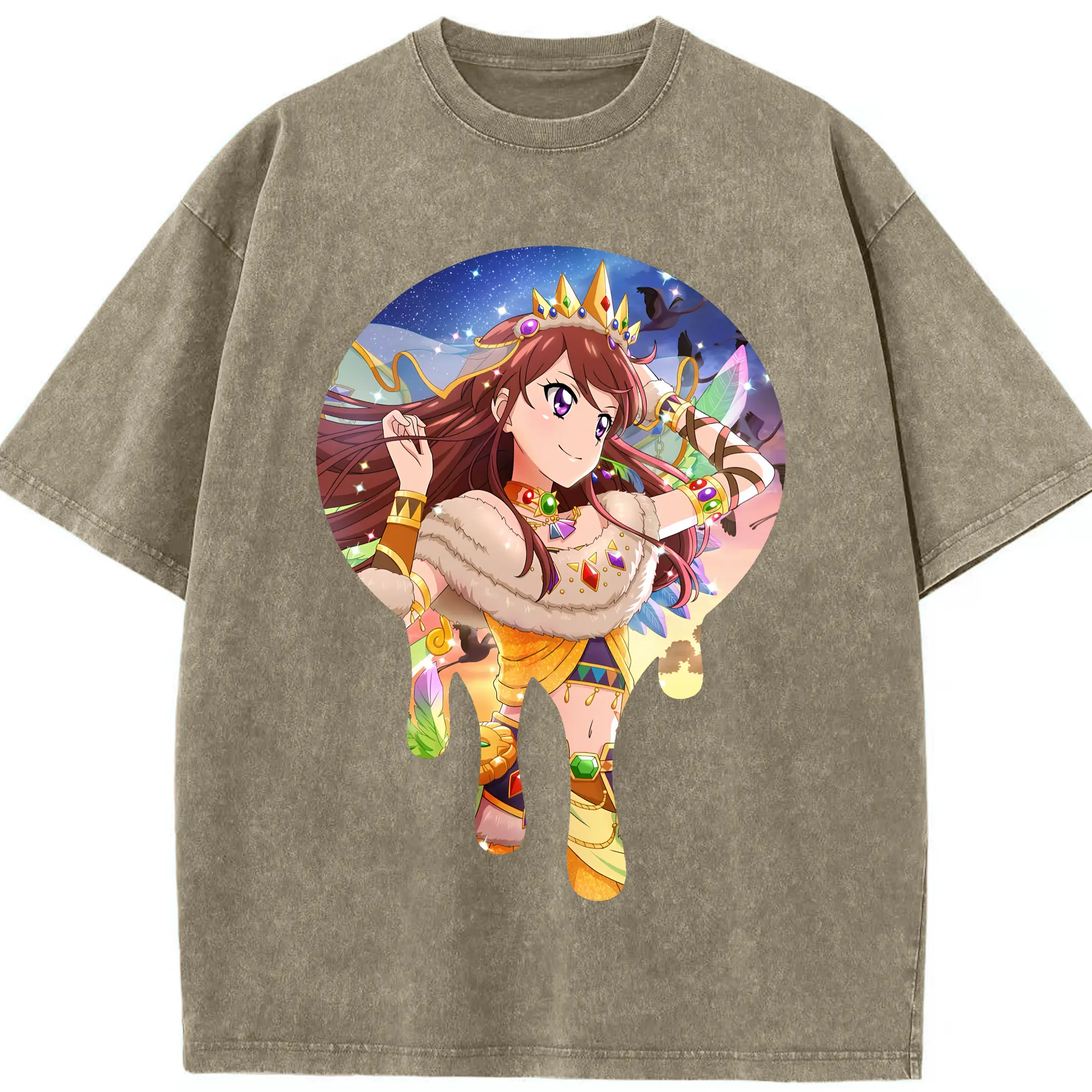 アイカツ グッズ 紫吹 蘭 - 綿100% ヴィンテージ風 半袖Tシャツ ・ 背面プリント ・ 柔らか肌触り ・ 通気性 快適 ・ スポーツ カジュアル 外出用