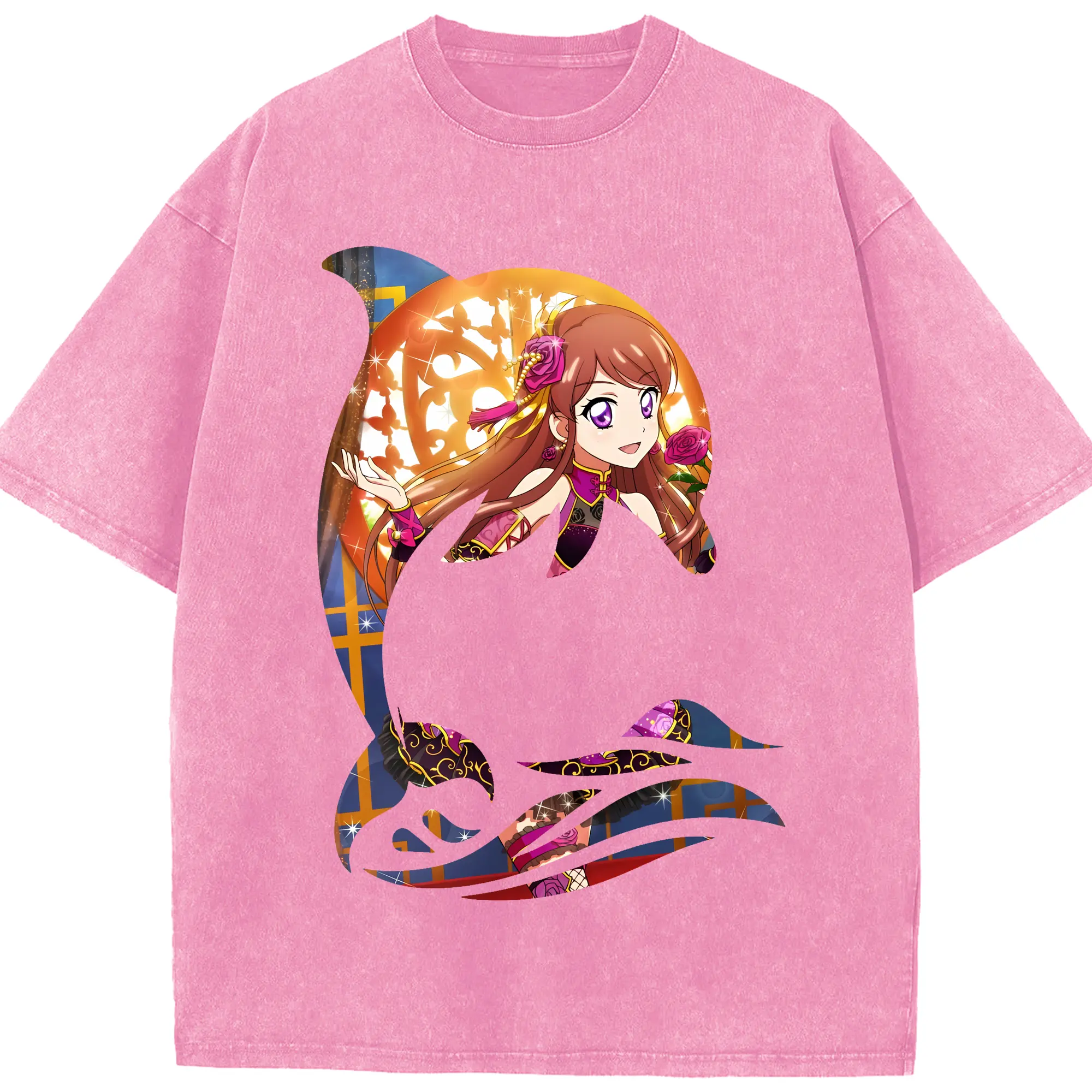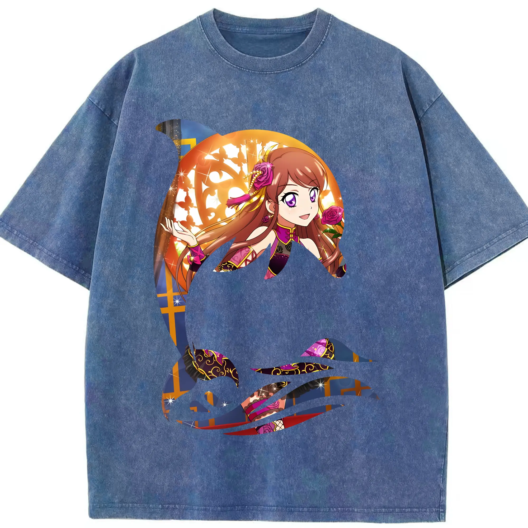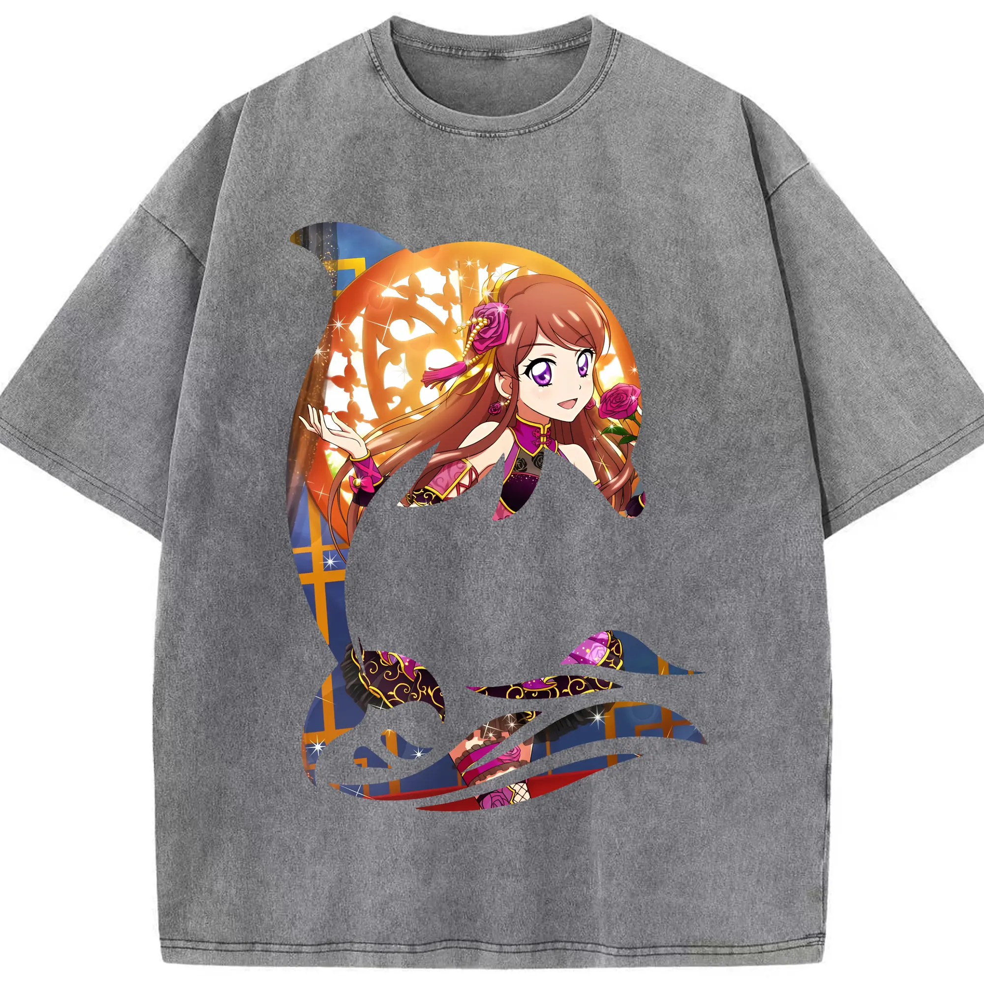 アイカツ グッズ 紫吹 蘭 - 綿100% ヴィンテージ風 半袖Tシャツ ・ 背面プリント ・ 柔らか肌触り ・ 通気性 快適 ・ スポーツ カジュアル 外出用