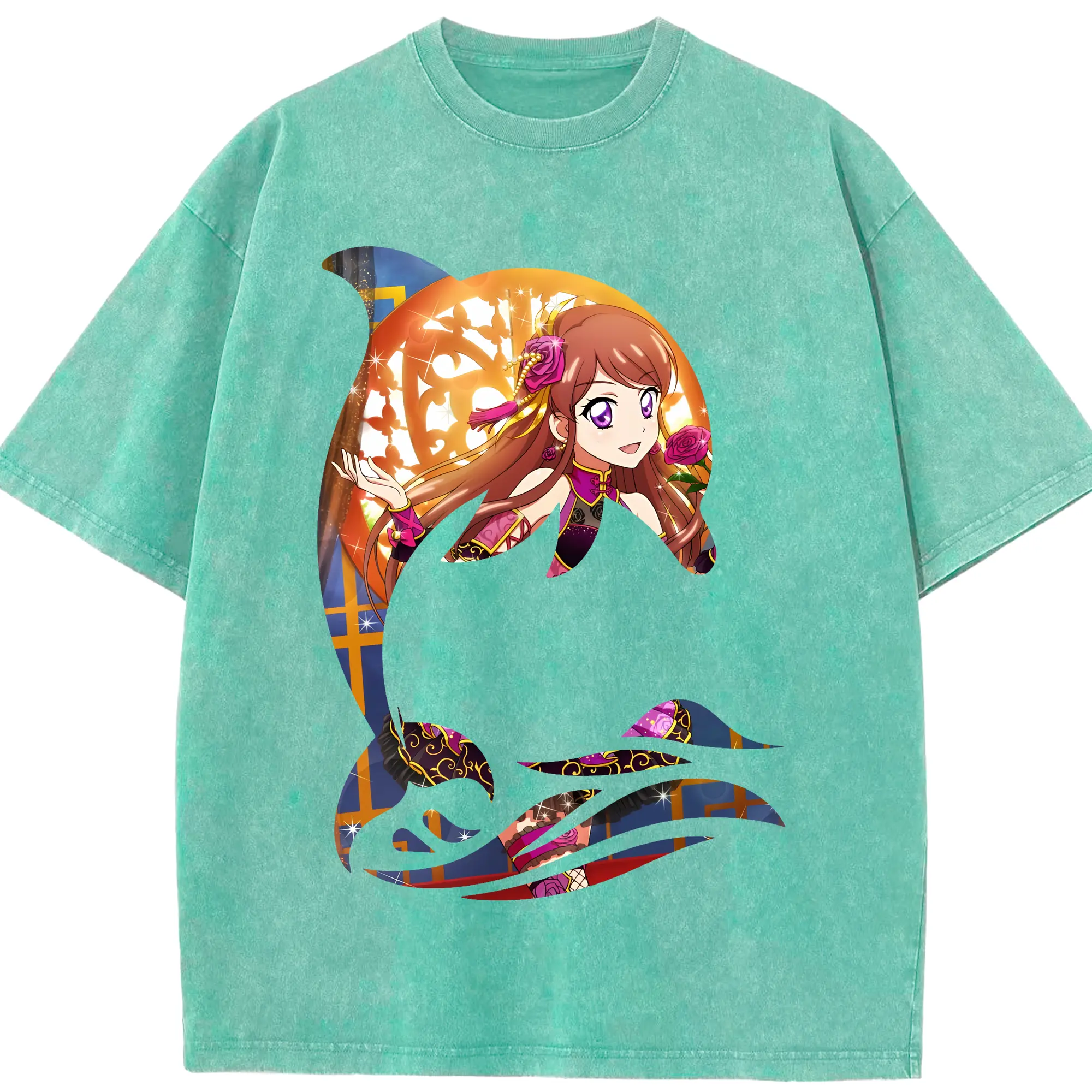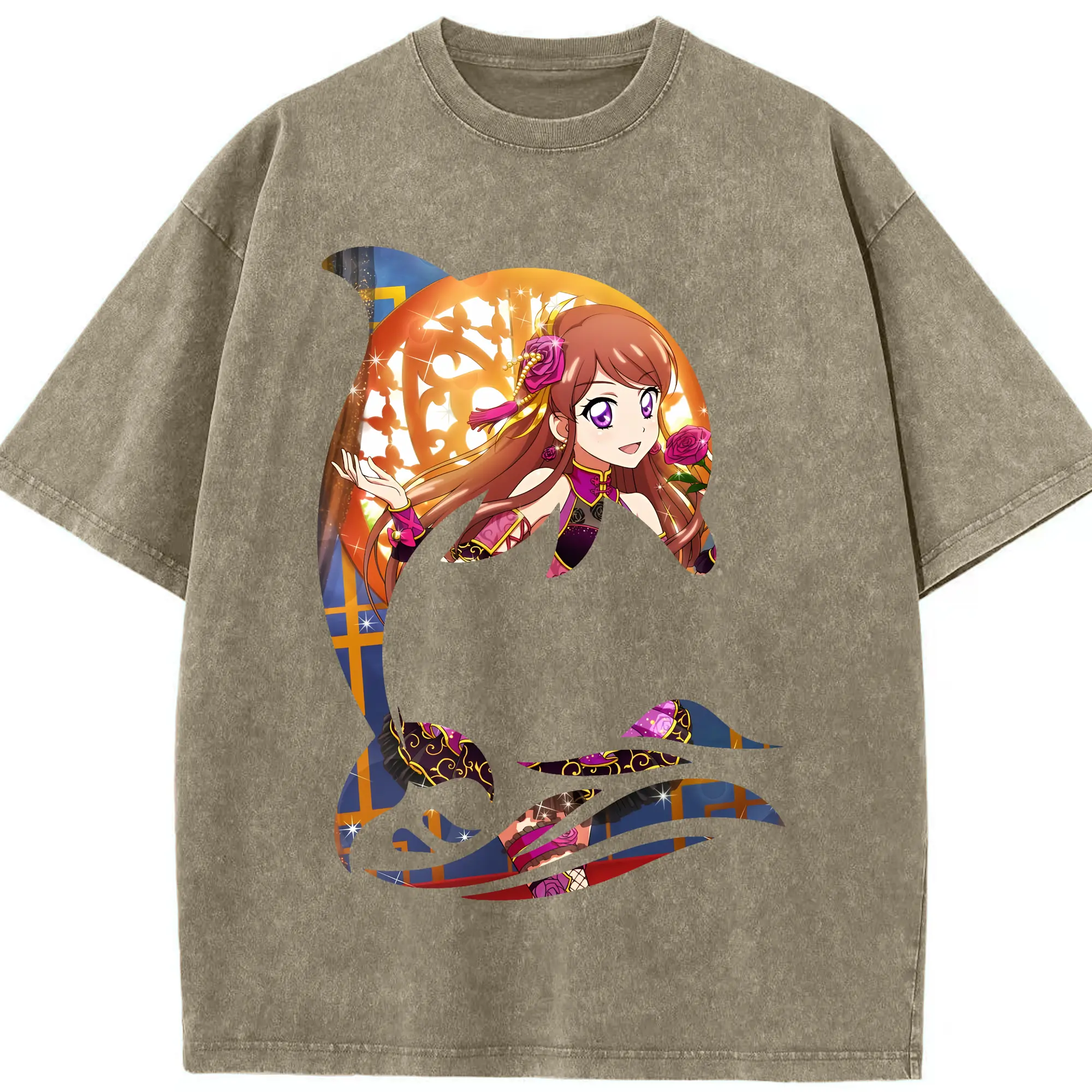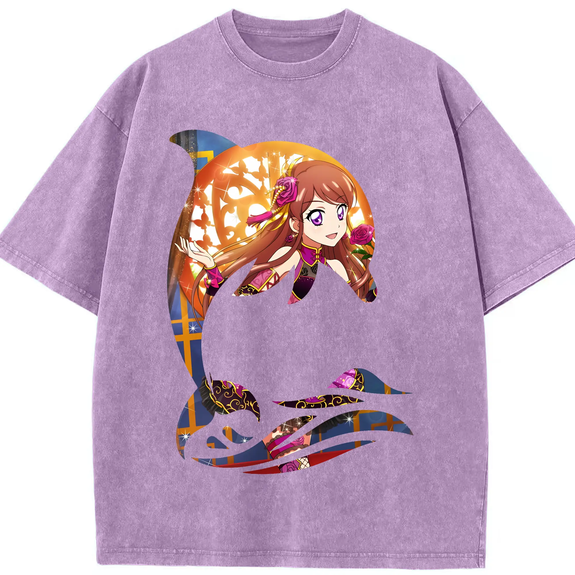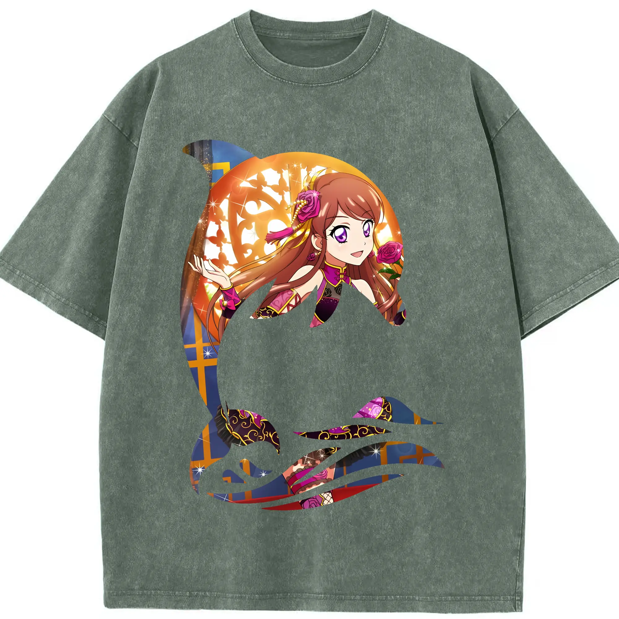 アイカツ グッズ 紫吹 蘭 - 綿100% ヴィンテージ風 半袖Tシャツ ・ 背面プリント ・ 柔らか肌触り ・ 通気性 快適 ・ スポーツ カジュアル 外出用