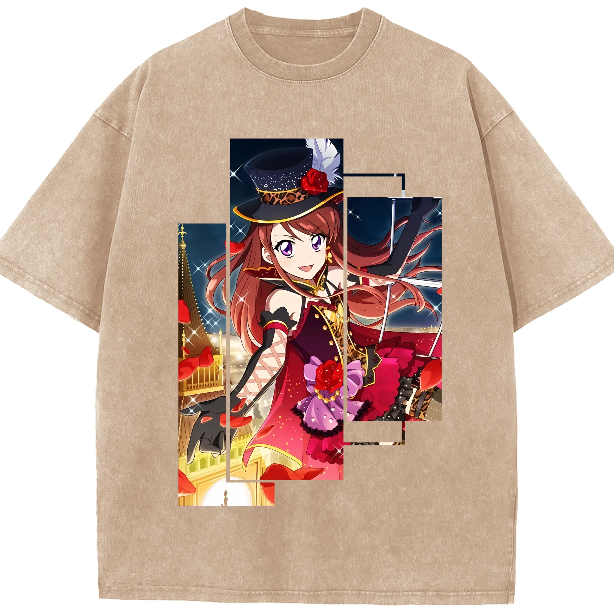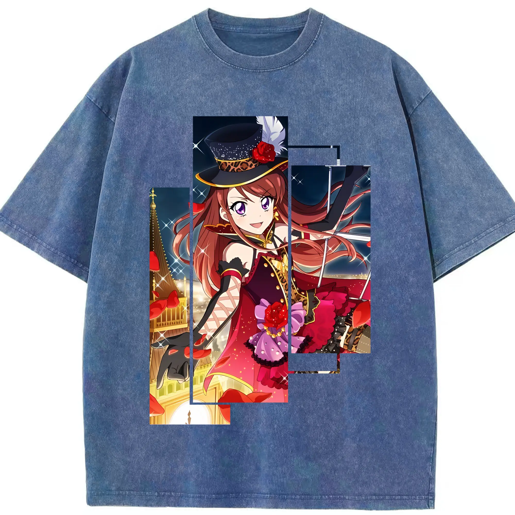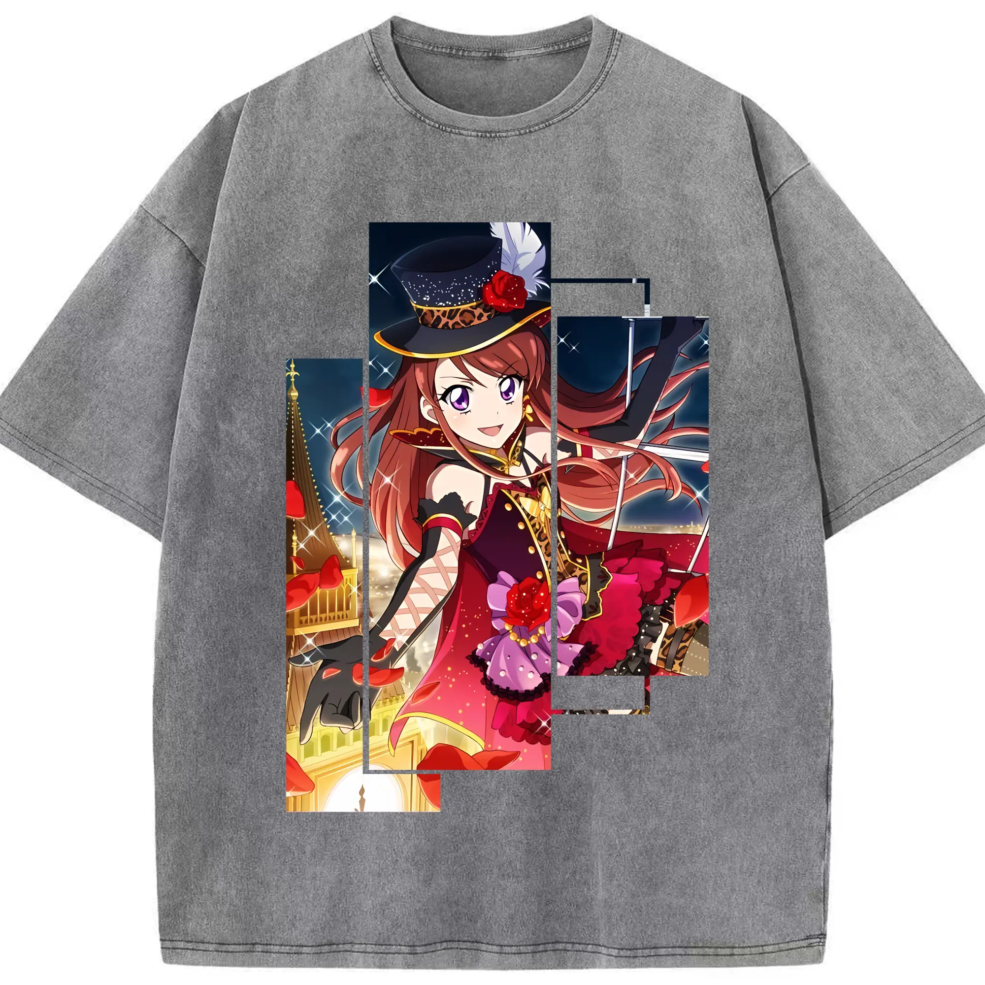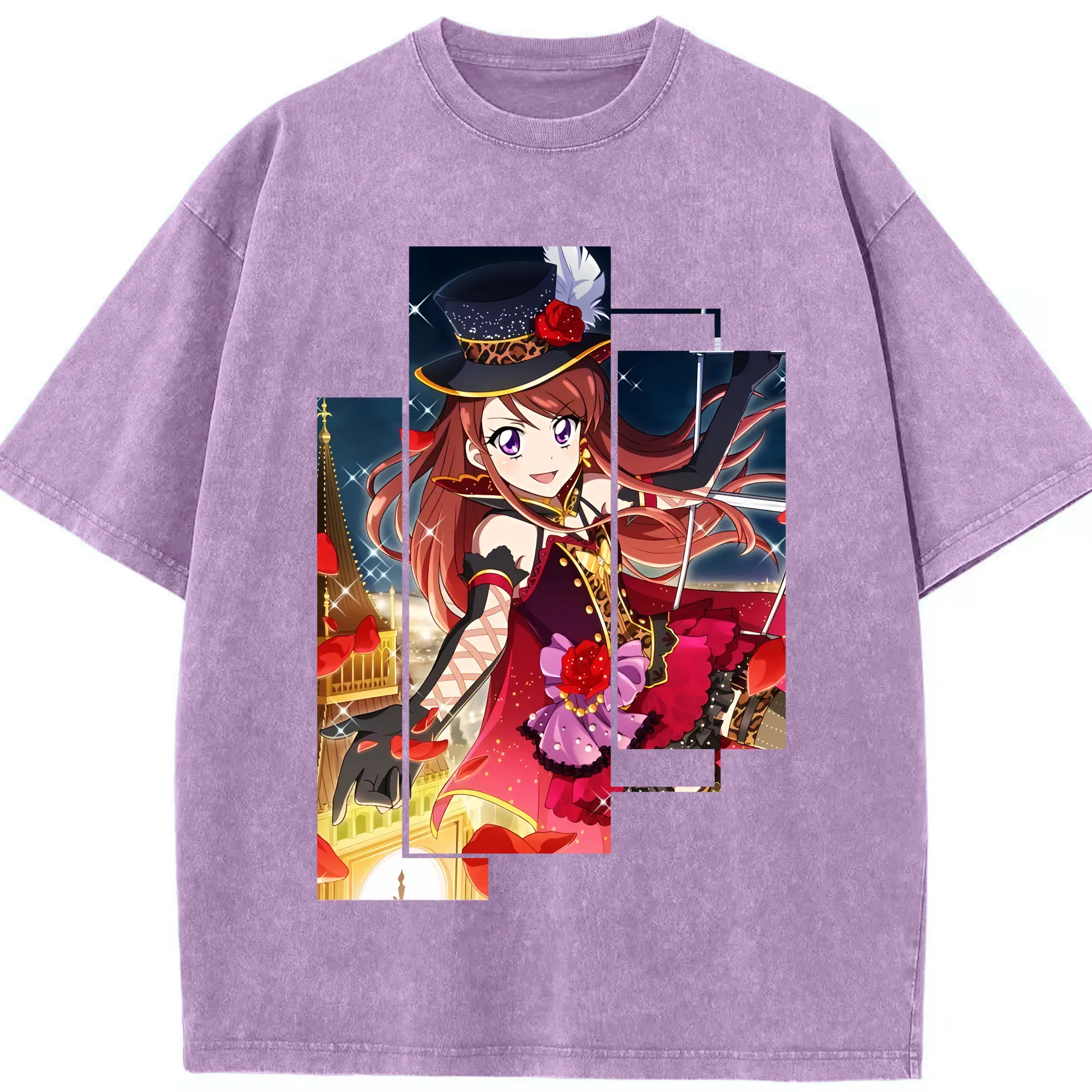 アイカツ グッズ 紫吹 蘭 - 綿100% ヴィンテージ風 半袖Tシャツ ・ 背面プリント ・ 柔らか肌触り ・ 通気性 快適 ・ スポーツ カジュアル 外出用