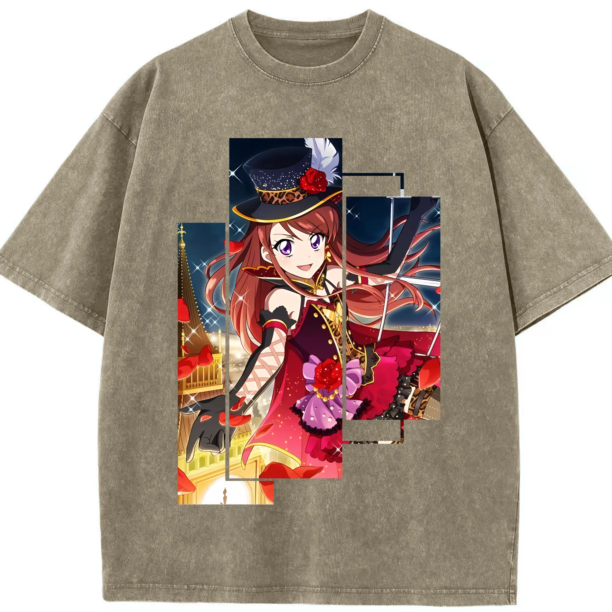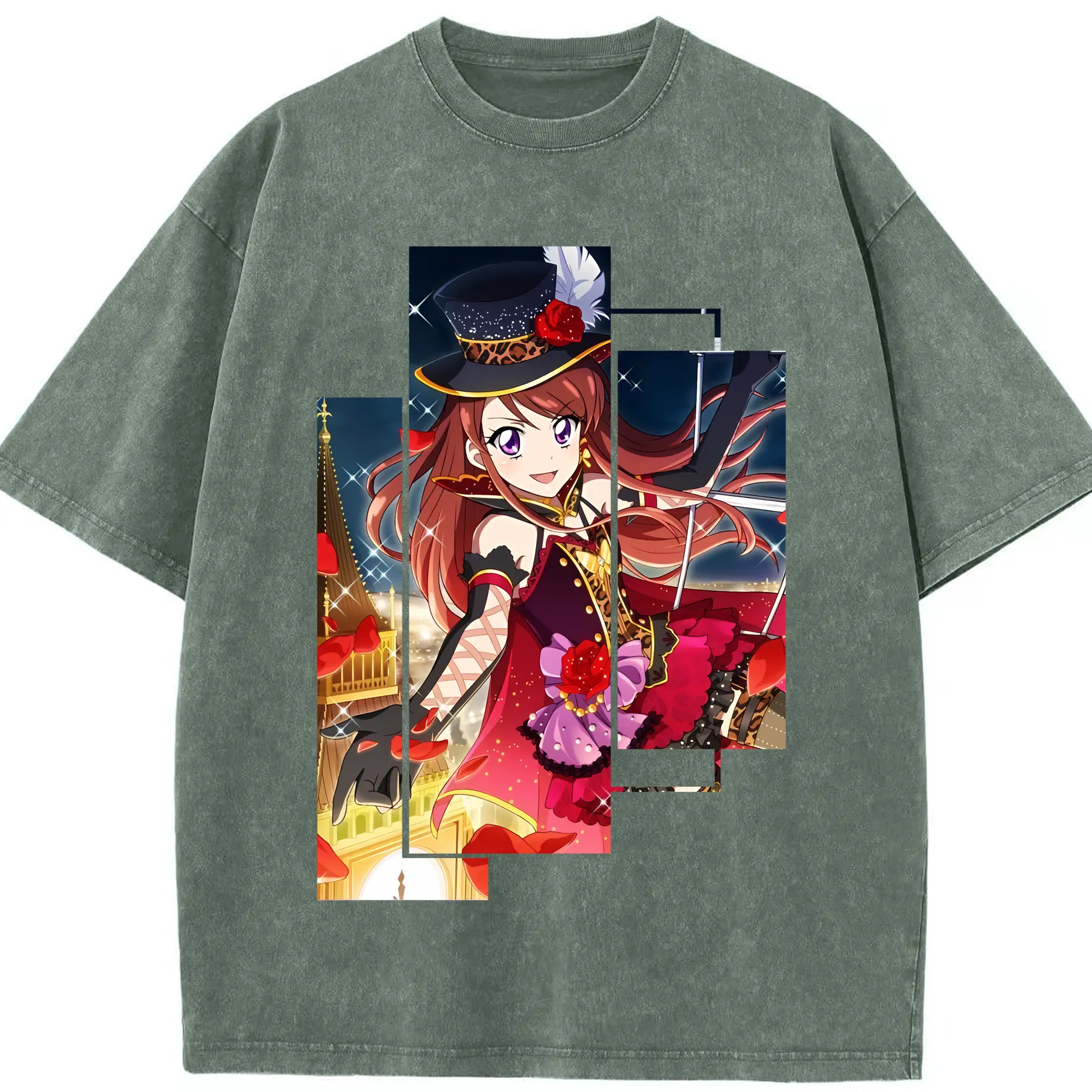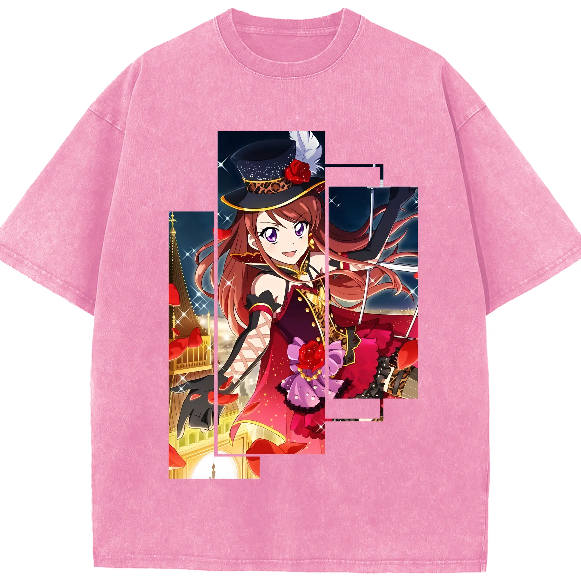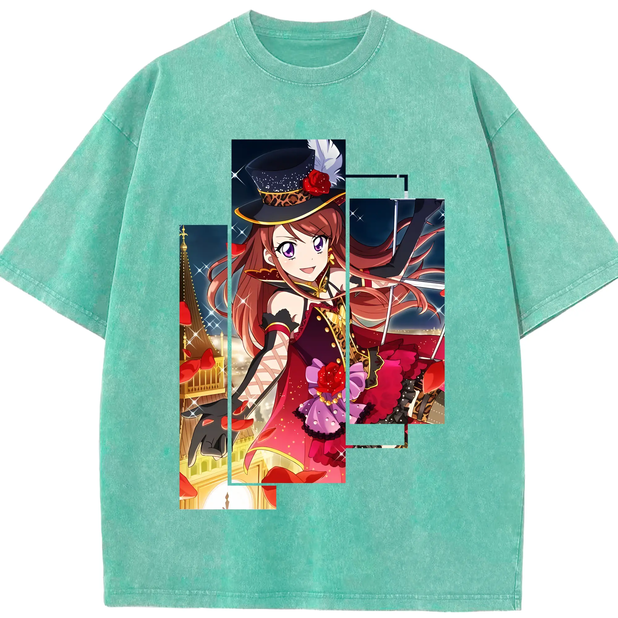 アイカツ グッズ 紫吹 蘭 - 綿100% ヴィンテージ風 半袖Tシャツ ・ 背面プリント ・ 柔らか肌触り ・ 通気性 快適 ・ スポーツ カジュアル 外出用