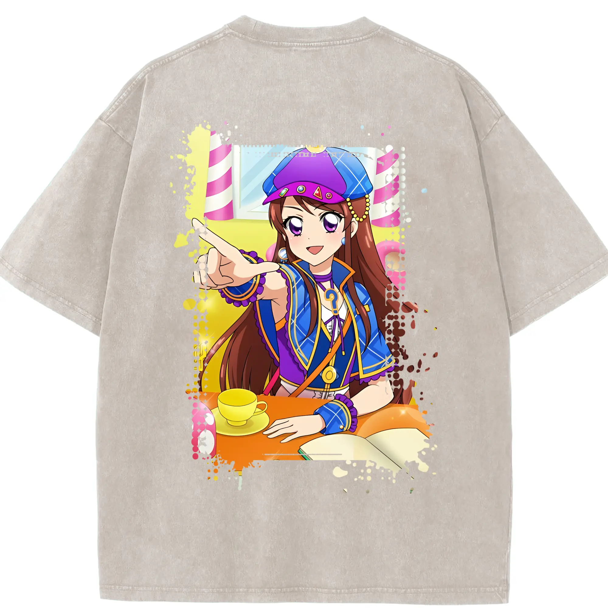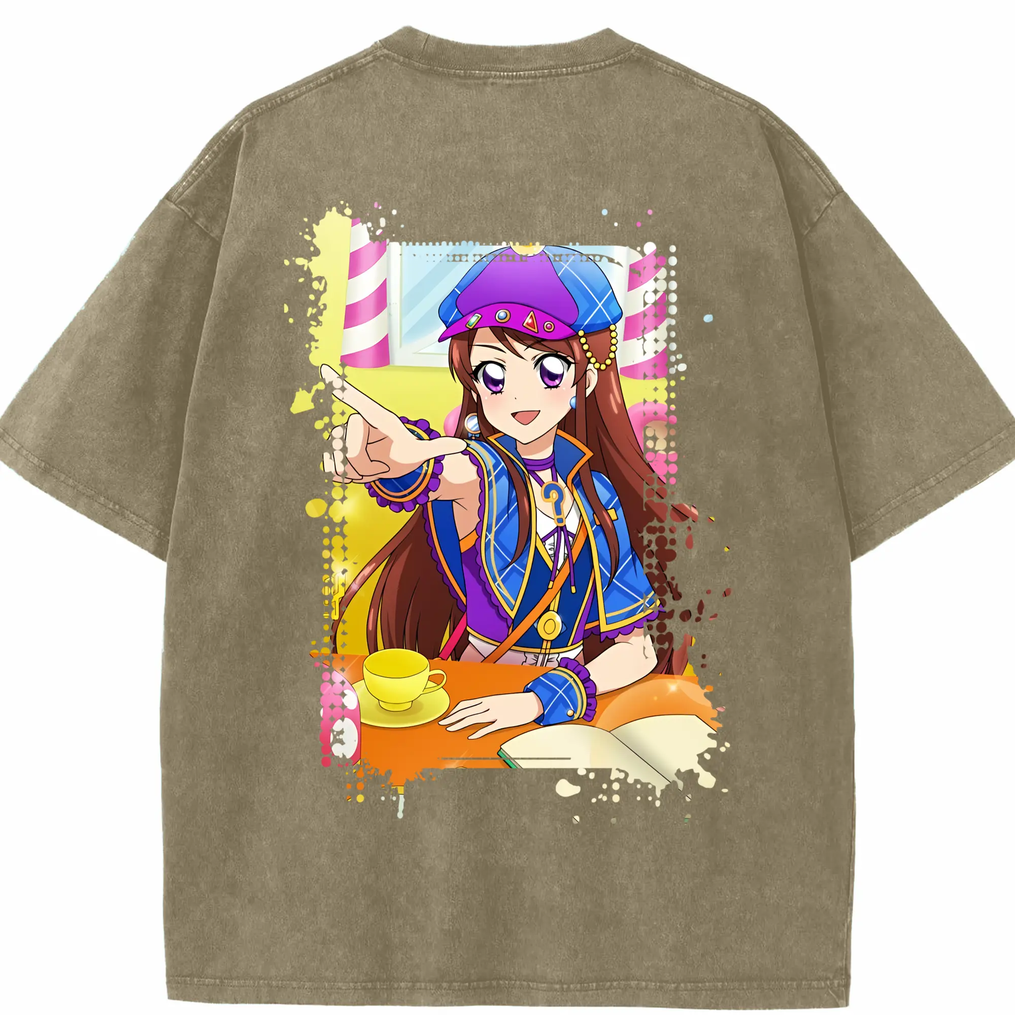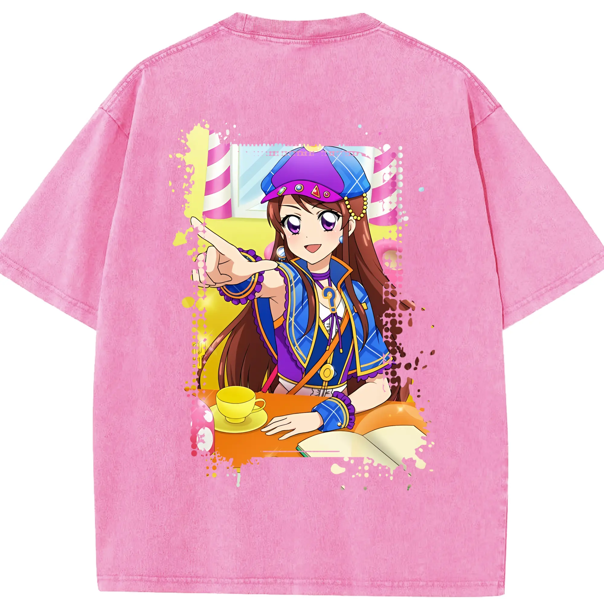 アイカツ グッズ 紫吹 蘭 - 綿100% ヴィンテージ風 半袖Tシャツ ・ フロントプリント ・ 柔らか肌触り ・ 通気性 快適 ・ スポーツ カジュアル 外出用