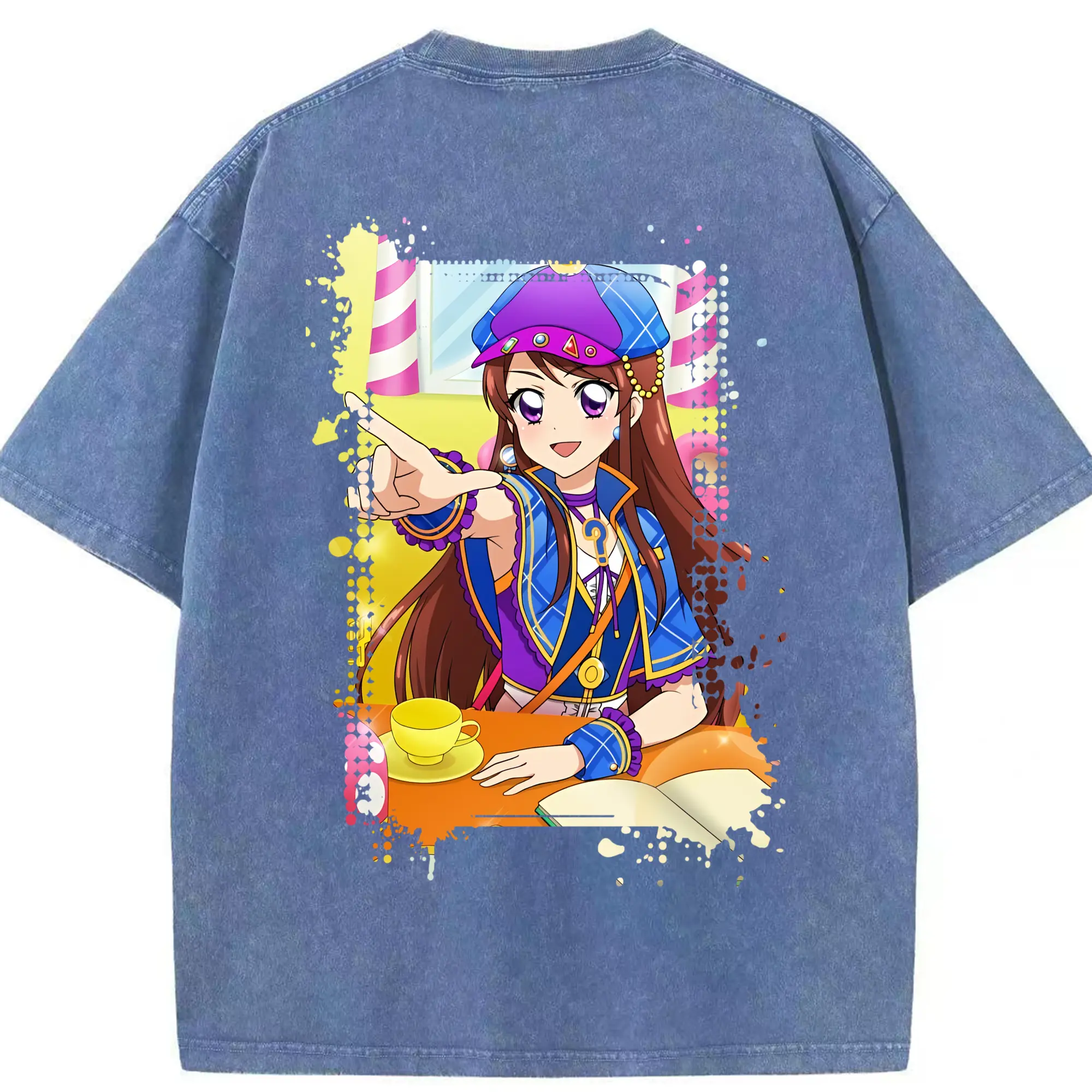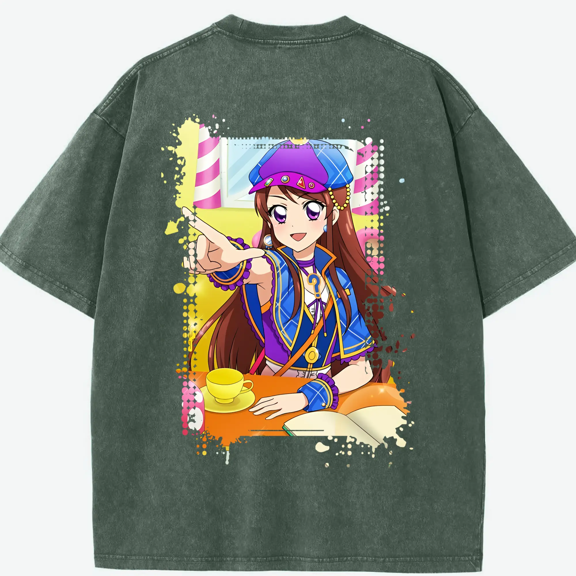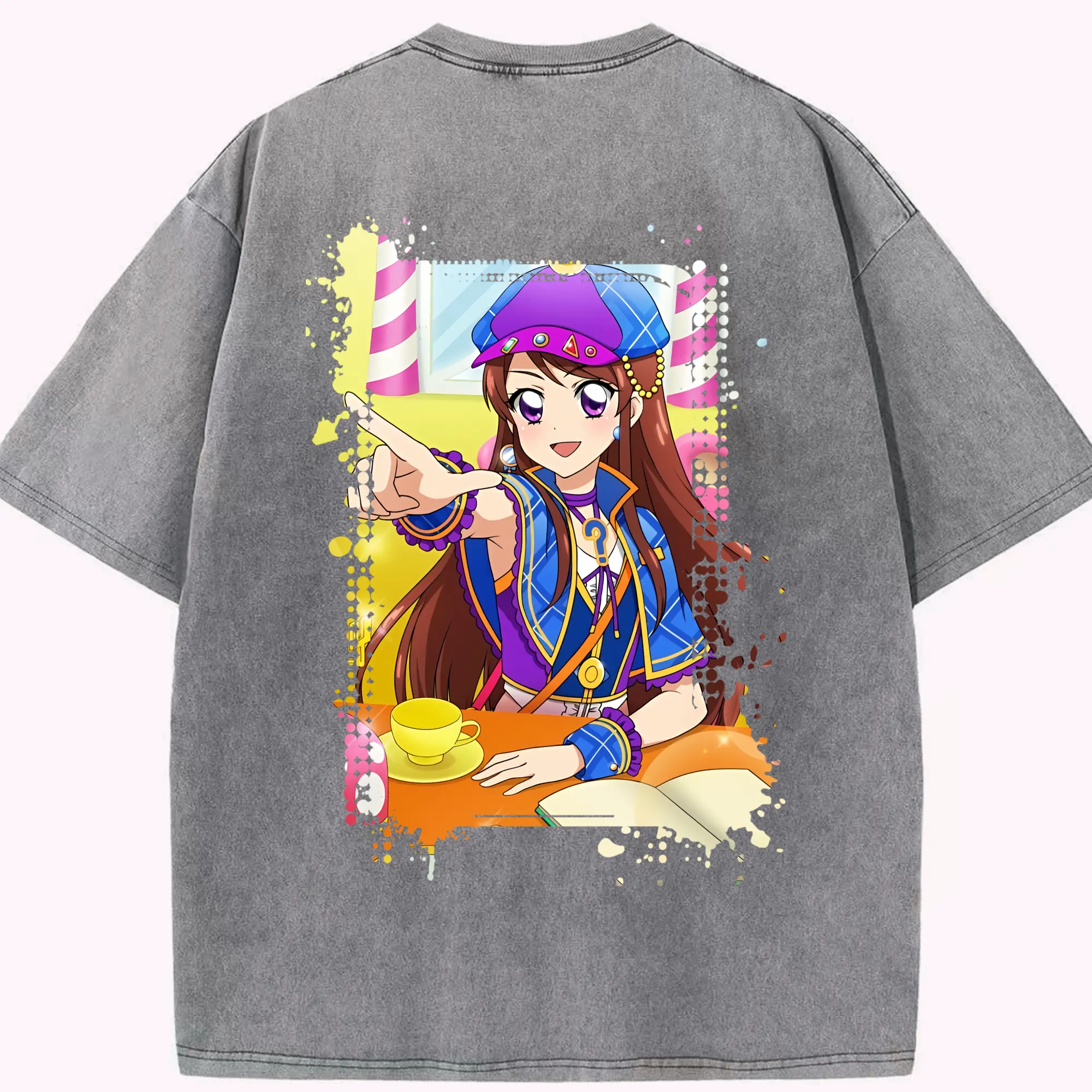 アイカツ グッズ 紫吹 蘭 - 綿100% ヴィンテージ風 半袖Tシャツ ・ フロントプリント ・ 柔らか肌触り ・ 通気性 快適 ・ スポーツ カジュアル 外出用