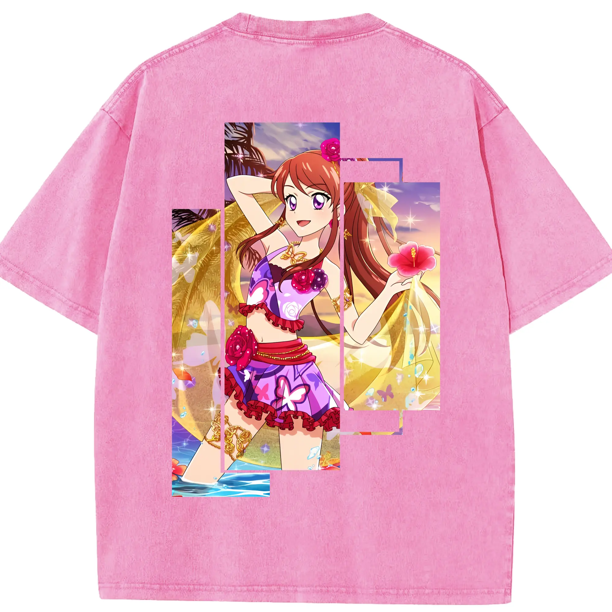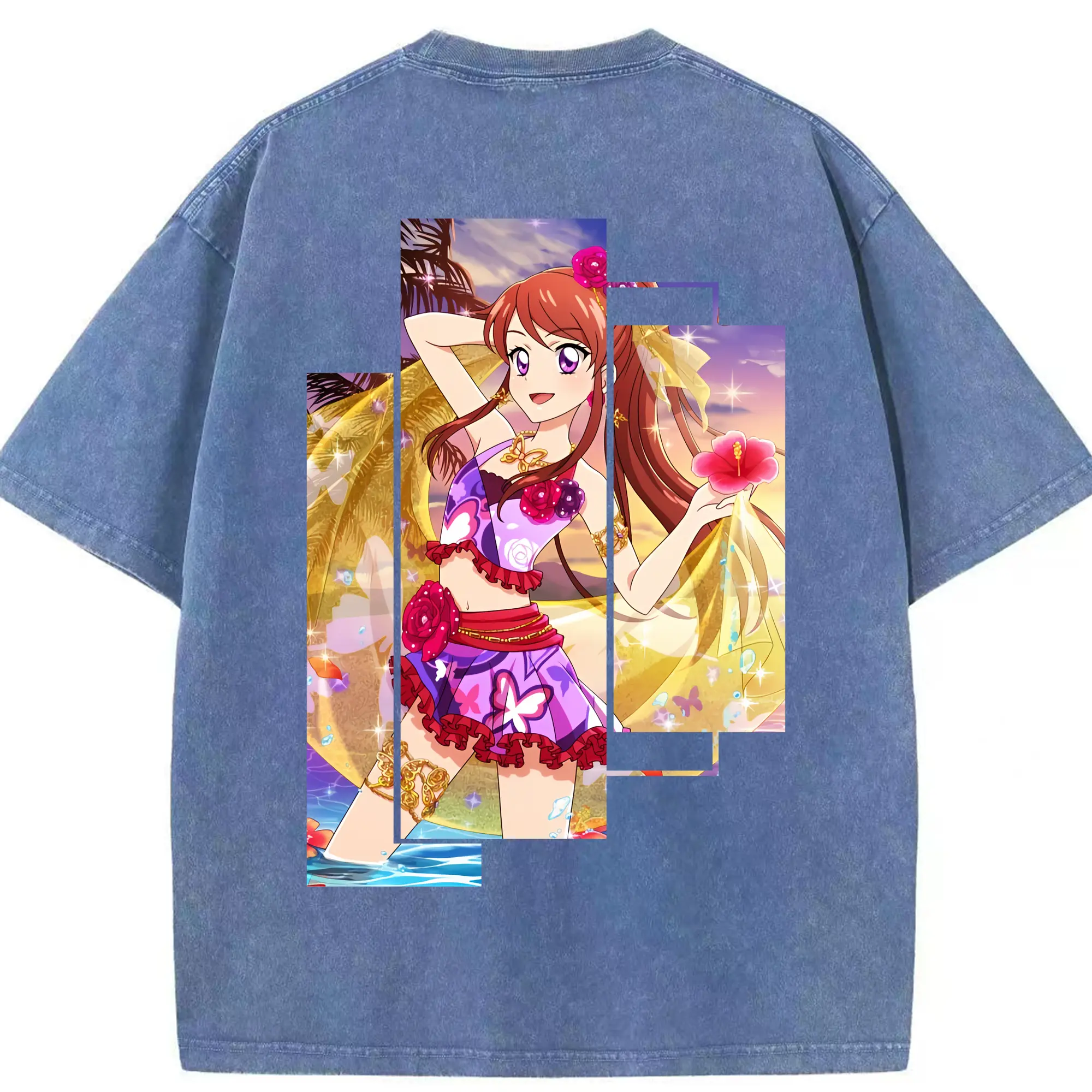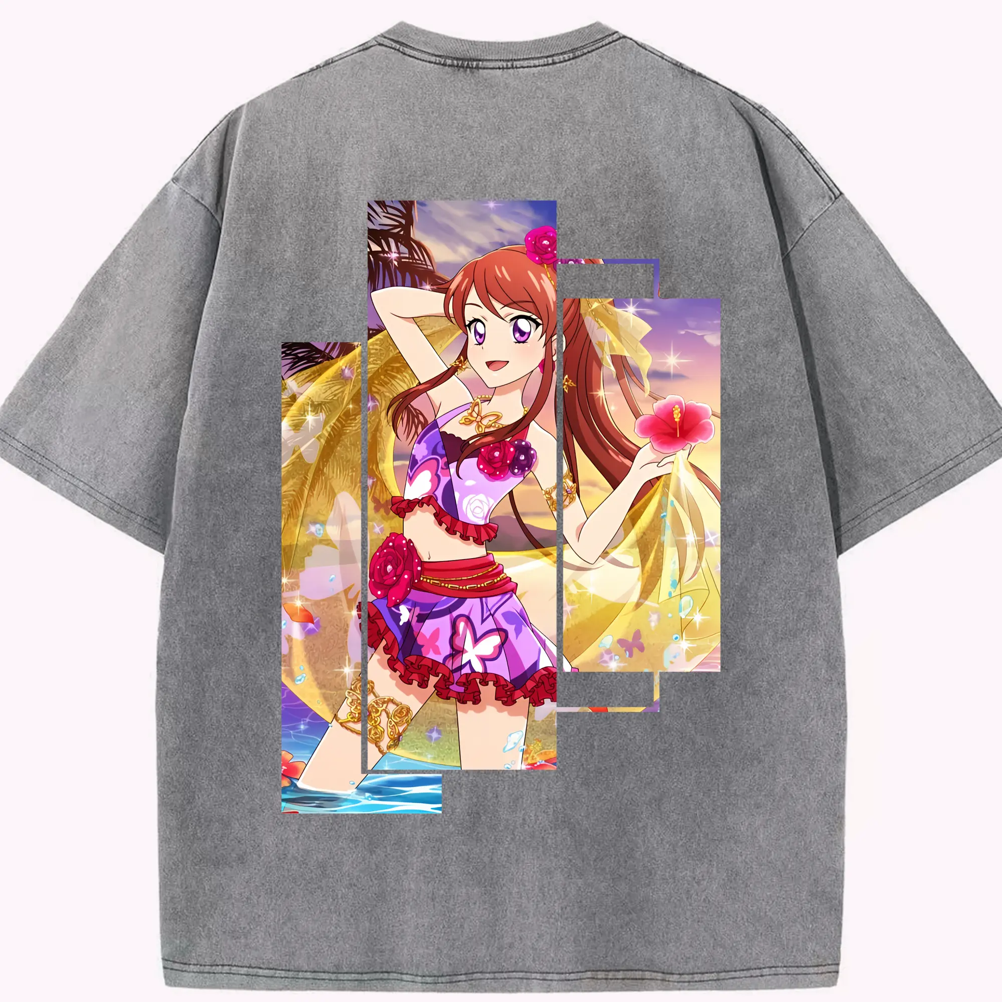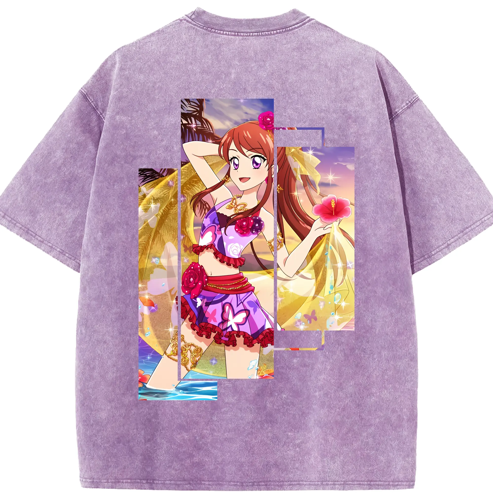 アイカツ グッズ 紫吹 蘭 - 綿100% ヴィンテージ風 半袖Tシャツ ・ フロントプリント ・ 柔らか肌触り ・ 通気性 快適 ・ スポーツ カジュアル 外出用