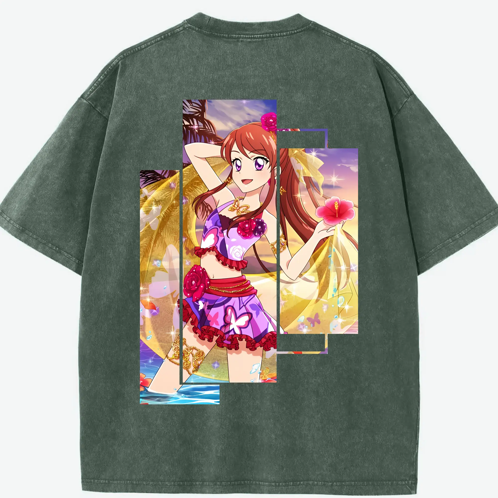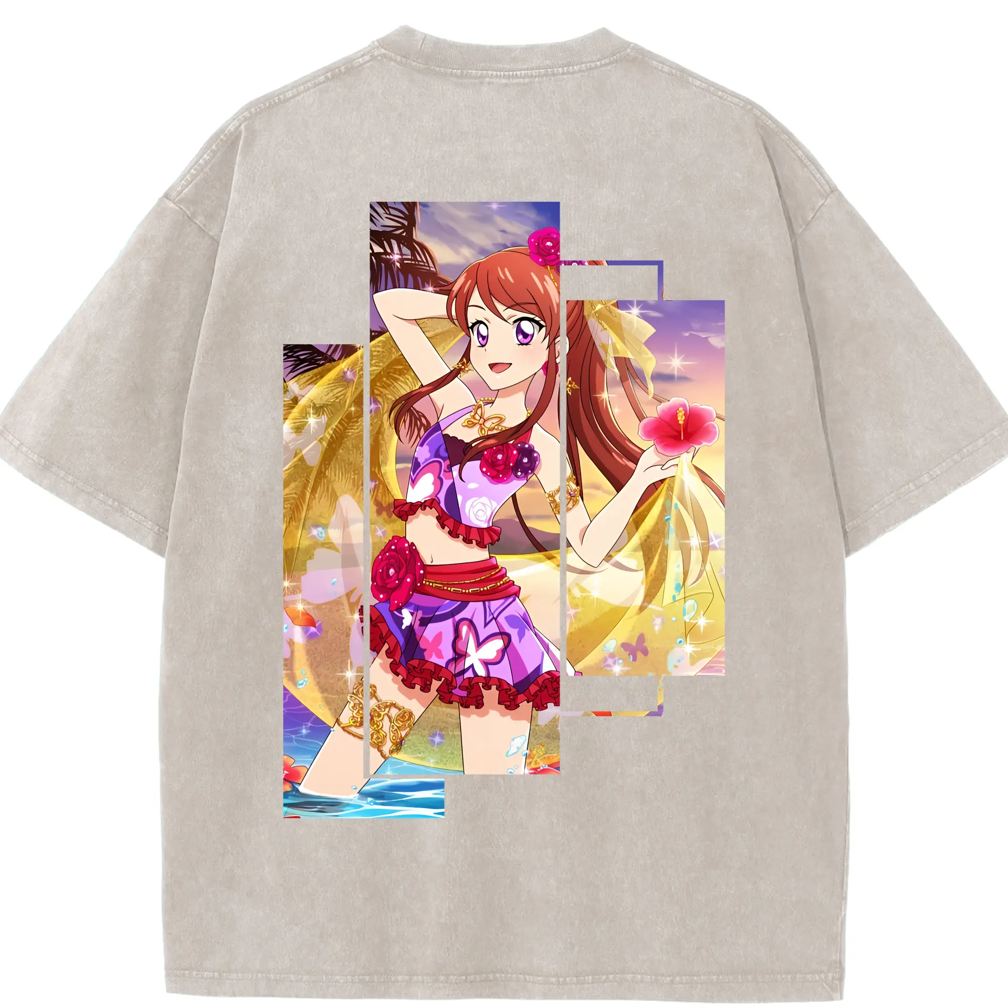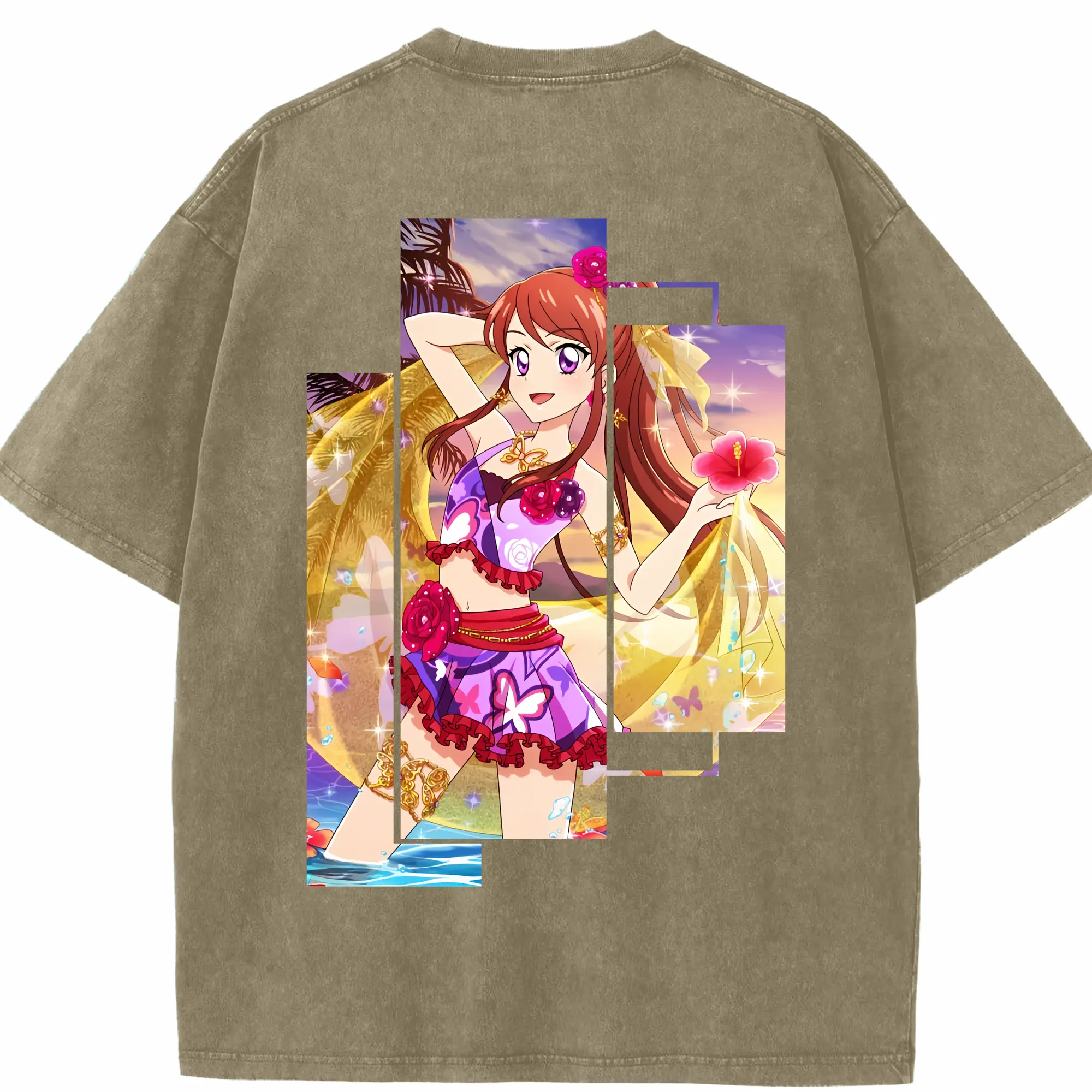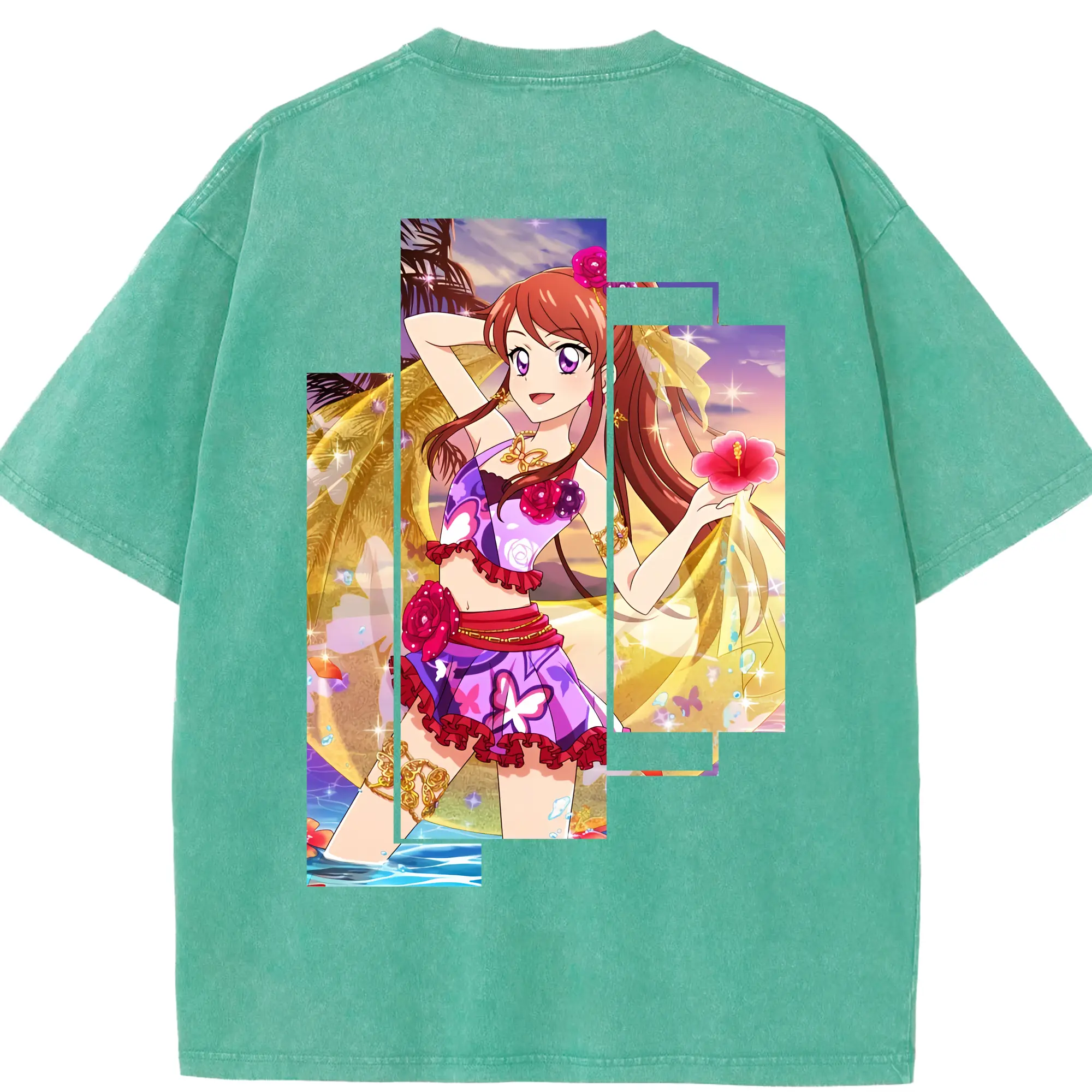 アイカツ グッズ 紫吹 蘭 - 綿100% ヴィンテージ風 半袖Tシャツ ・ フロントプリント ・ 柔らか肌触り ・ 通気性 快適 ・ スポーツ カジュアル 外出用