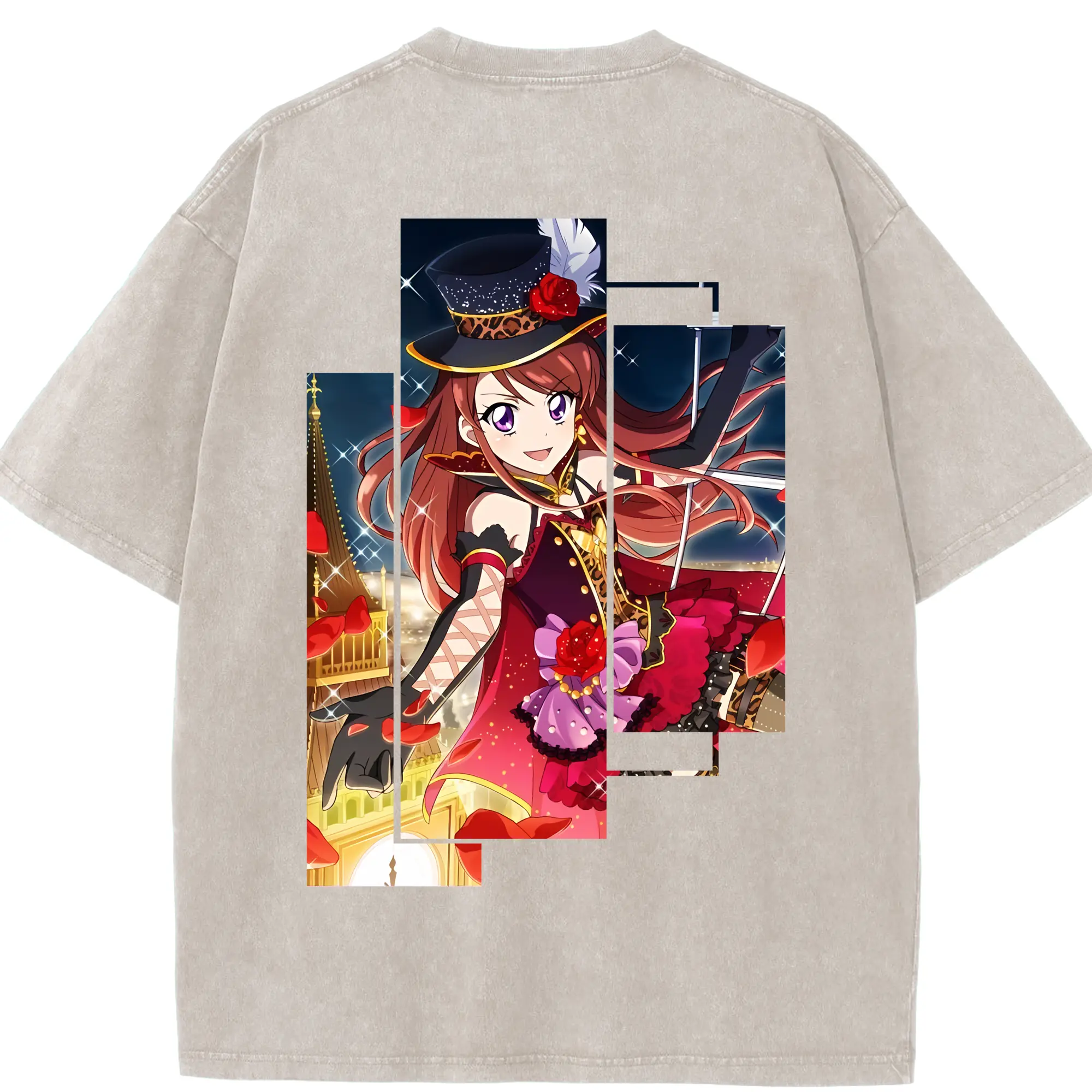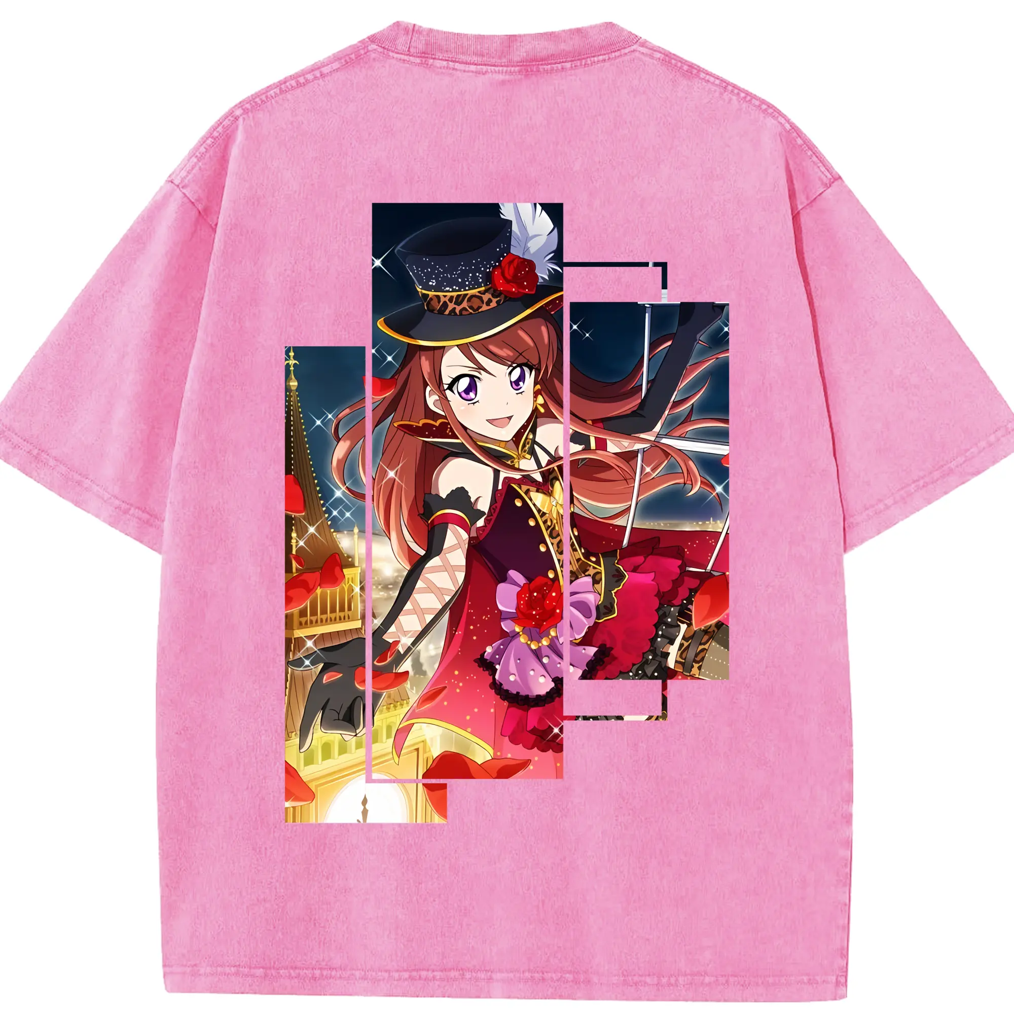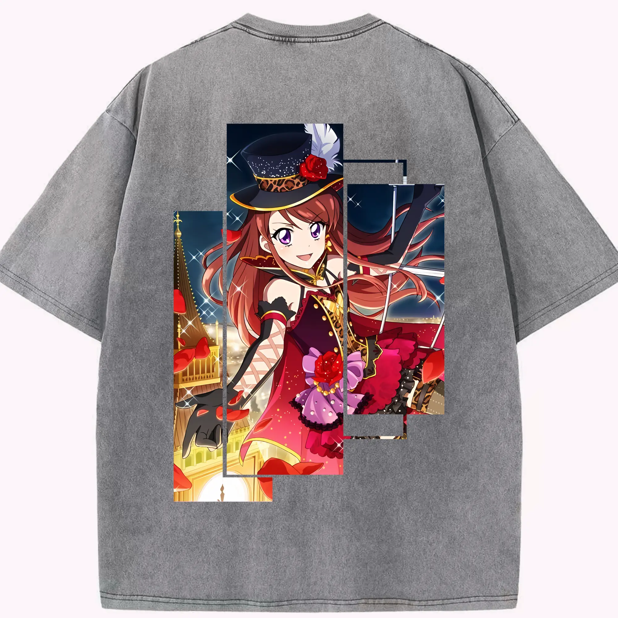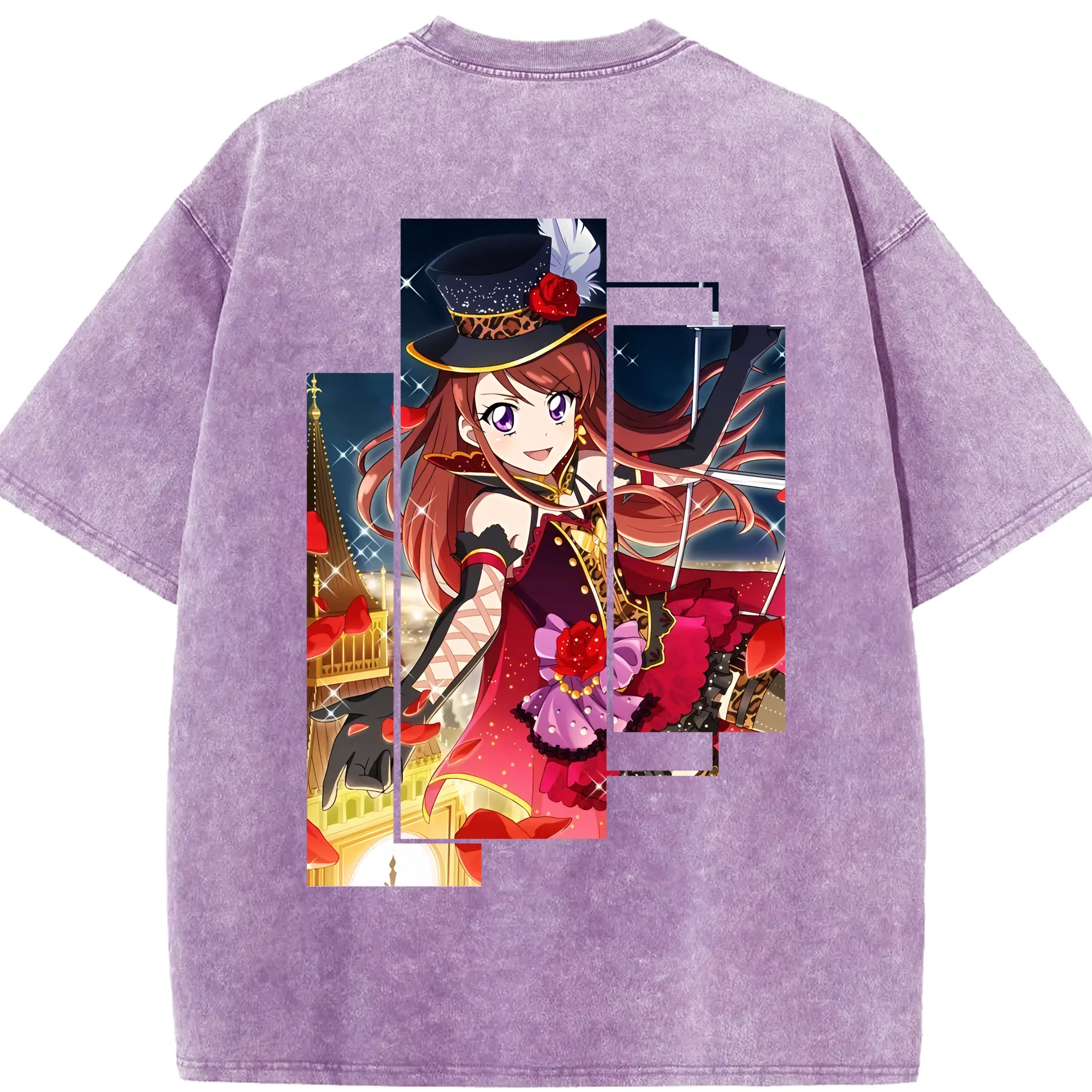 アイカツ グッズ 紫吹 蘭 - 綿100% ヴィンテージ風 半袖Tシャツ ・ フロントプリント ・ 柔らか肌触り ・ 通気性 快適 ・ スポーツ カジュアル 外出用
