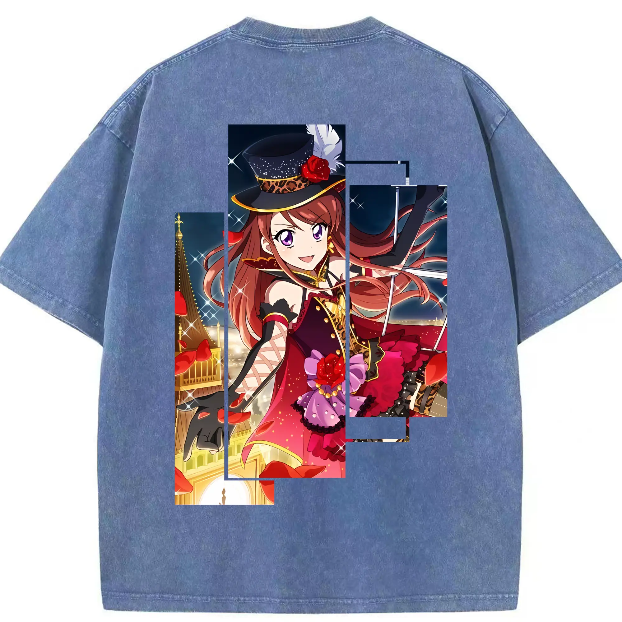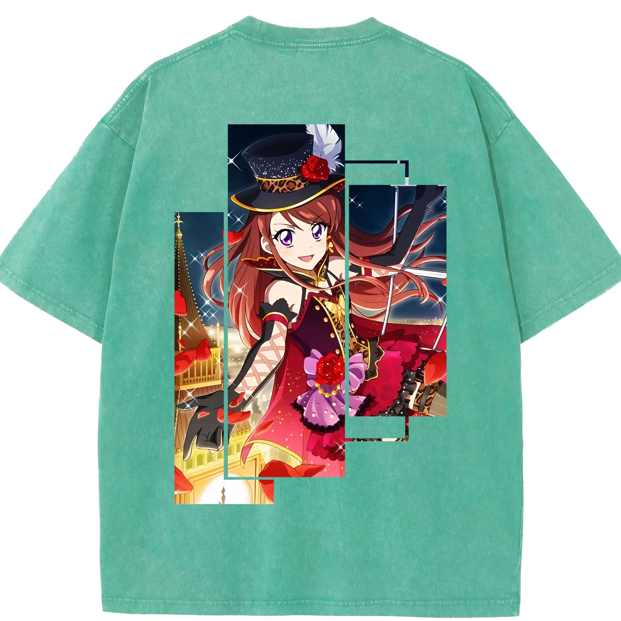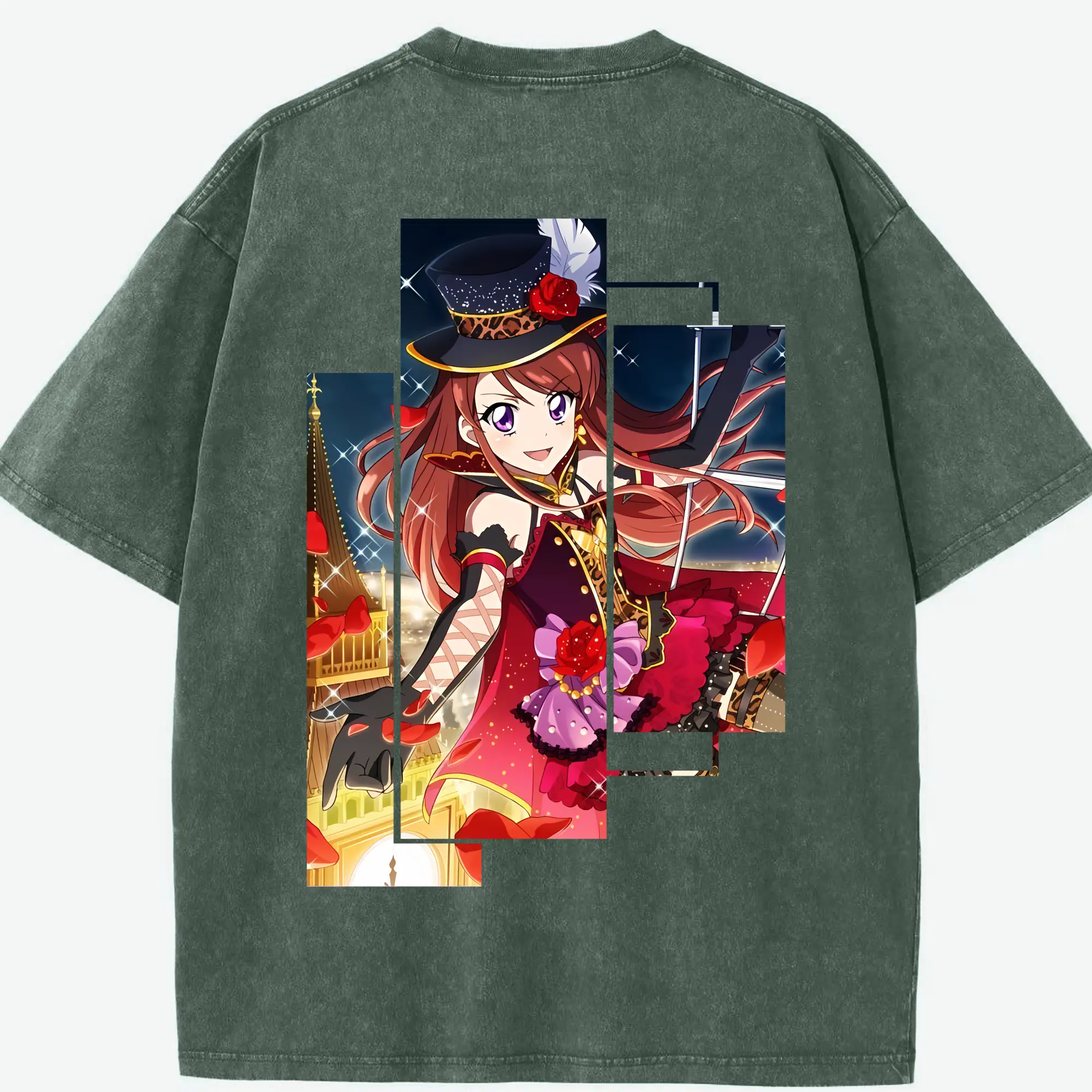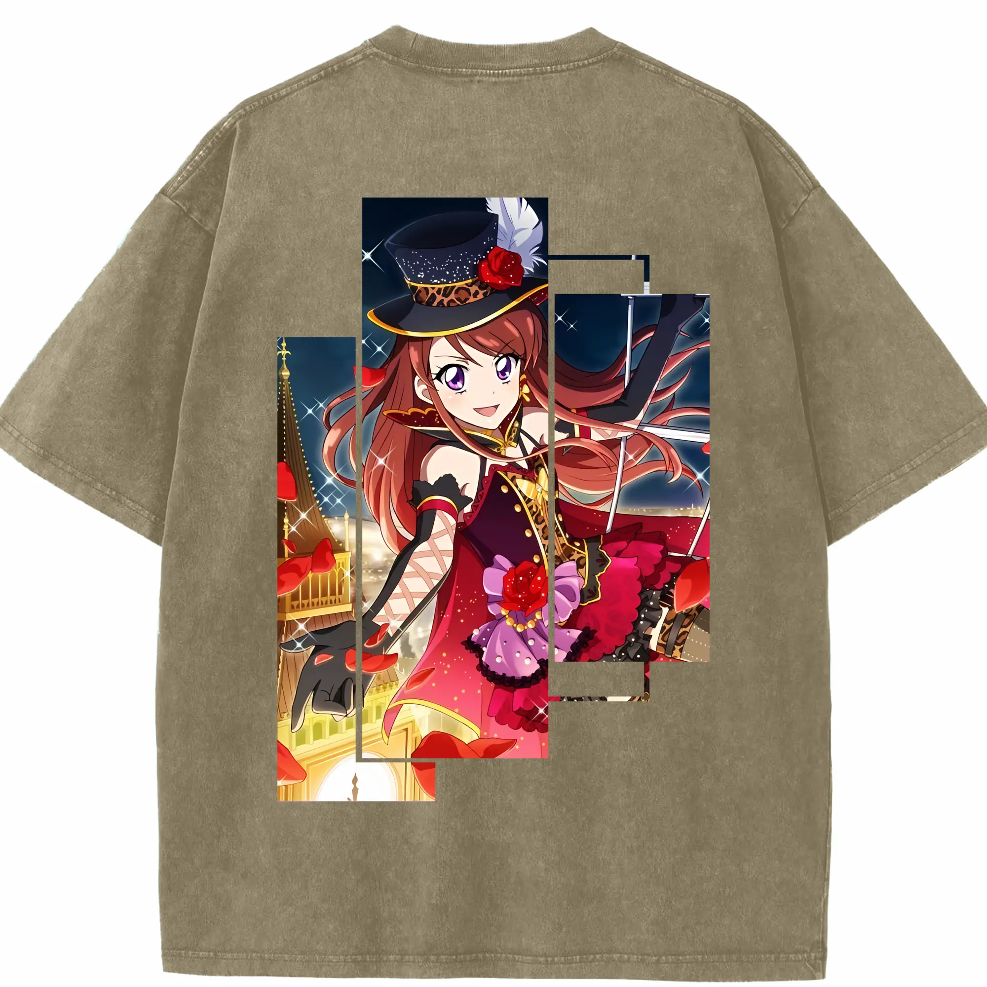 アイカツ グッズ 紫吹 蘭 - 綿100% ヴィンテージ風 半袖Tシャツ ・ フロントプリント ・ 柔らか肌触り ・ 通気性 快適 ・ スポーツ カジュアル 外出用