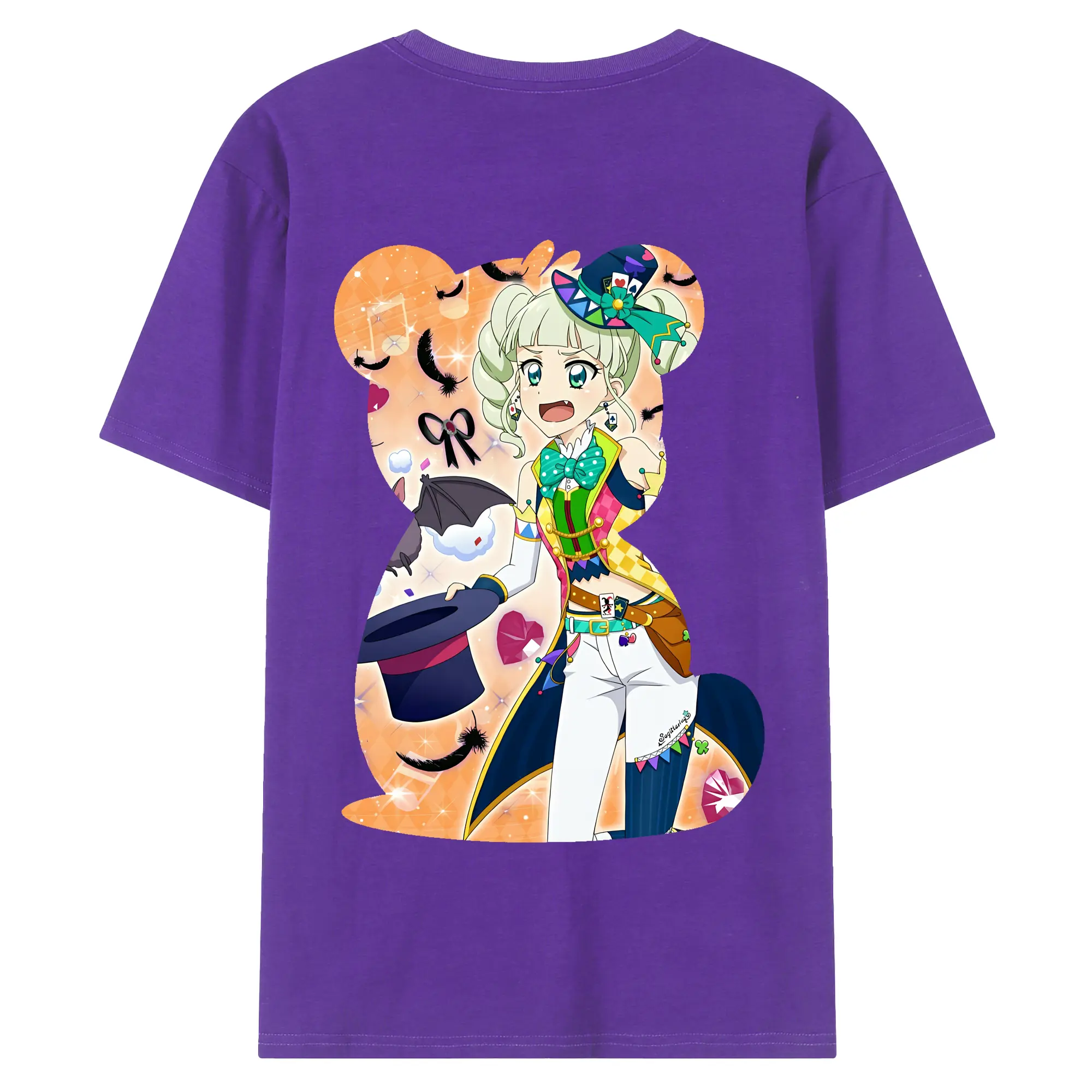 アイカツ グッズ 藤堂 ユリカ - 綿100% ヴィンテージ風 半袖Tシャツ ・ 背面プリント ・ 柔らか肌触り ・ 通気性 快適 ・ スポーツ カジュアル 外出用