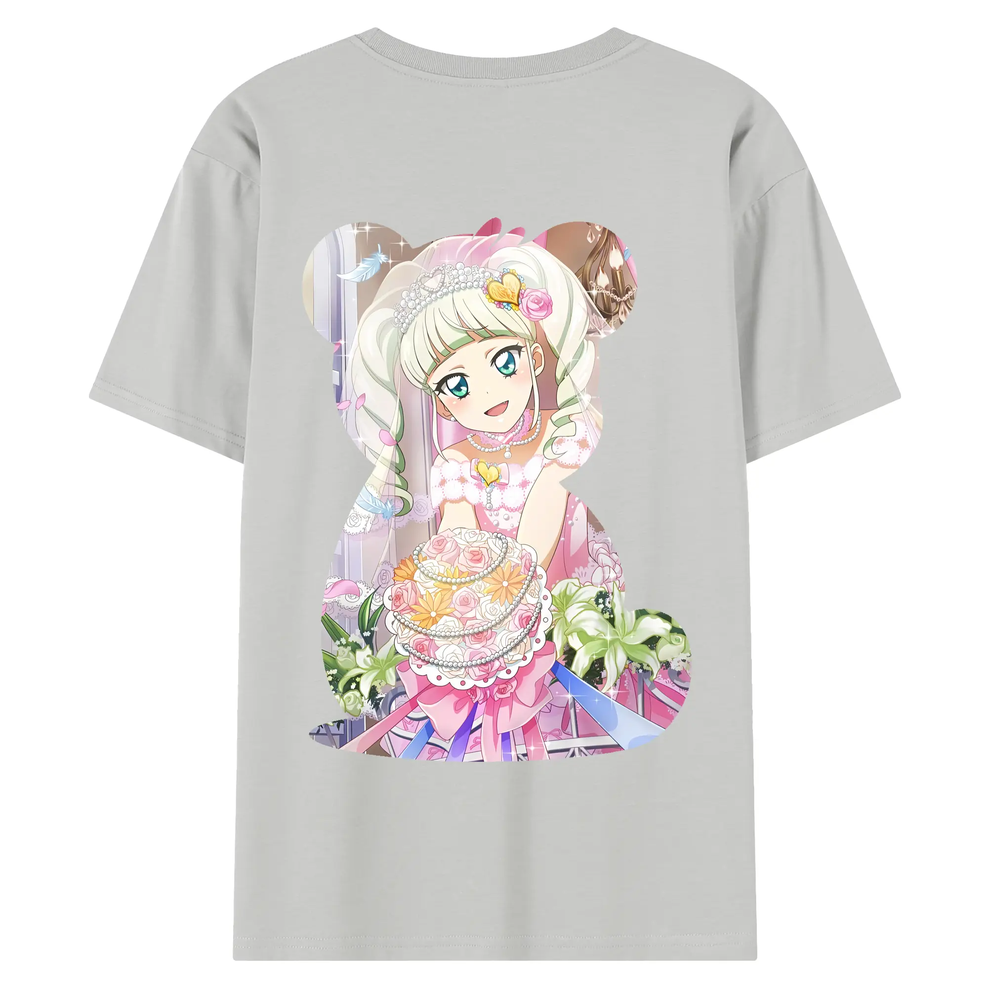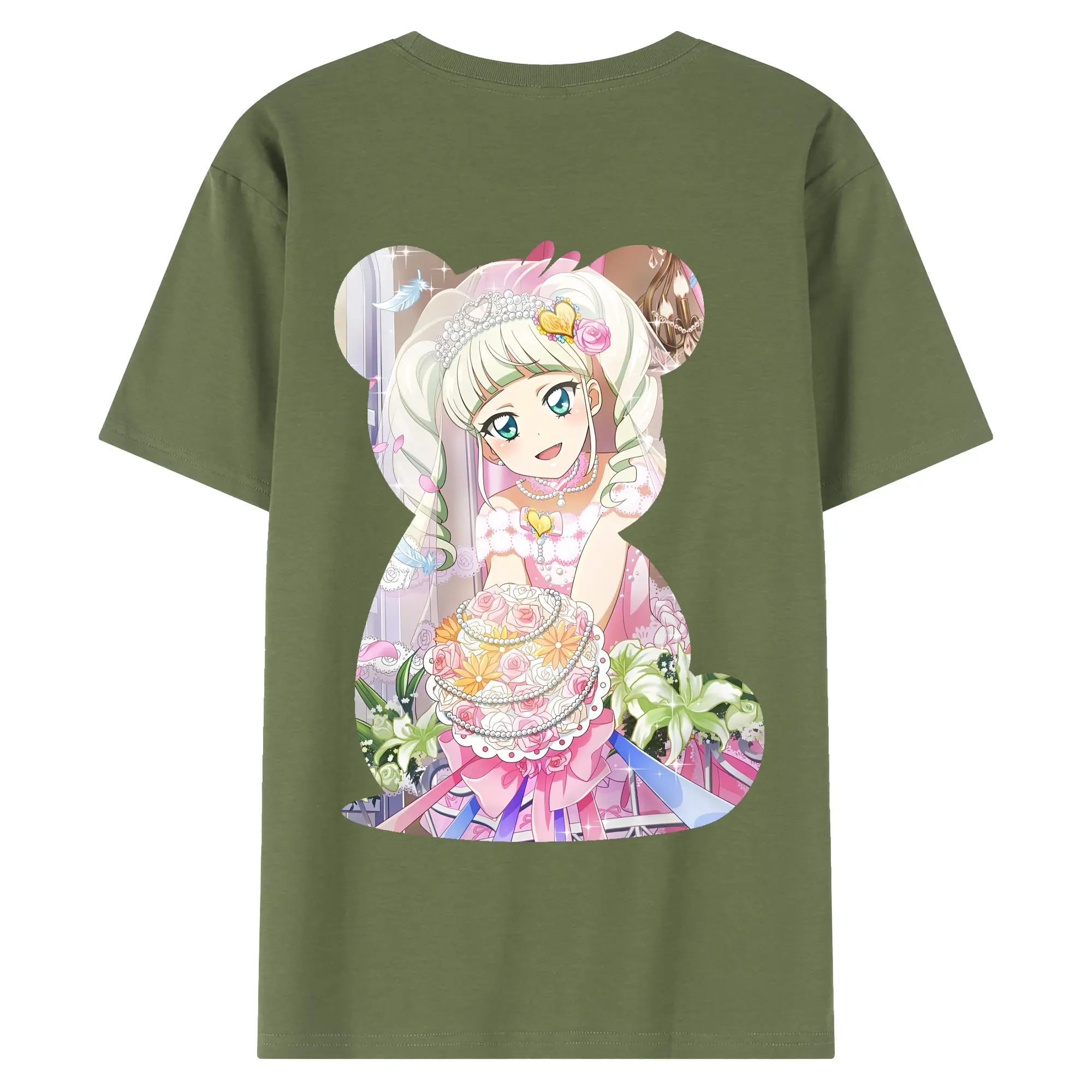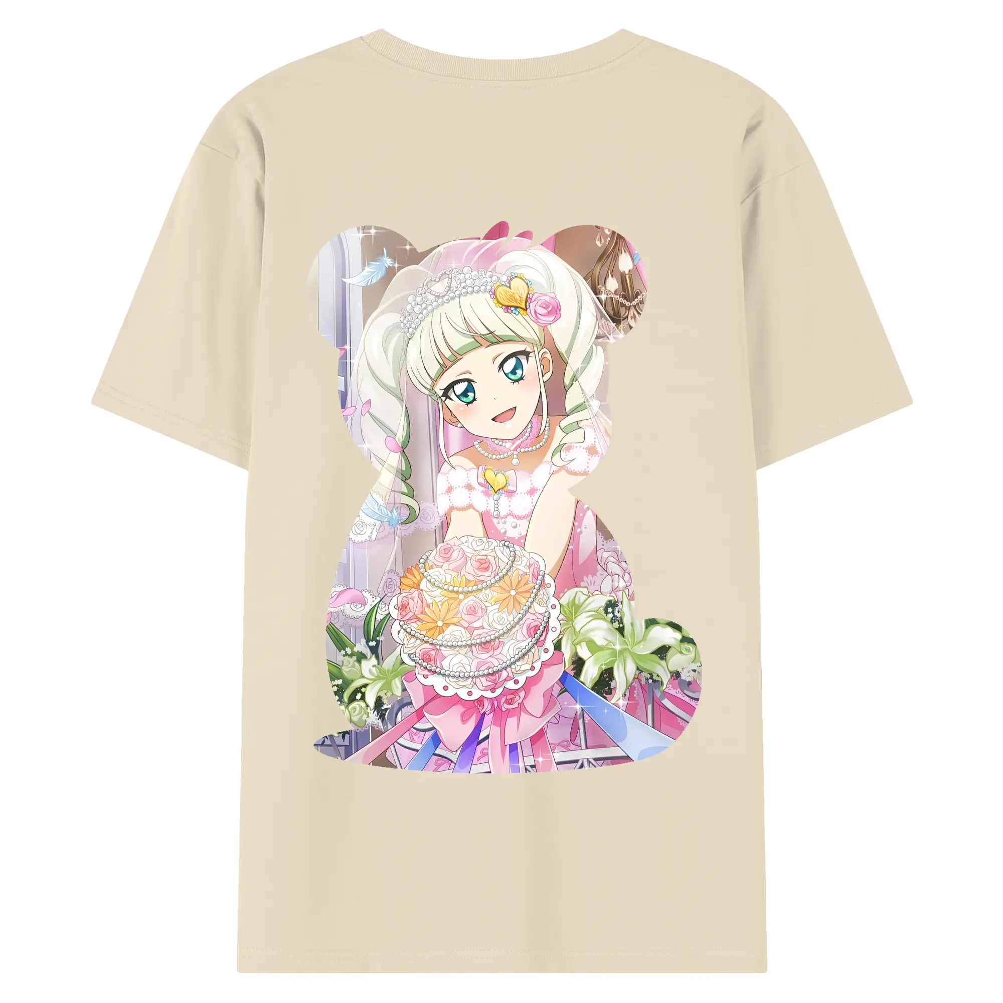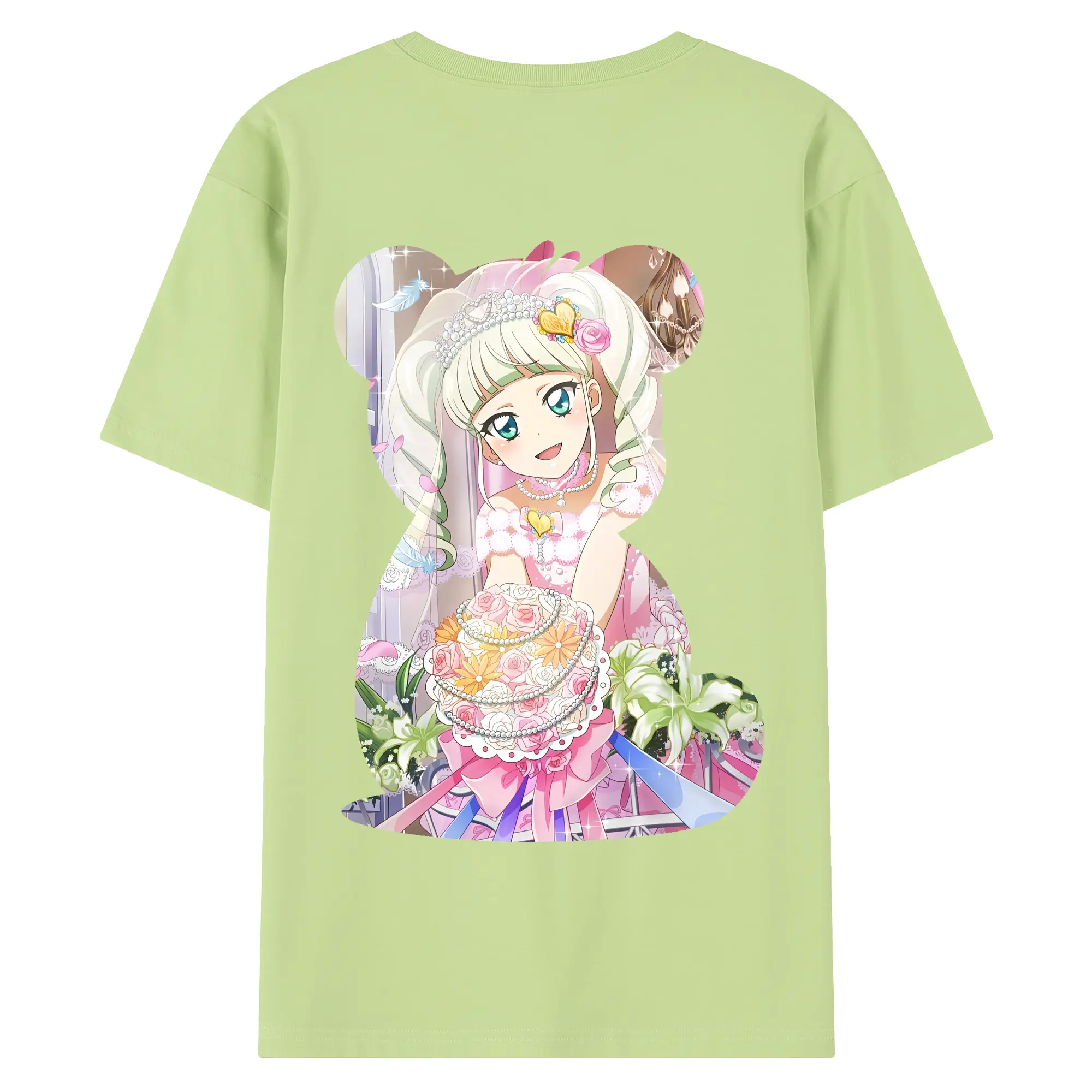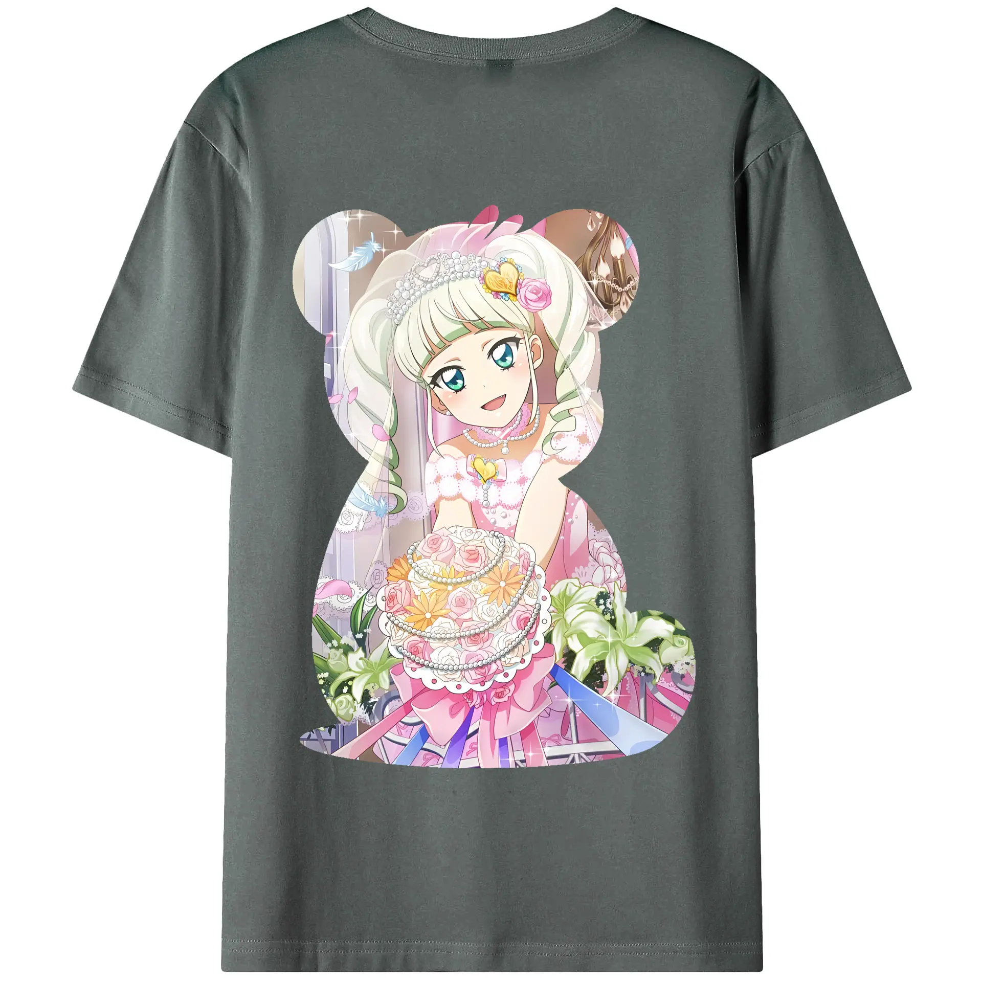 アイカツ グッズ 藤堂 ユリカ - 綿100% ヴィンテージ風 半袖Tシャツ ・ 背面プリント ・ 柔らか肌触り ・ 通気性 快適 ・ スポーツ カジュアル 外出用
