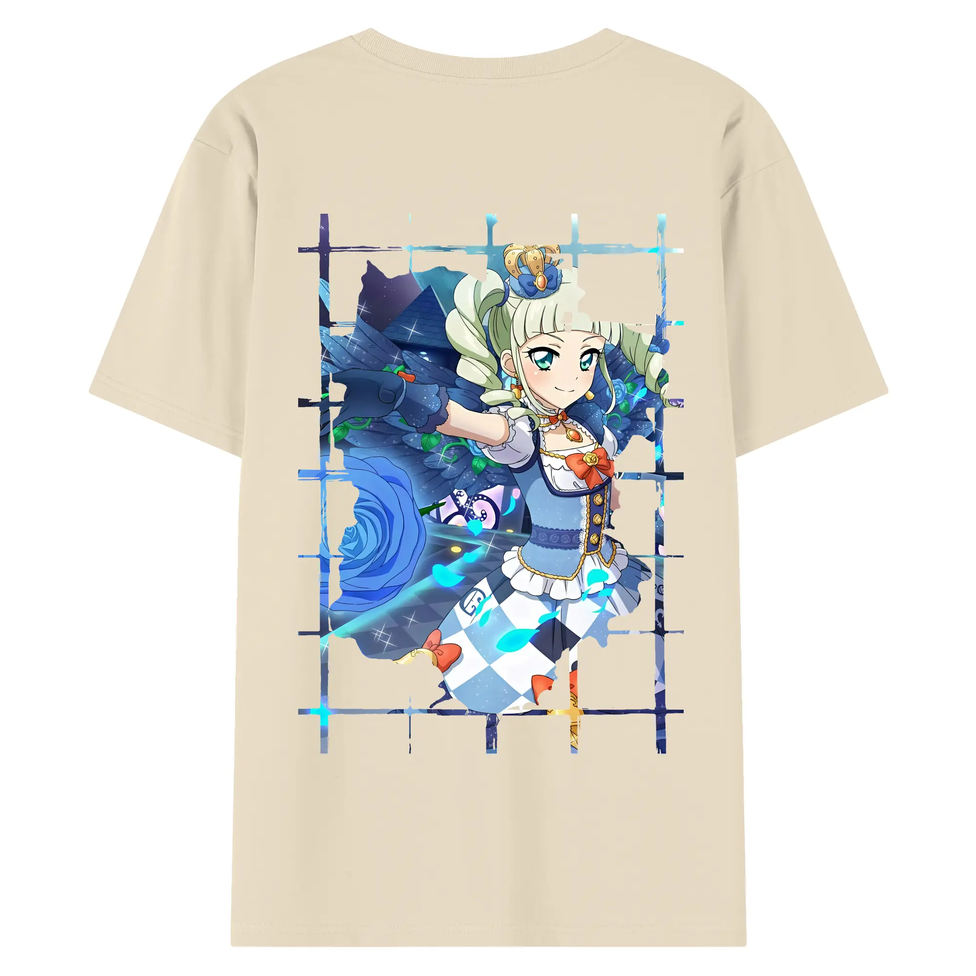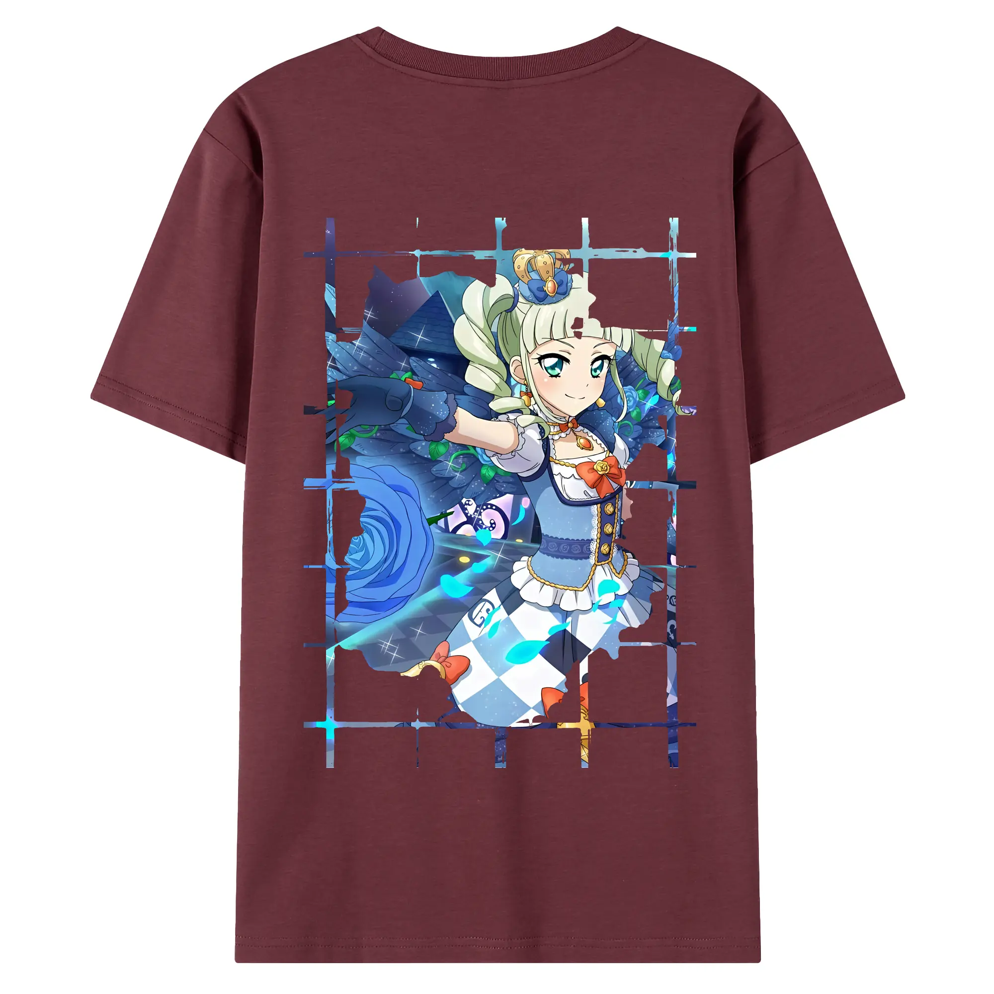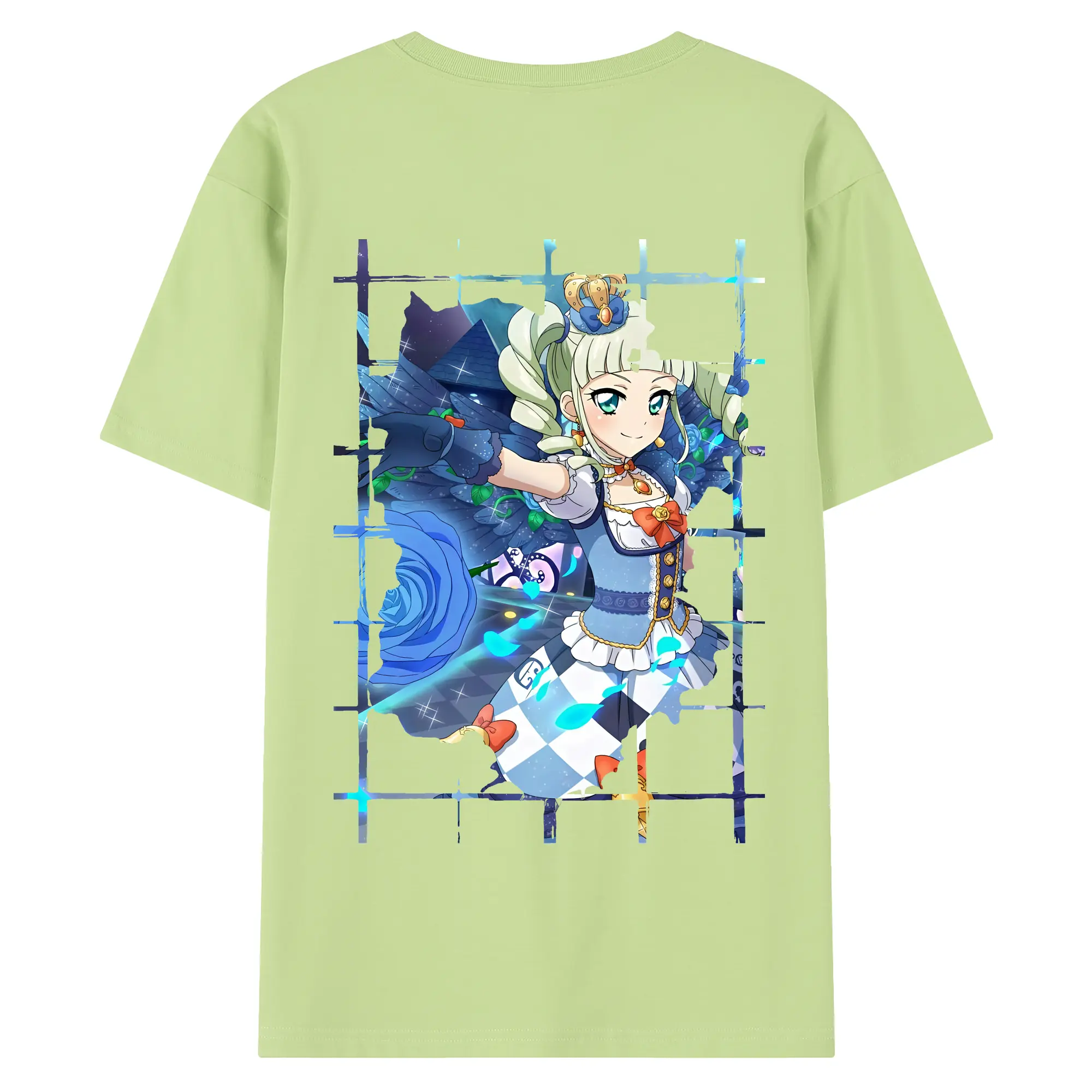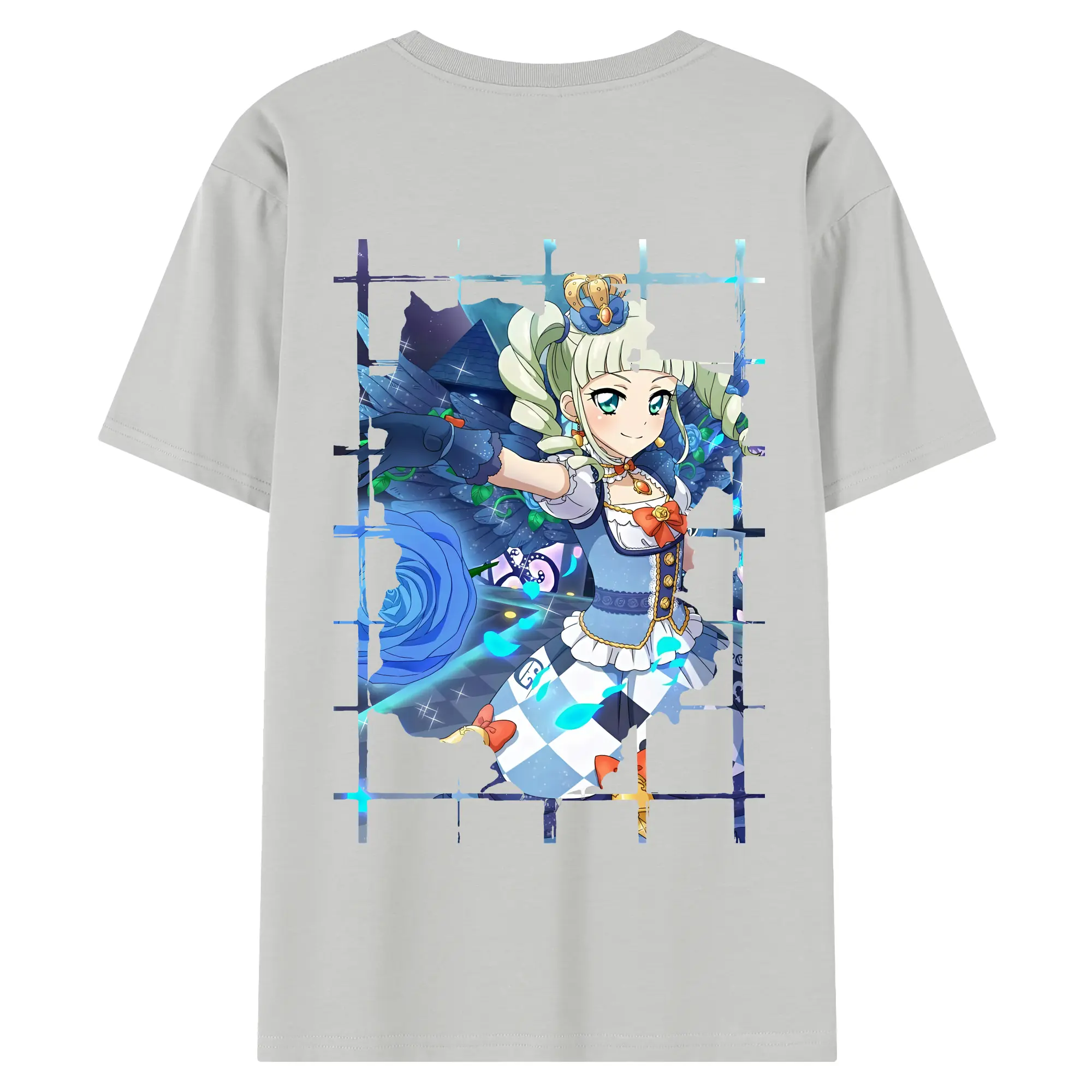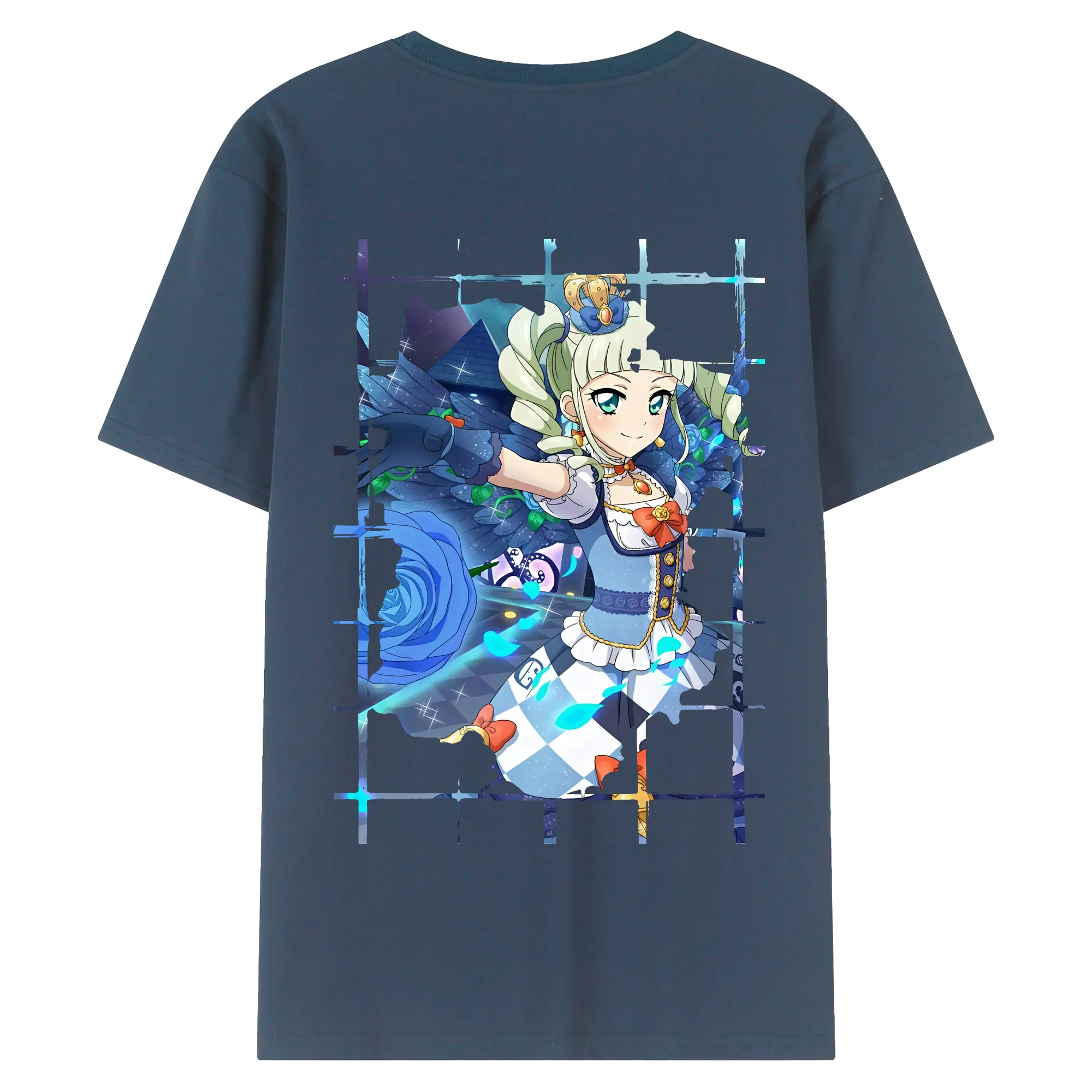 アイカツ グッズ 藤堂 ユリカ - 綿100% ヴィンテージ風 半袖Tシャツ ・ 背面プリント ・ 柔らか肌触り ・ 通気性 快適 ・ スポーツ カジュアル 外出用