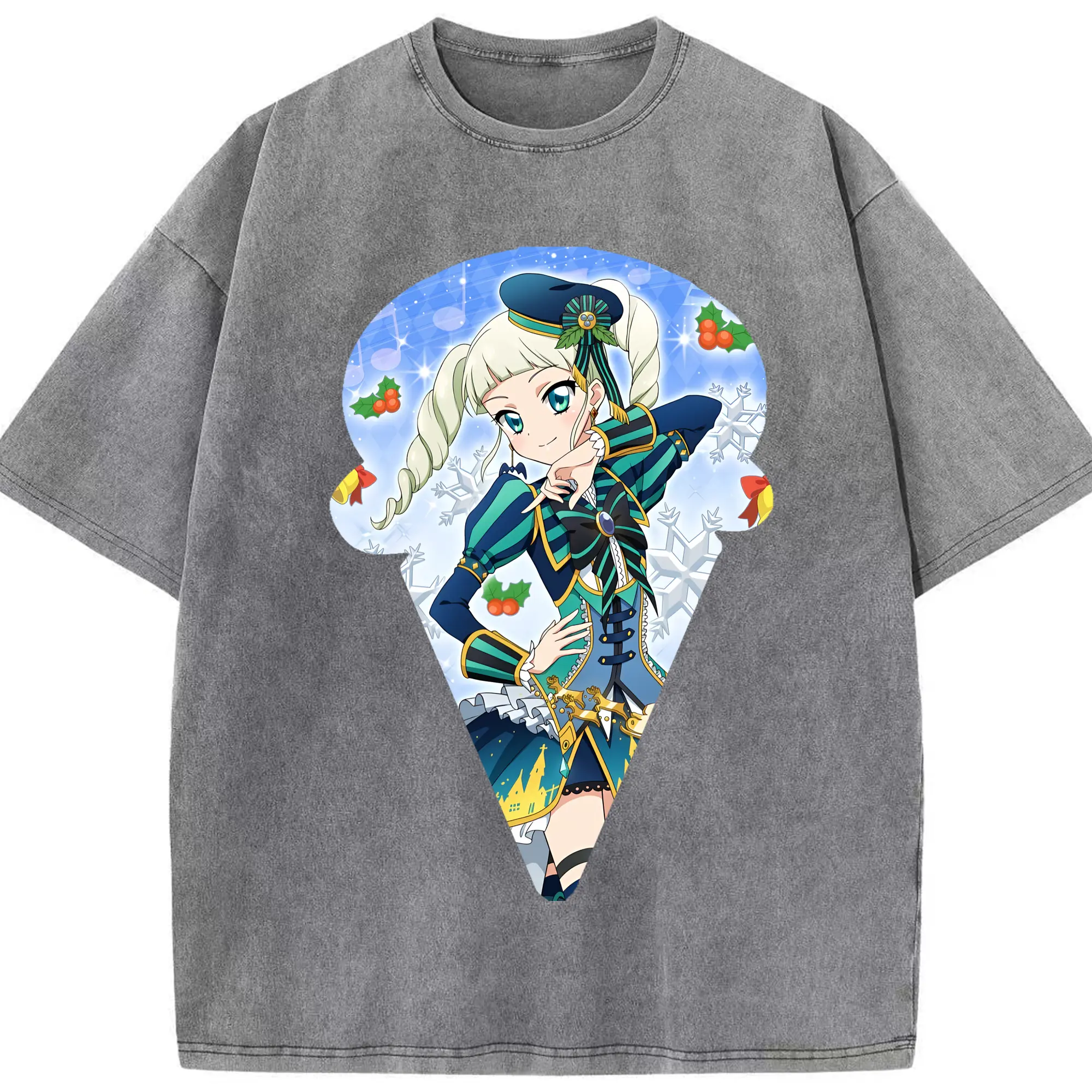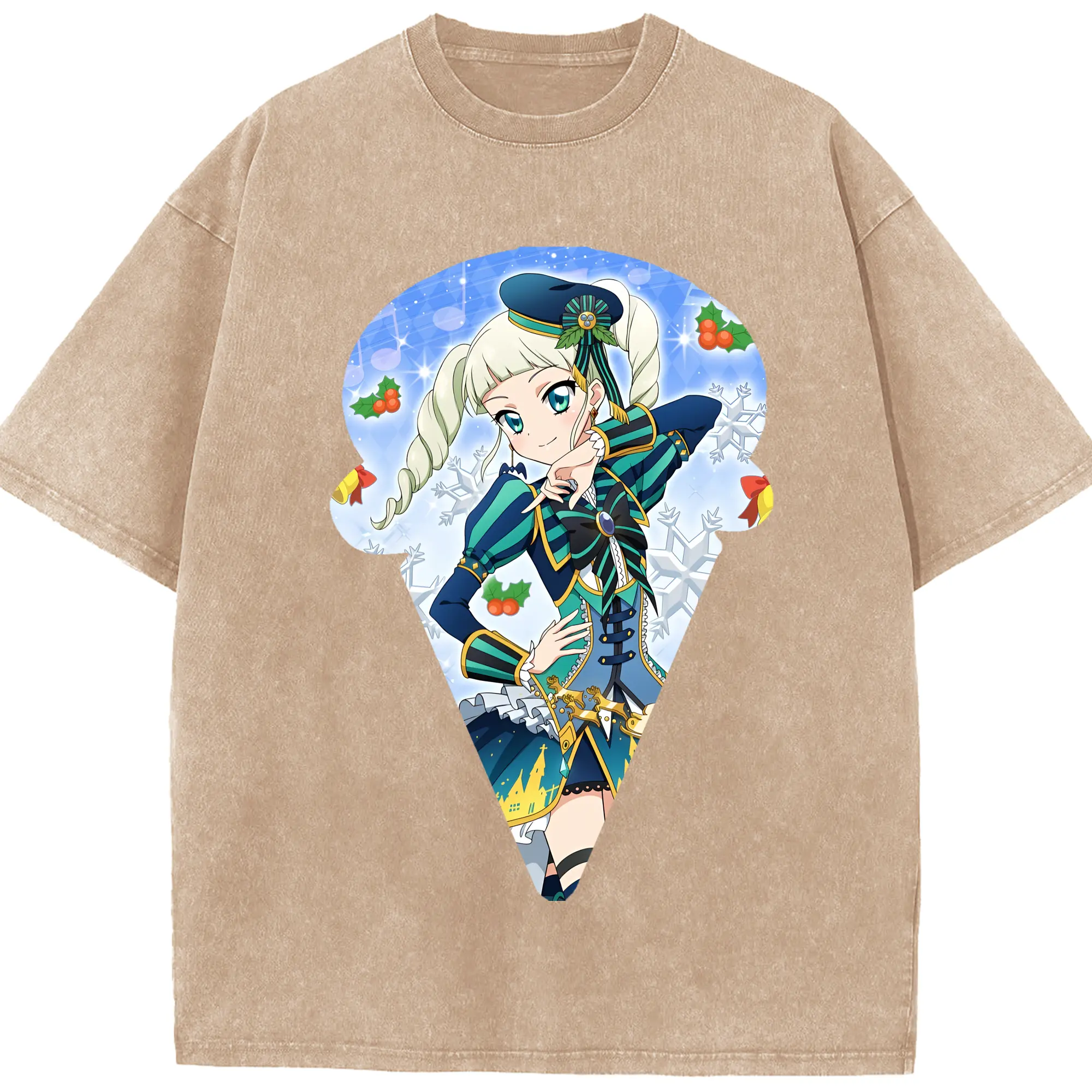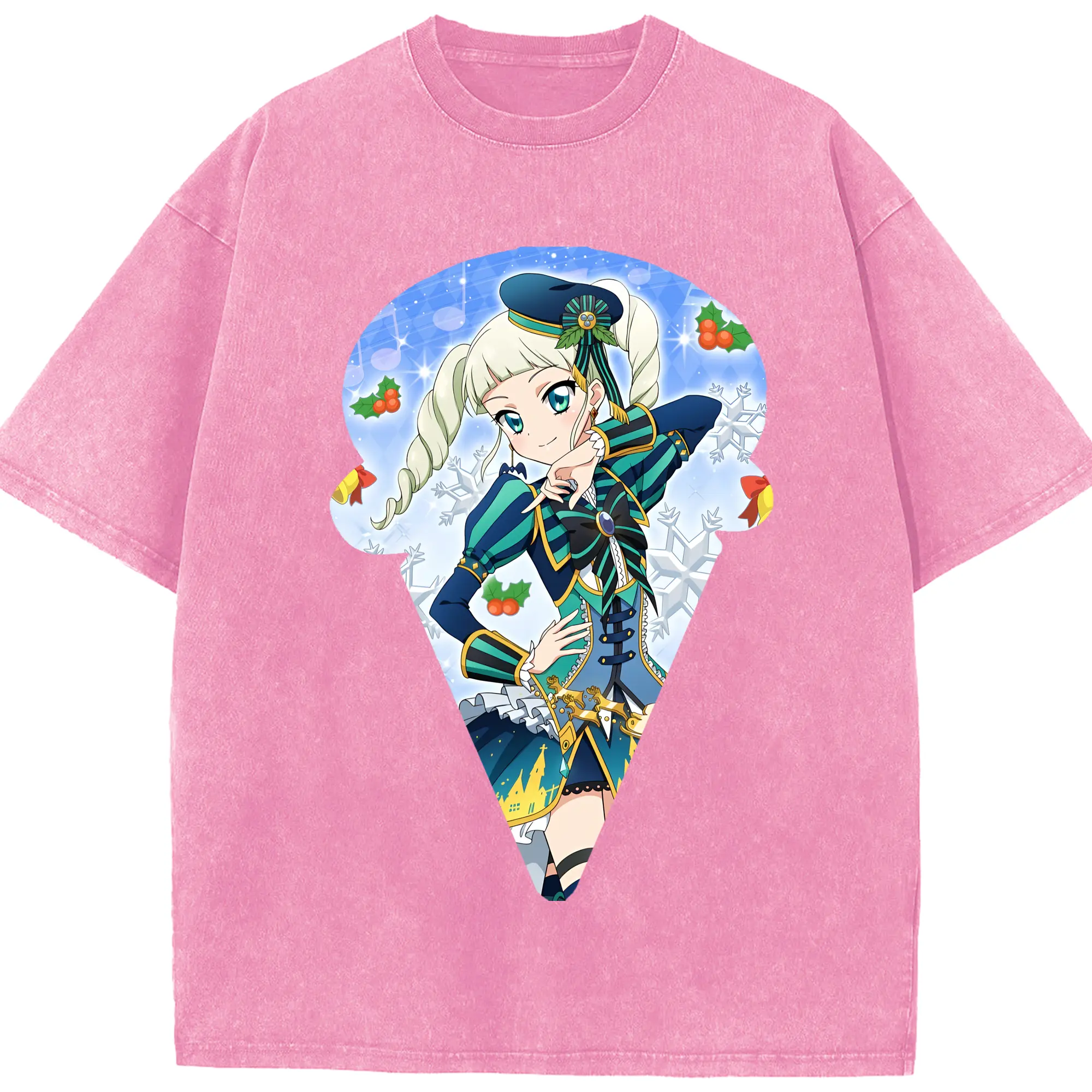 アイカツ グッズ 藤堂 ユリカ - 綿100% ヴィンテージ風 半袖Tシャツ ・ 背面プリント ・ 柔らか肌触り ・ 通気性 快適 ・ スポーツ カジュアル 外出用