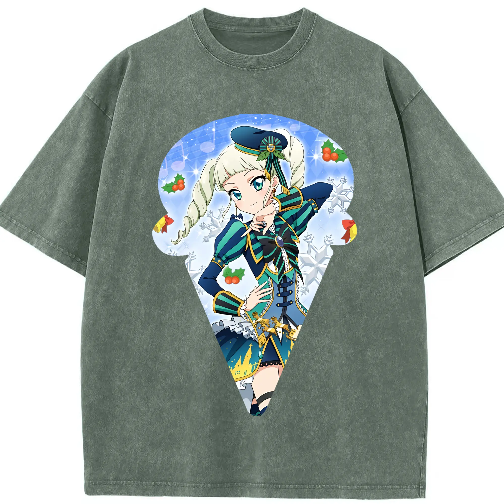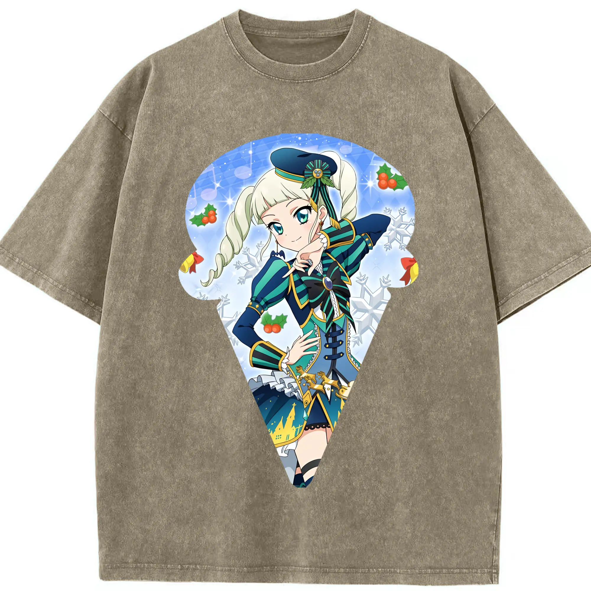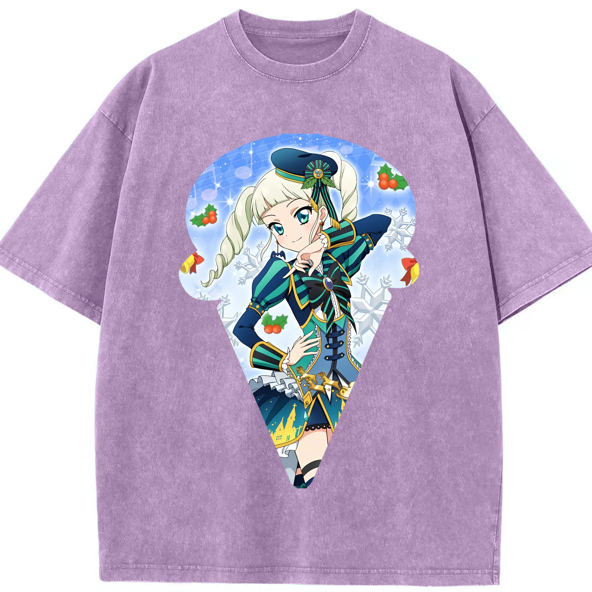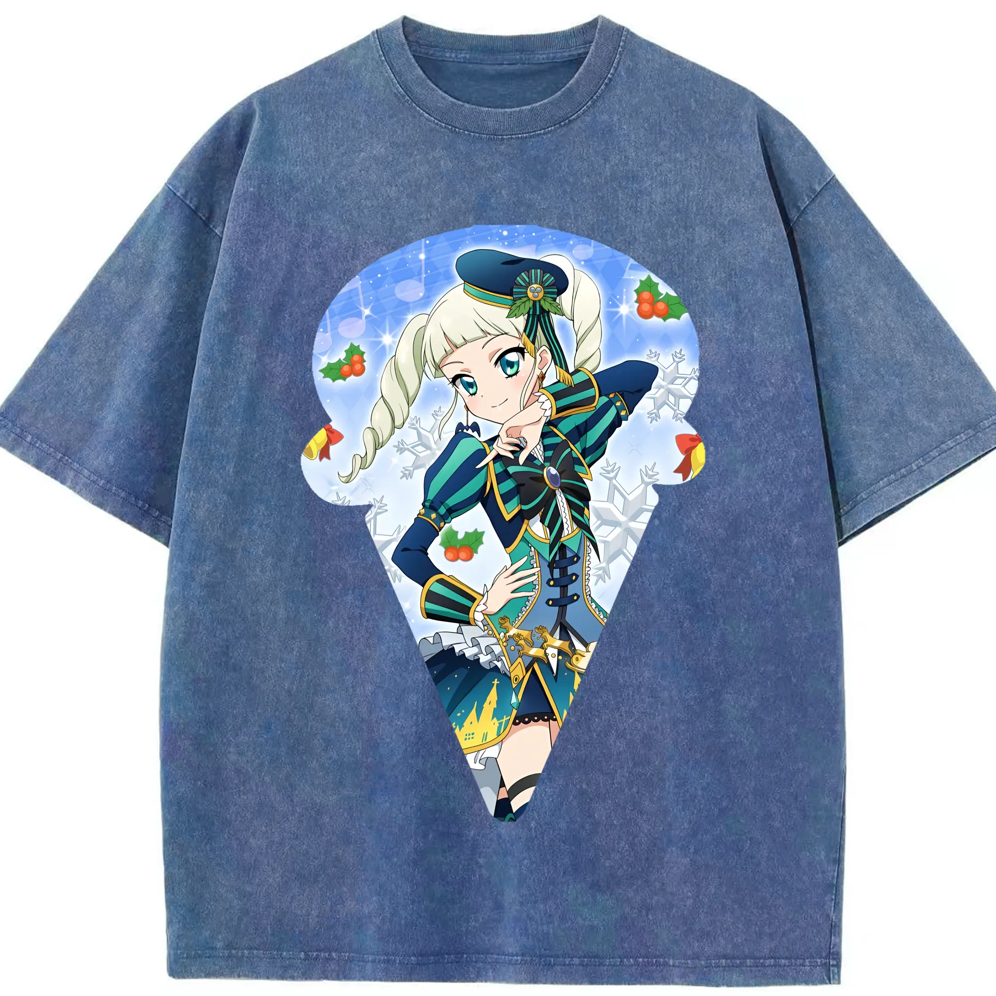 アイカツ グッズ 藤堂 ユリカ - 綿100% ヴィンテージ風 半袖Tシャツ ・ 背面プリント ・ 柔らか肌触り ・ 通気性 快適 ・ スポーツ カジュアル 外出用