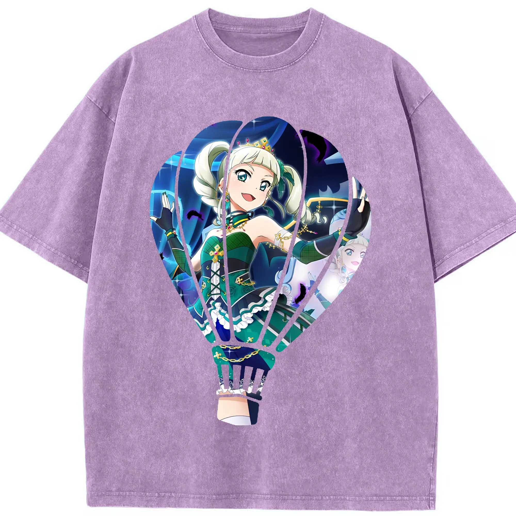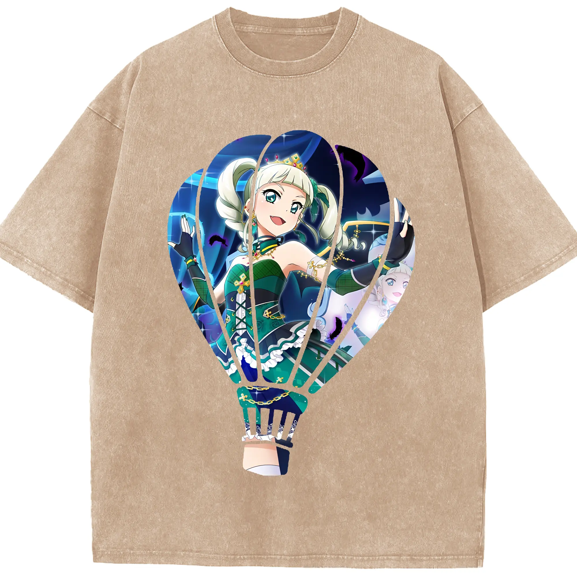 アイカツ グッズ 藤堂 ユリカ - 綿100% ヴィンテージ風 半袖Tシャツ ・ 背面プリント ・ 柔らか肌触り ・ 通気性 快適 ・ スポーツ カジュアル 外出用
