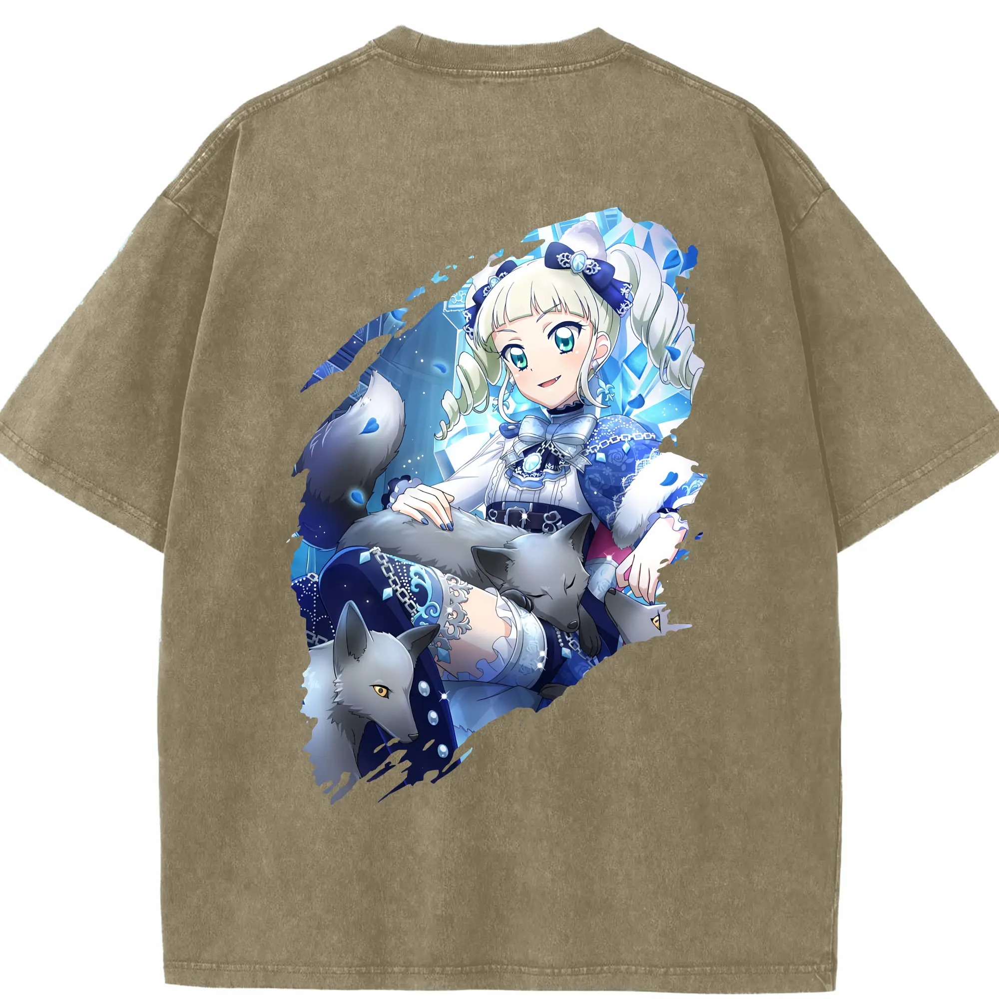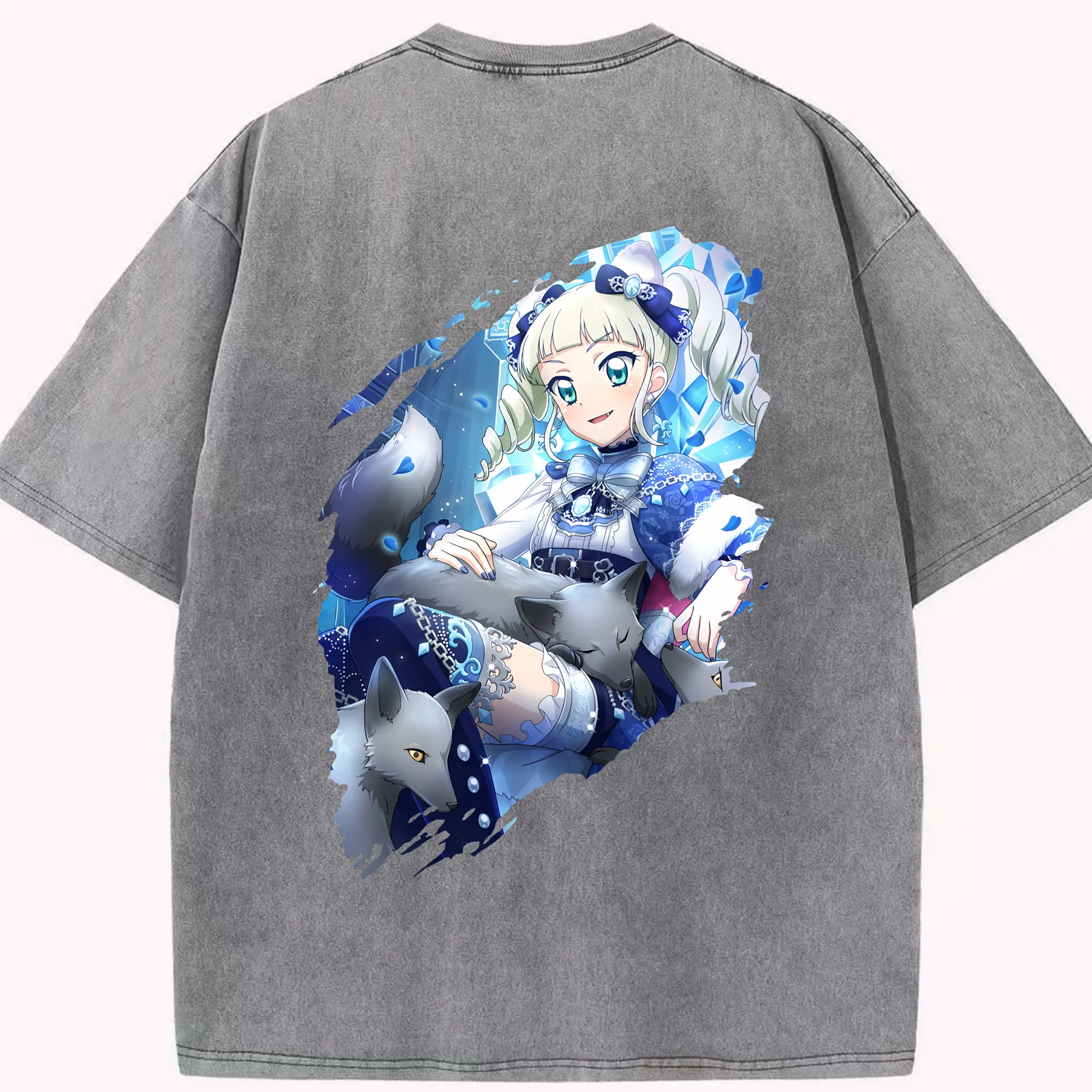 アイカツ グッズ 藤堂 ユリカ - 綿100% ヴィンテージ風 半袖Tシャツ ・ フロントプリント ・ 柔らか肌触り ・ 通気性 快適 ・ スポーツ カジュアル 外出用
