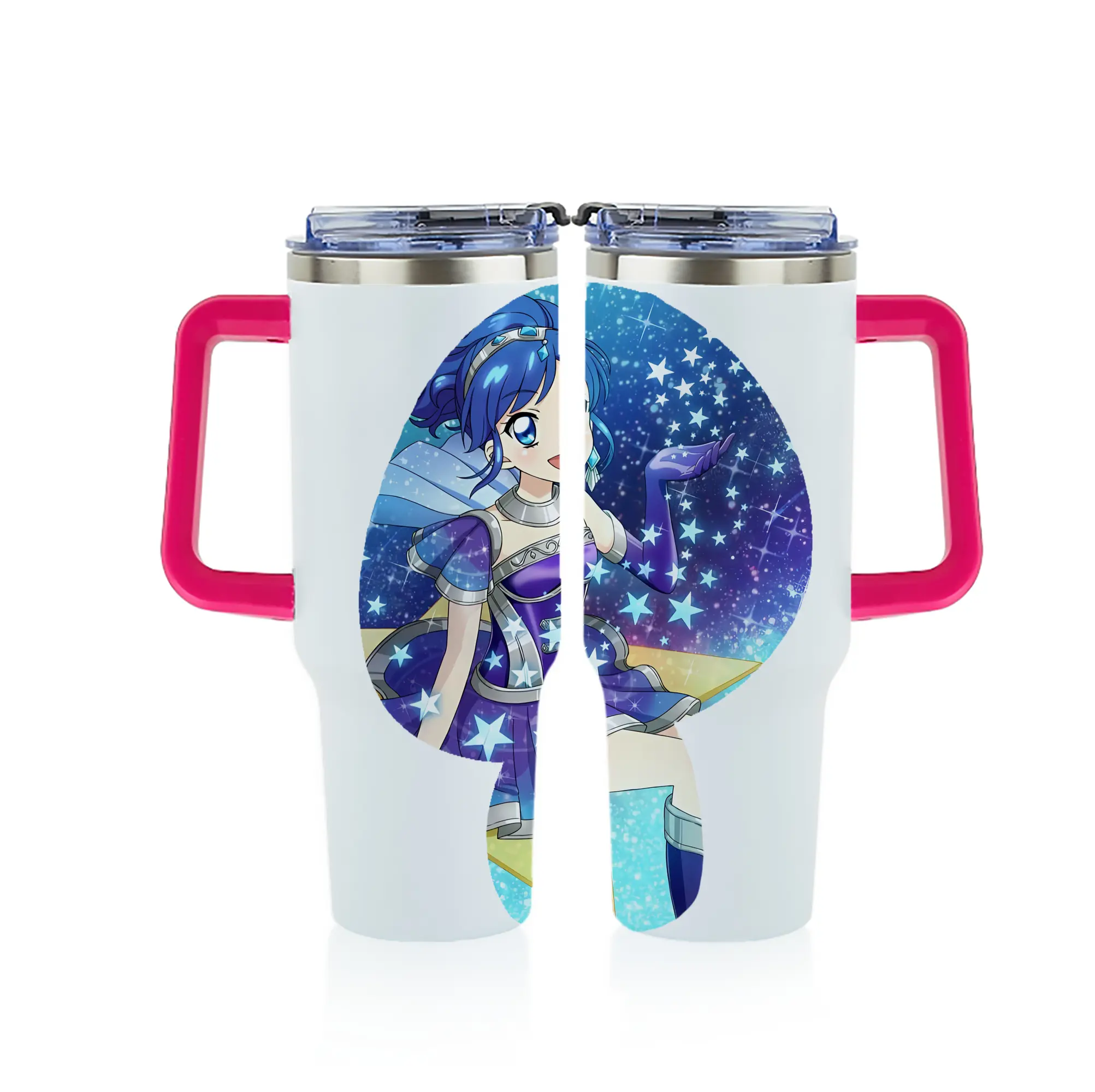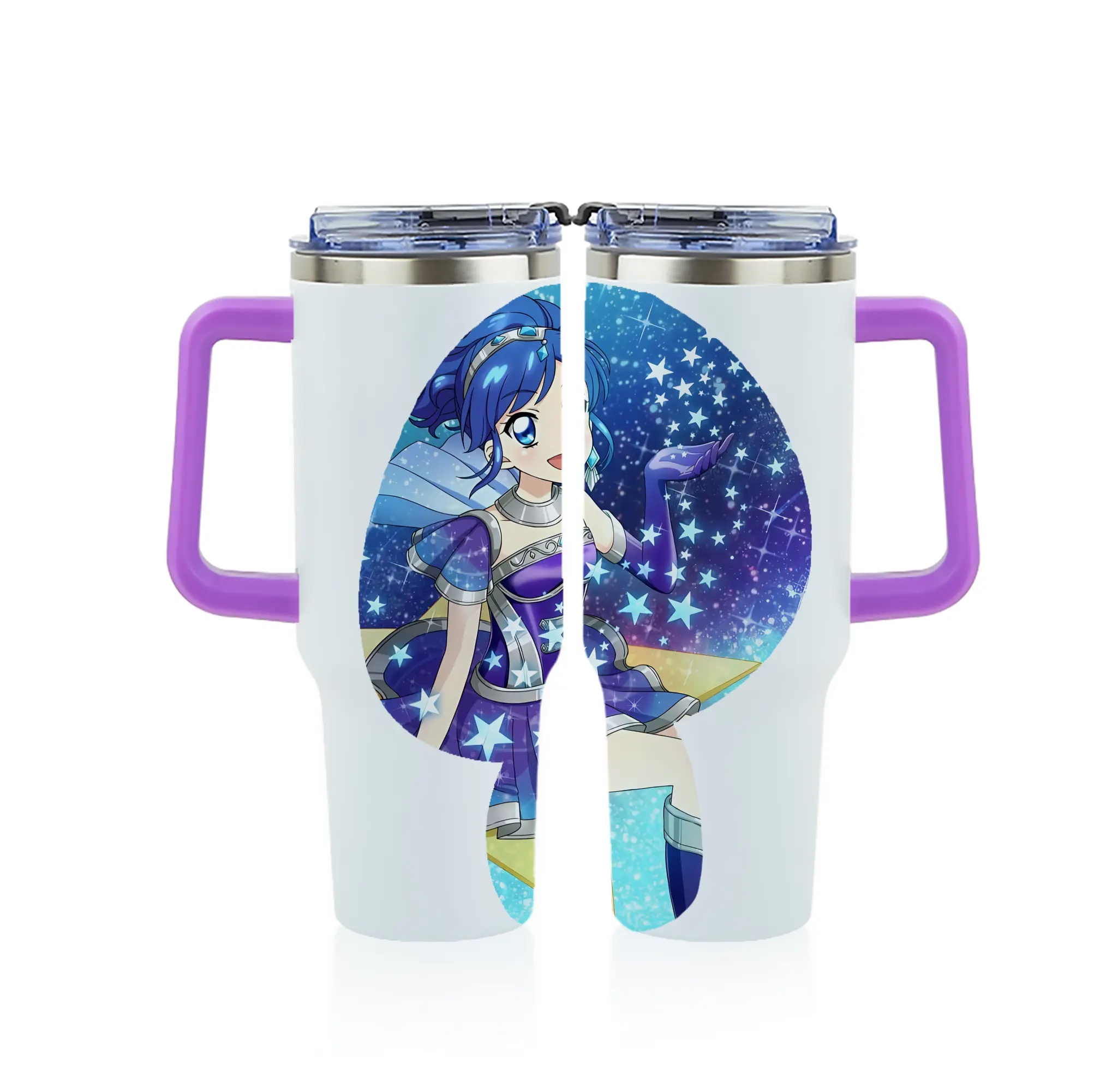 アイカツ グッズ 霧矢 あおい - 1200mL フルプリント車用タンブラー ・ 304ステンレス 内側 ・ 201ステンレス 外側 ・ 保温 保冷 ・ 通勤 ドライブ アウトドア用