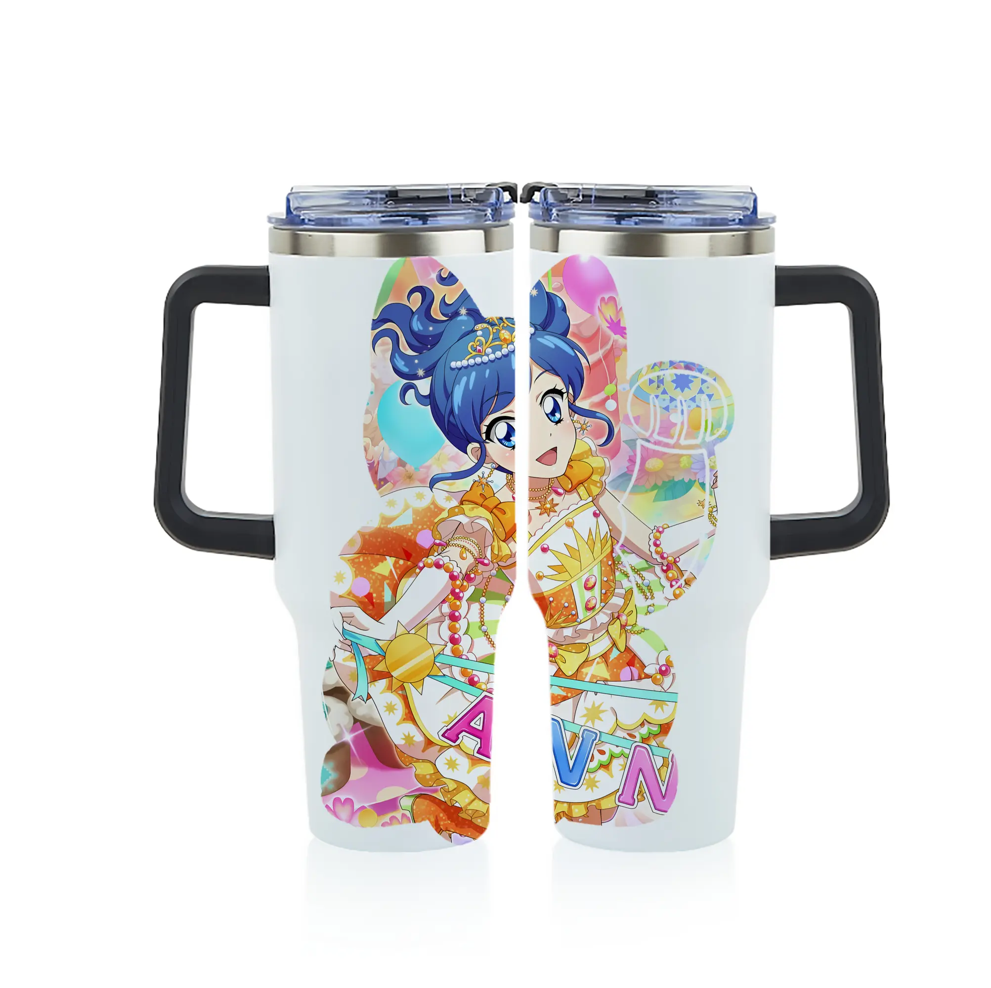 アイカツ グッズ 霧矢 あおい - 綿100% ヴィンテージ風 半袖Tシャツ ・ 背面プリント ・ 柔らか肌触り ・ 通気性 快適 ・ スポーツ カジュアル 外出用