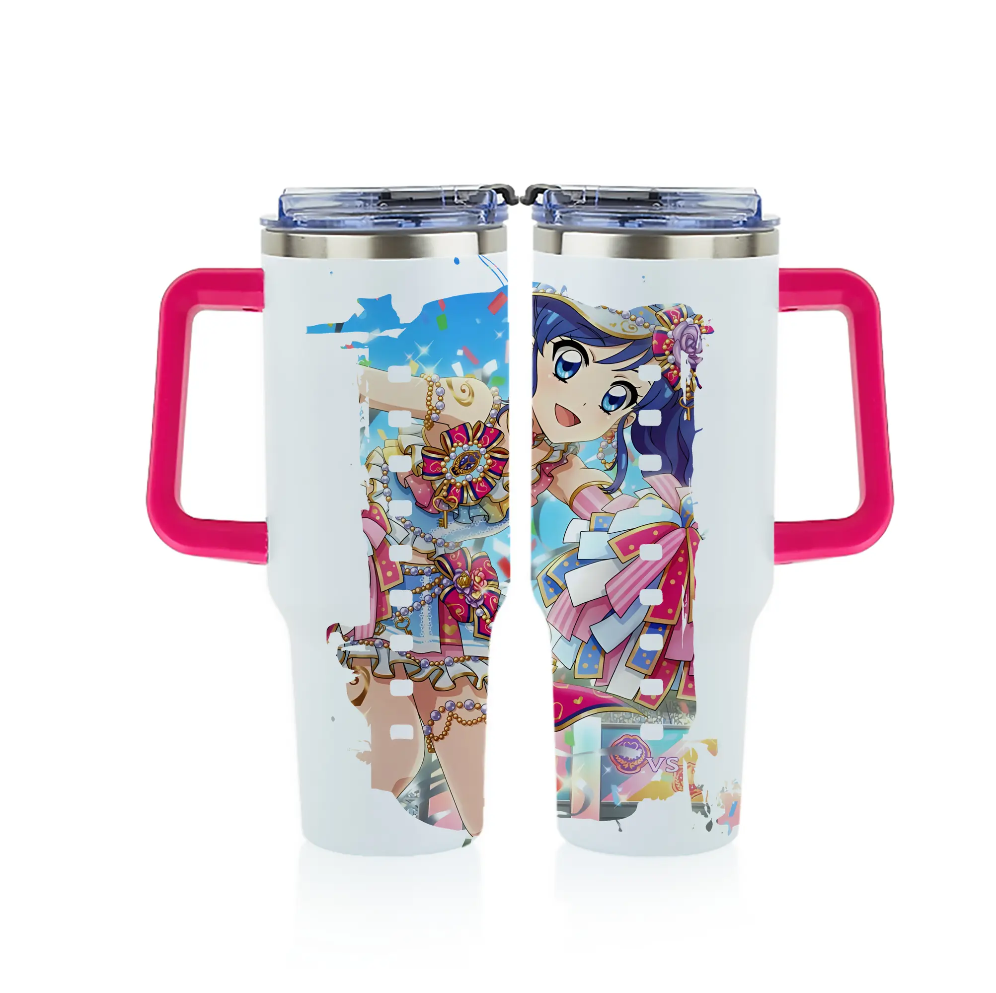 アイカツ グッズ 霧矢 あおい - 1200mL フルプリント車用タンブラー ・ 304ステンレス 内側 ・ 201ステンレス 外側 ・ 保温 保冷 ・ 通勤 ドライブ アウトドア用