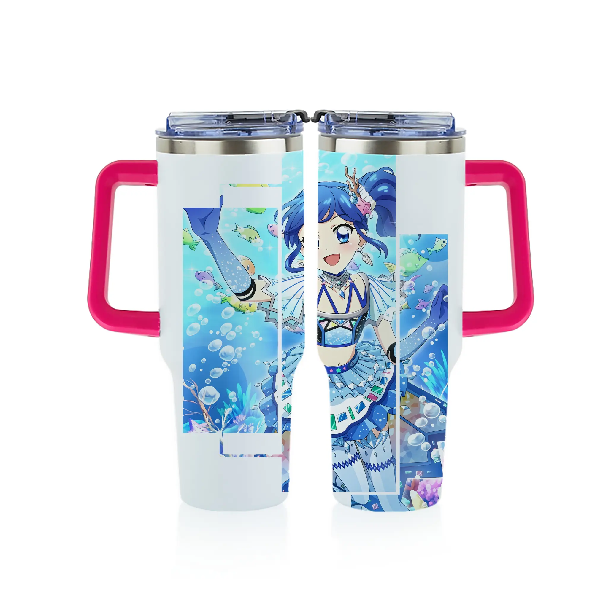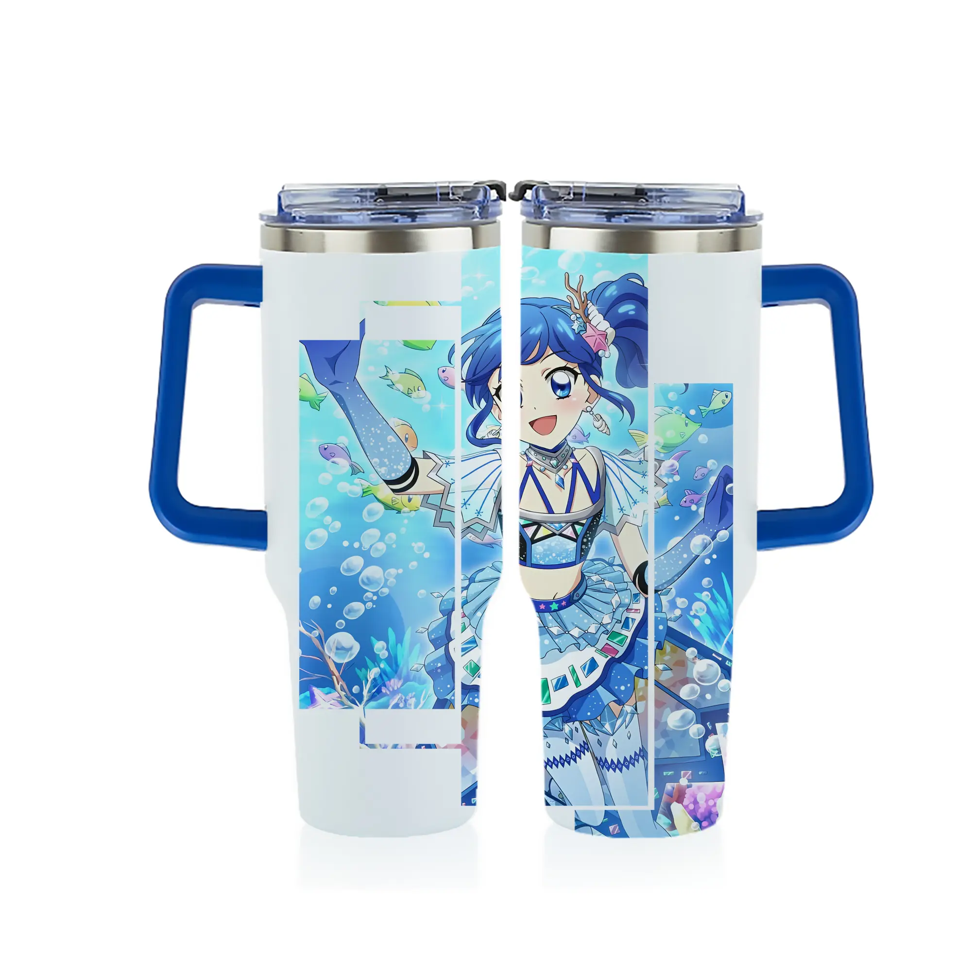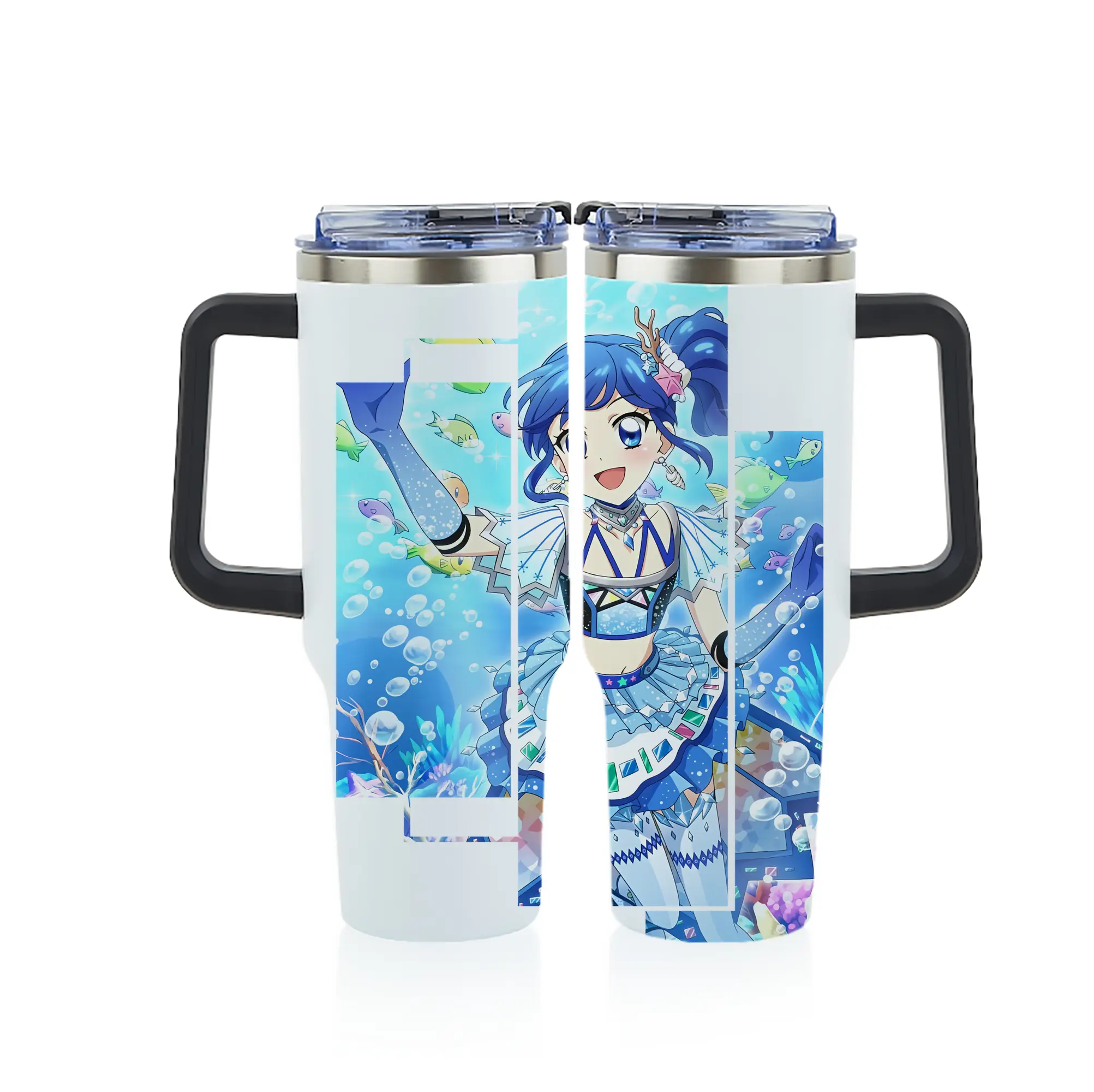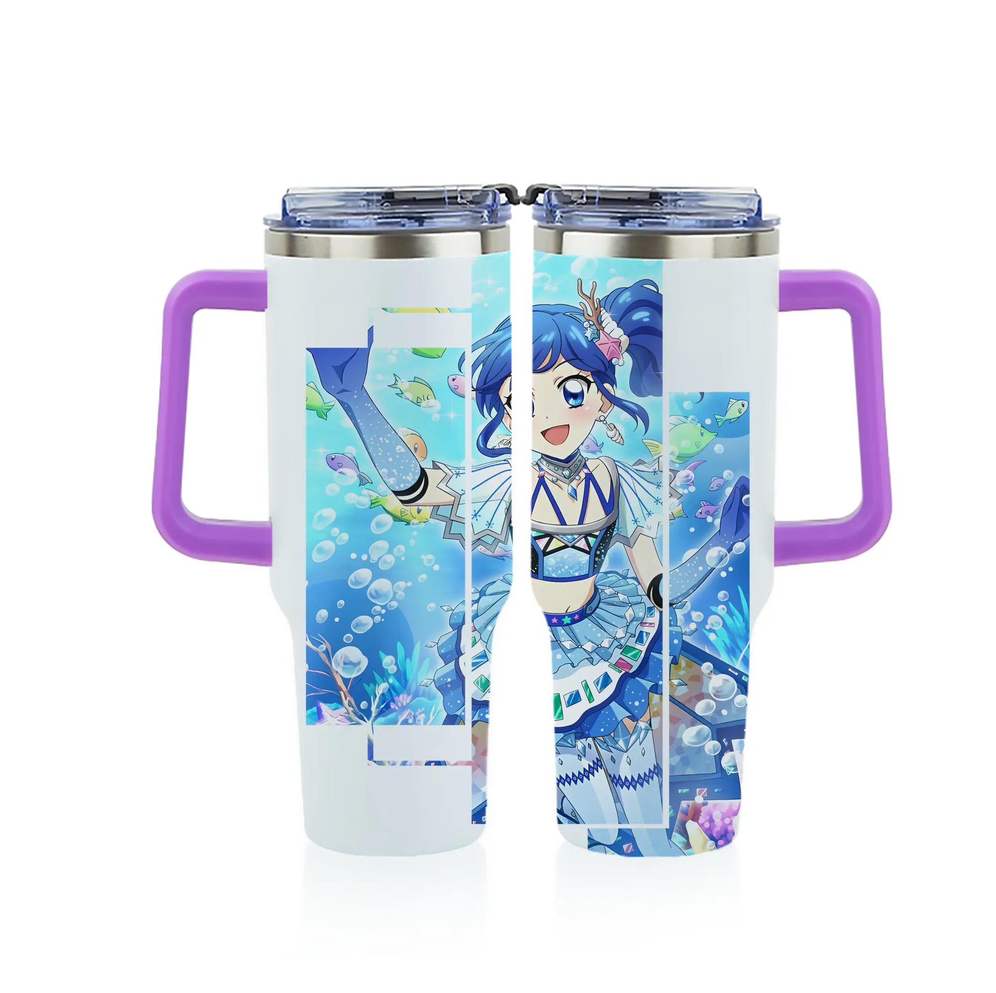 アイカツ グッズ 霧矢 あおい - 1200mL フルプリント車用タンブラー ・ 304ステンレス 内側 ・ 201ステンレス 外側 ・ 保温 保冷 ・ 通勤 ドライブ アウトドア用