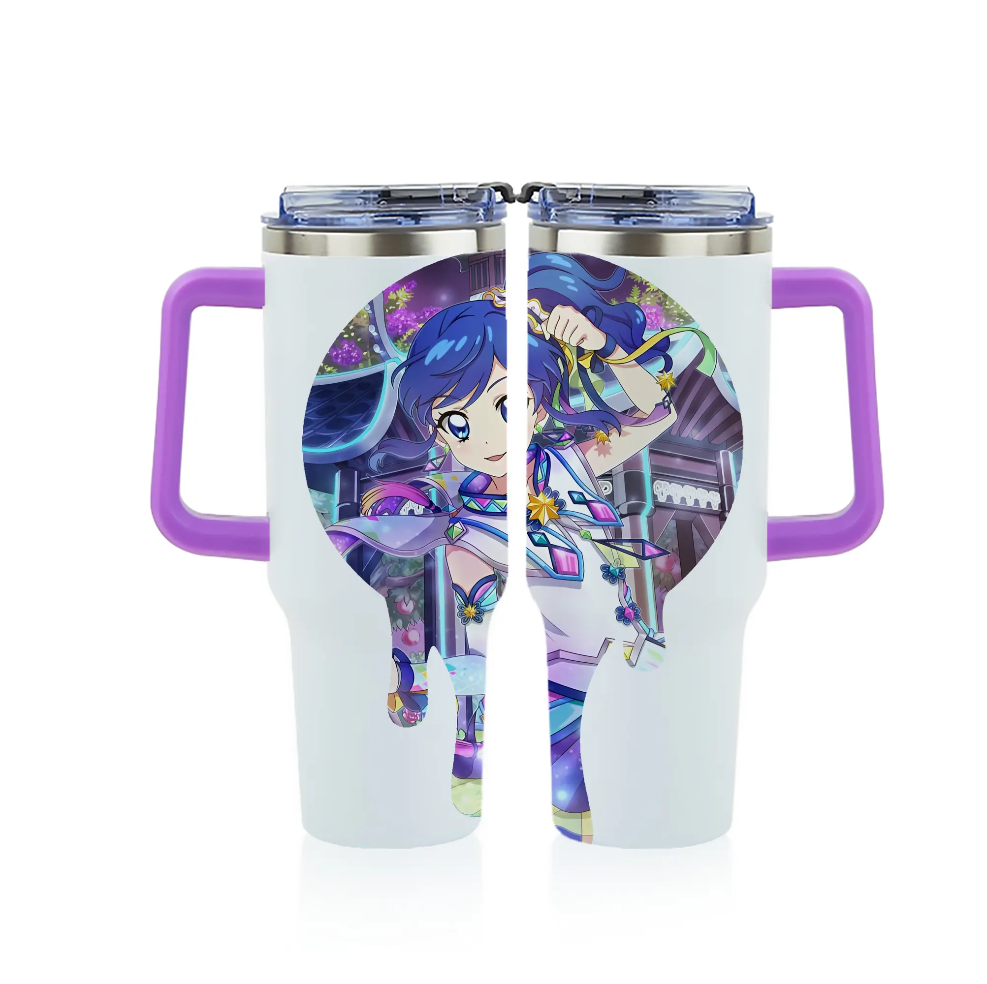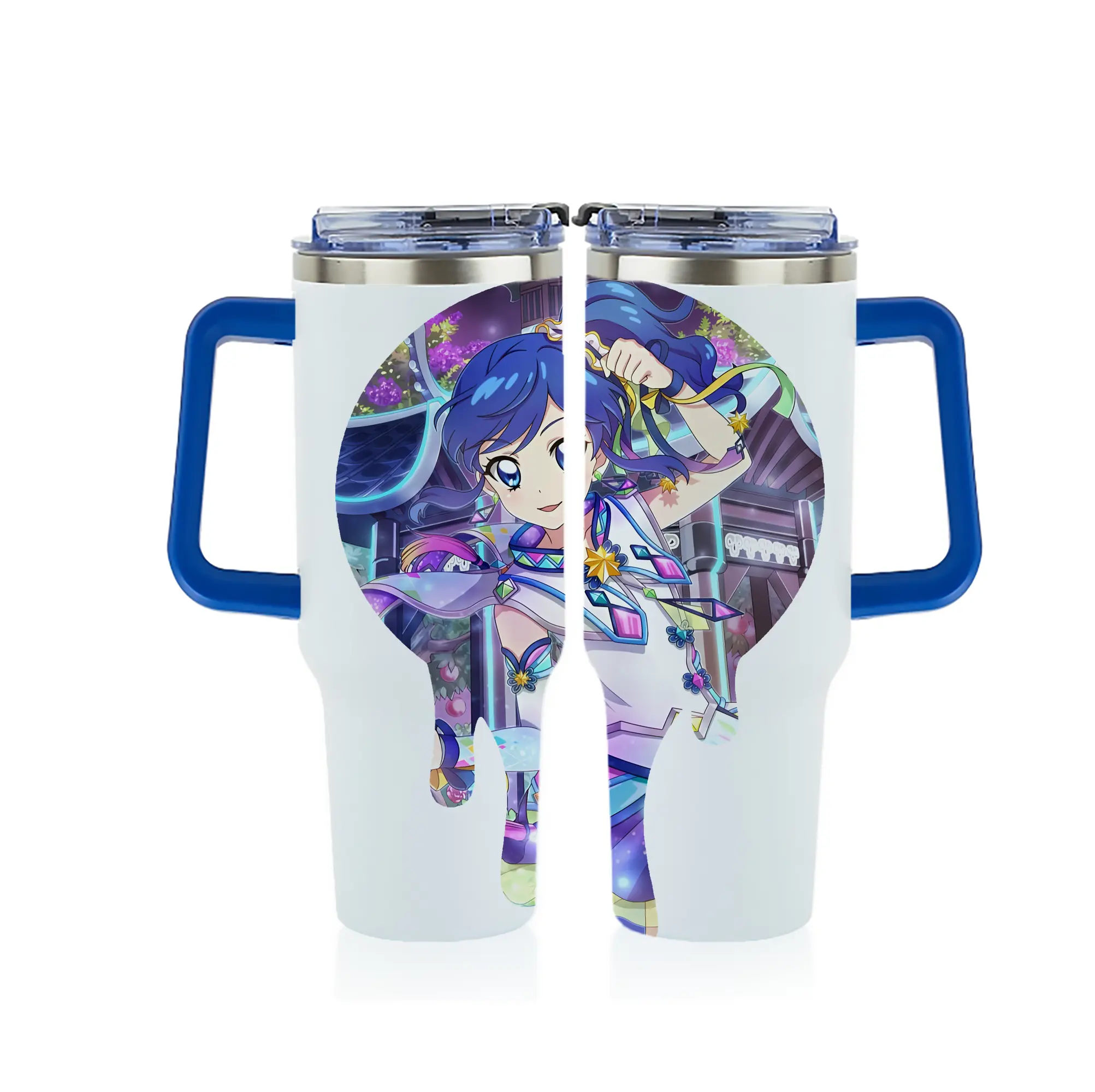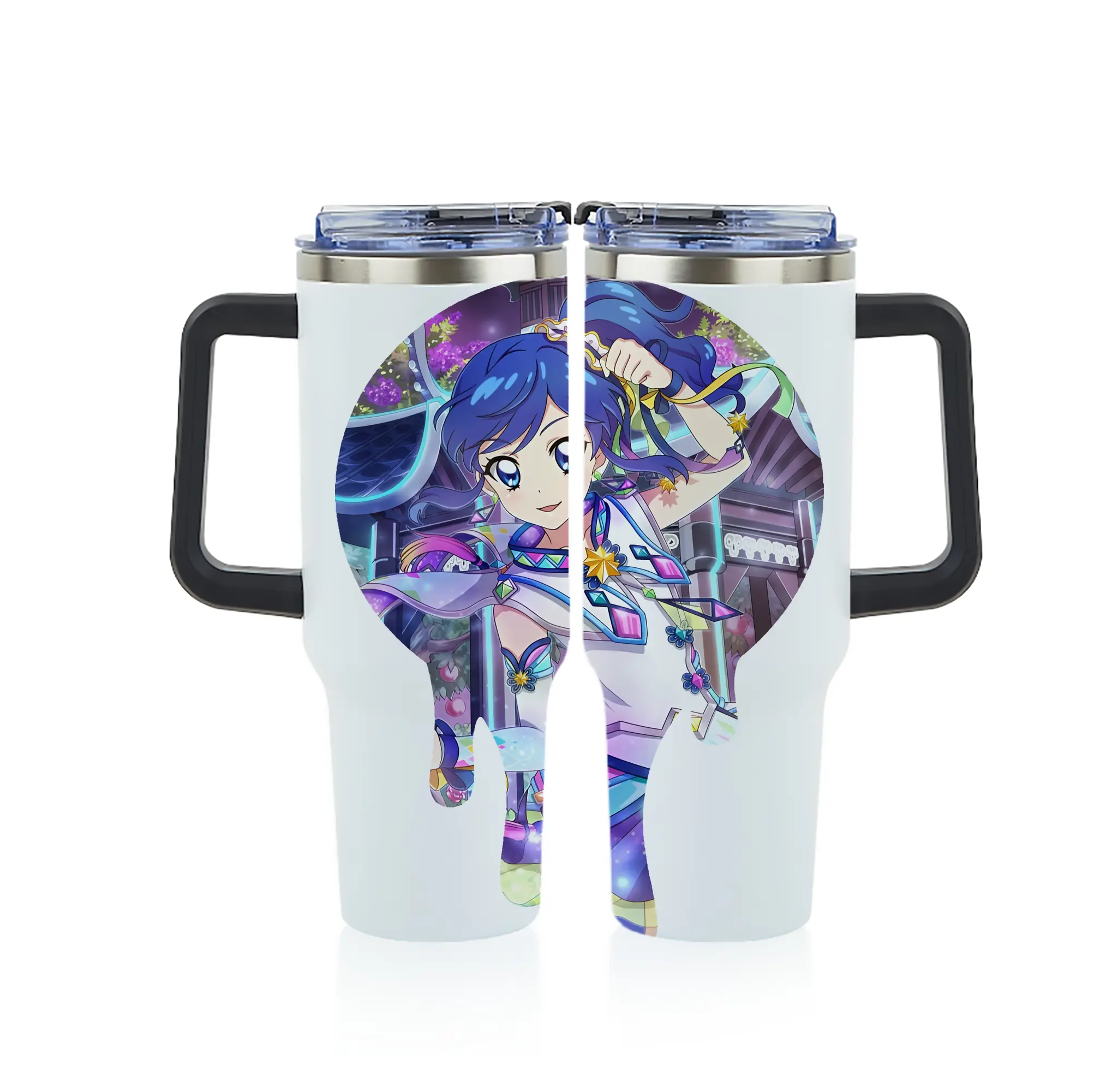 アイカツ グッズ 霧矢 あおい - 1200mL フルプリント車用タンブラー ・ 304ステンレス 内側 ・ 201ステンレス 外側 ・ 保温 保冷 ・ 通勤 ドライブ アウトドア用