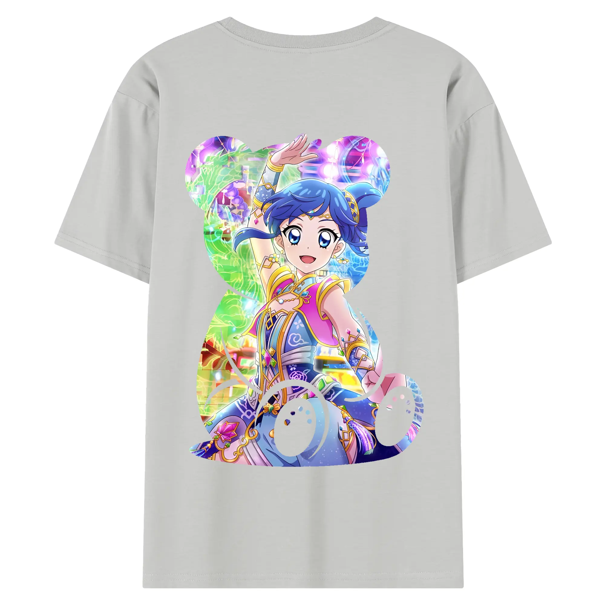 アイカツ グッズ 霧矢 あおい - 綿100% ヴィンテージ風 半袖Tシャツ ・ 背面プリント ・ 柔らか肌触り ・ 通気性 快適 ・ スポーツ カジュアル 外出用