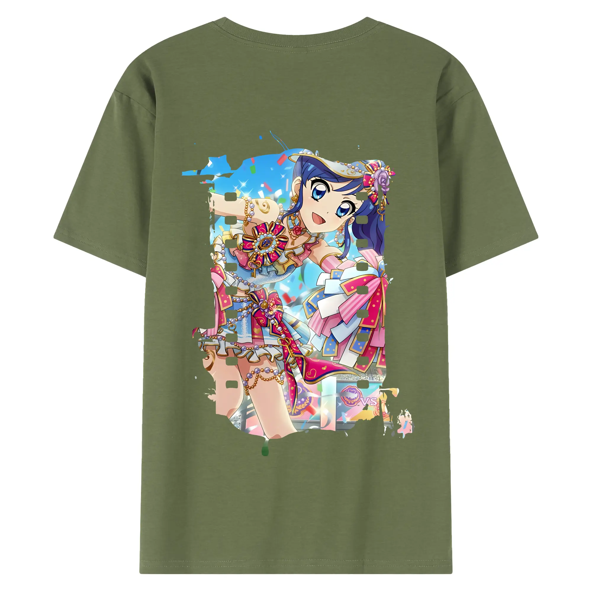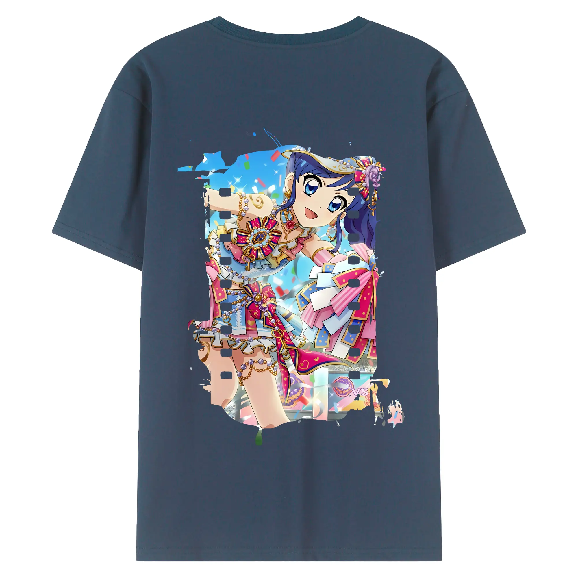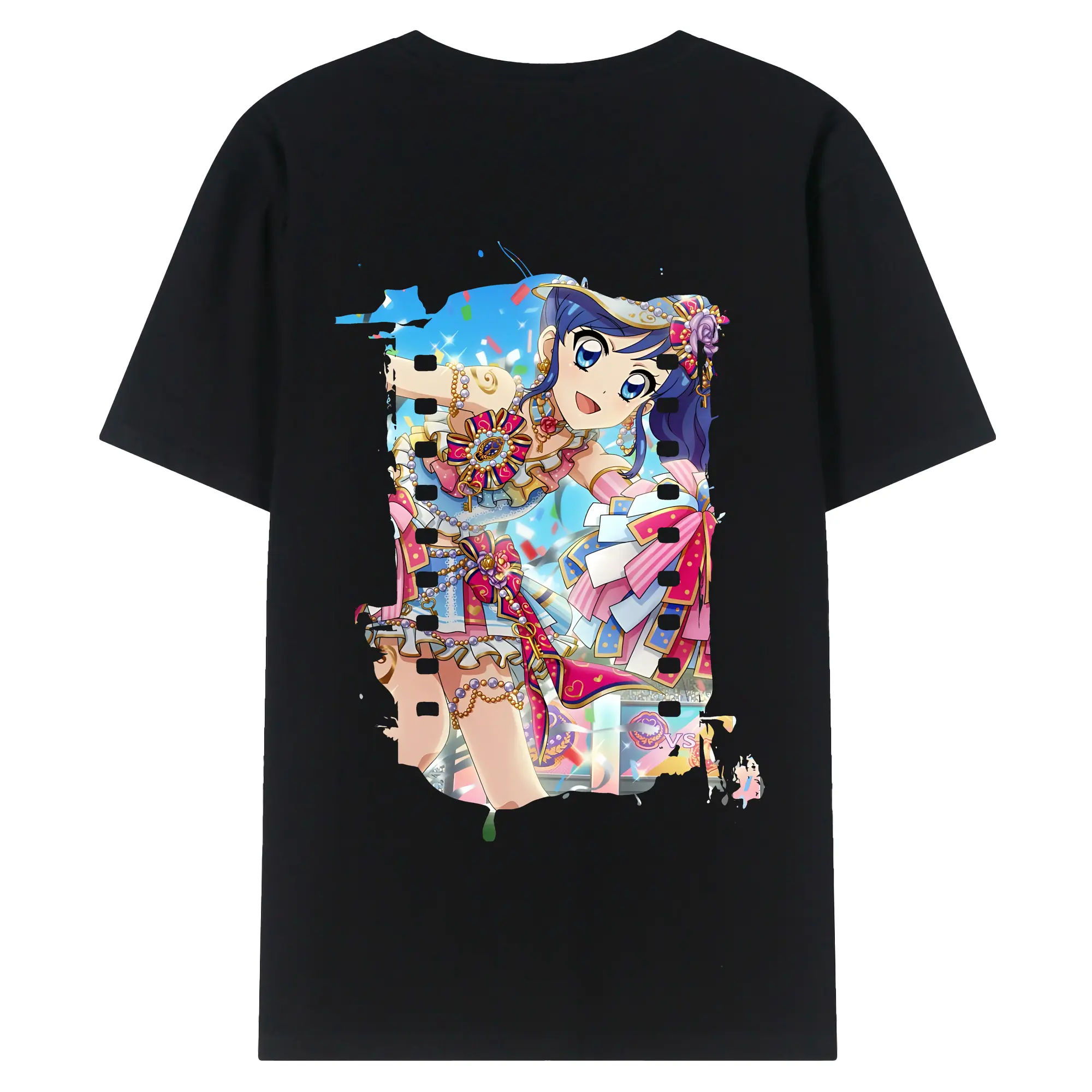 アイカツ グッズ 霧矢 あおい - 綿100% ヴィンテージ風 半袖Tシャツ ・ 背面プリント ・ 柔らか肌触り ・ 通気性 快適 ・ スポーツ カジュアル 外出用