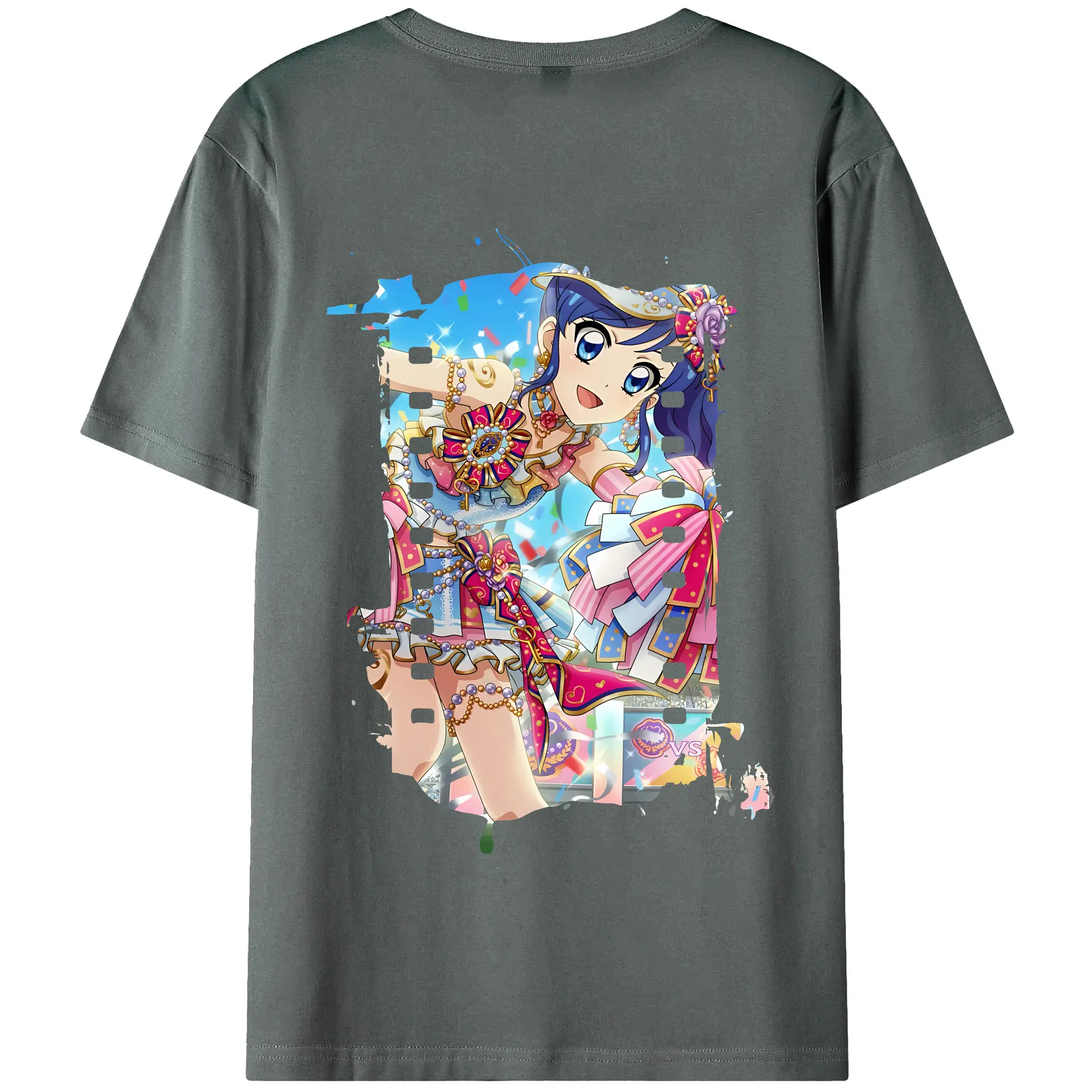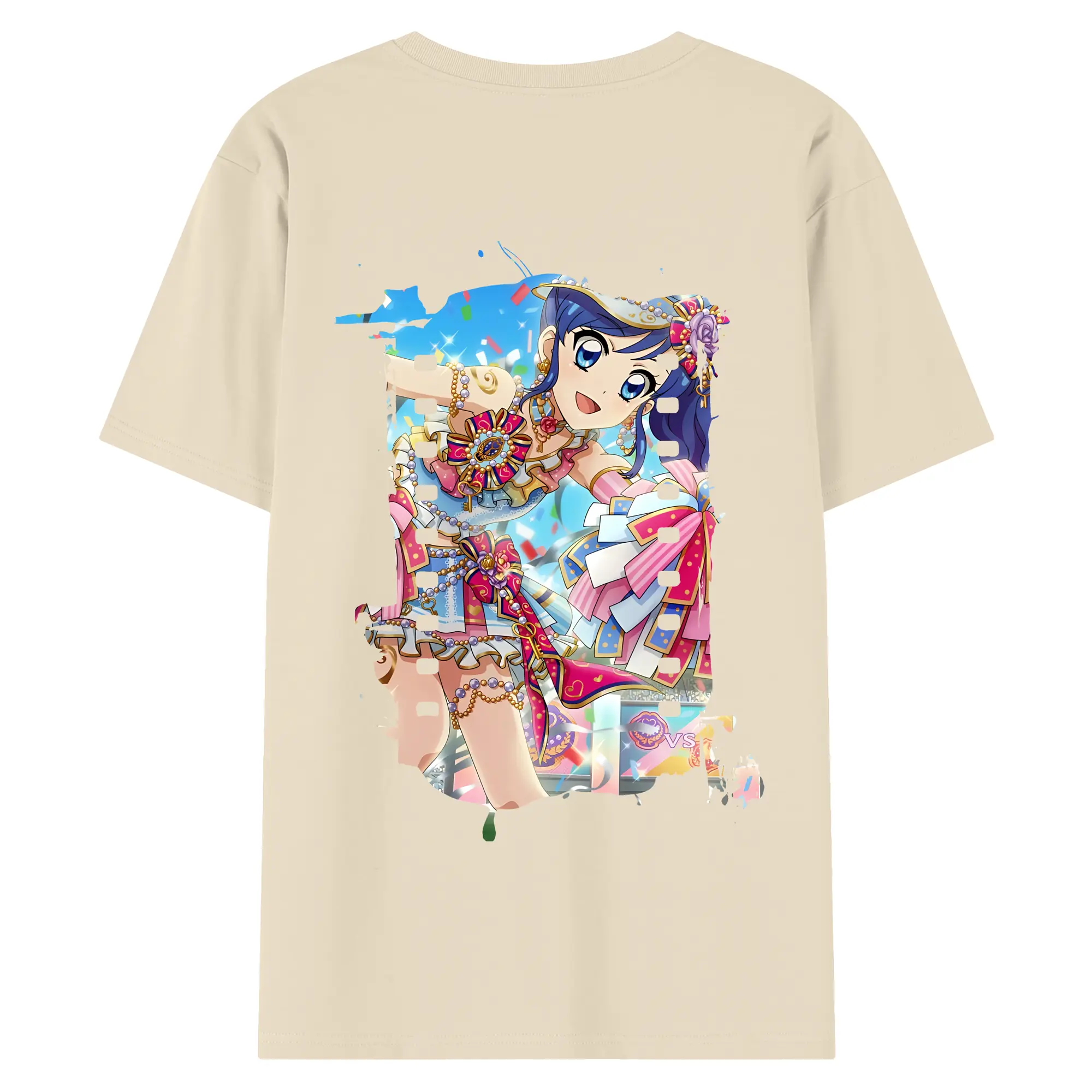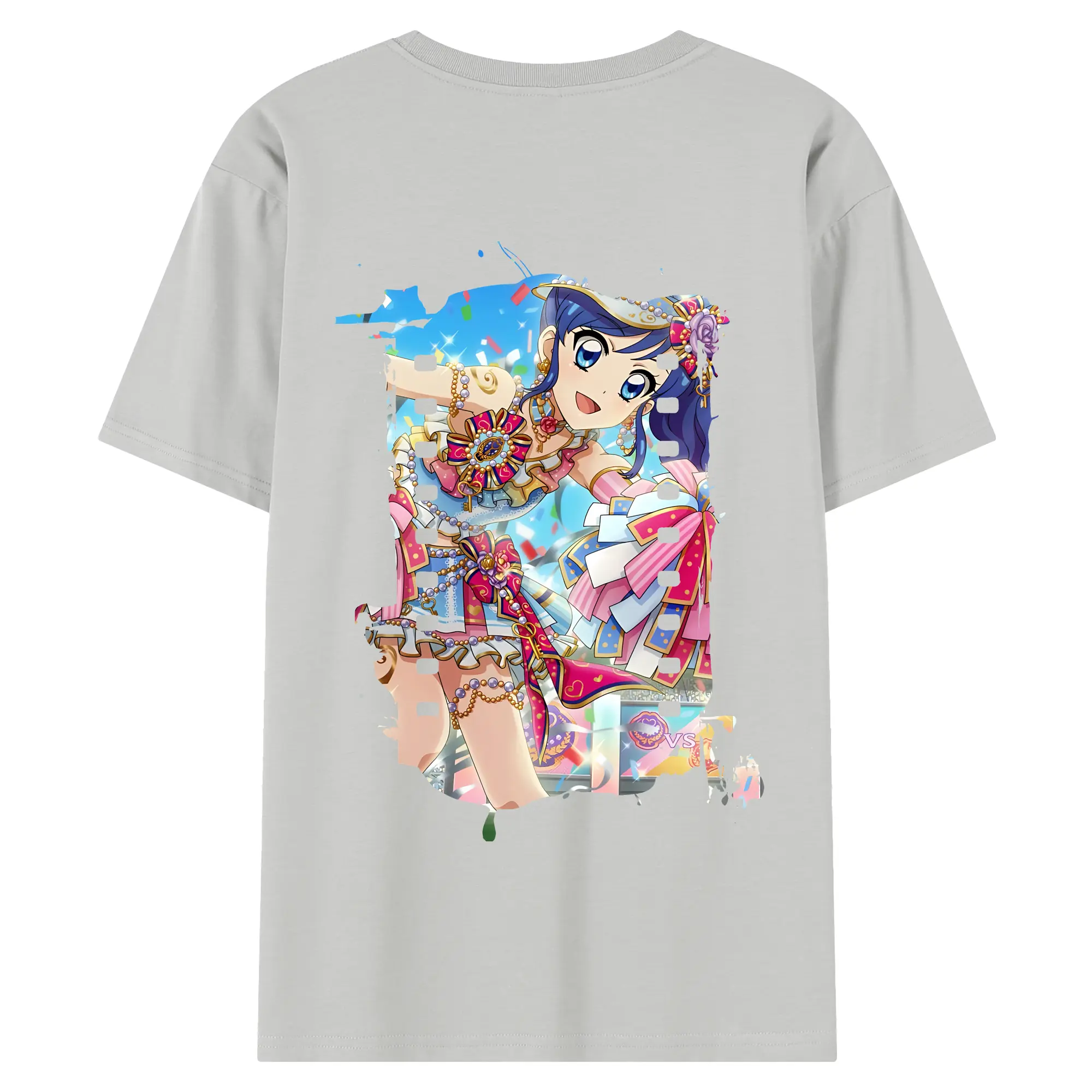 アイカツ グッズ 霧矢 あおい - 綿100% ヴィンテージ風 半袖Tシャツ ・ 背面プリント ・ 柔らか肌触り ・ 通気性 快適 ・ スポーツ カジュアル 外出用