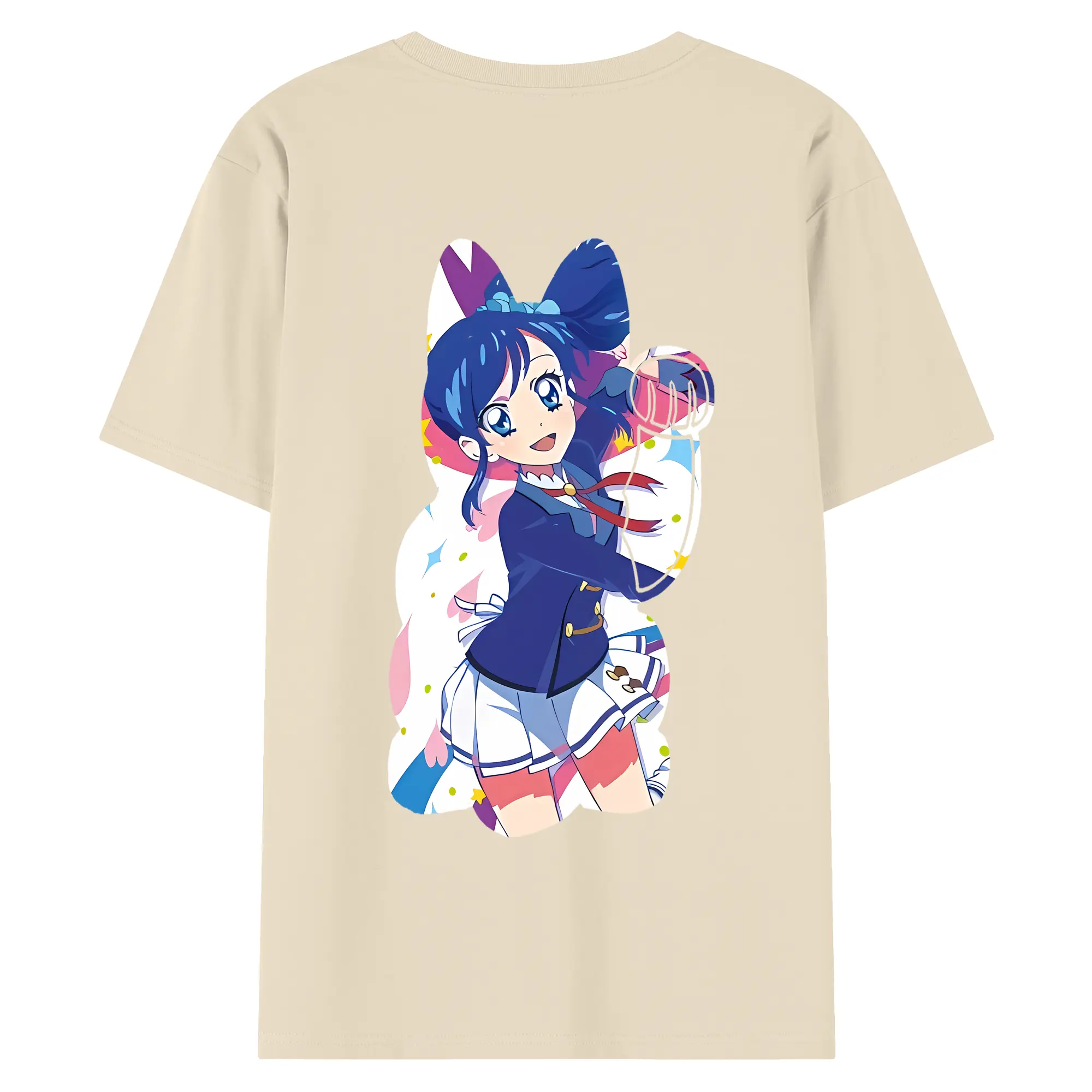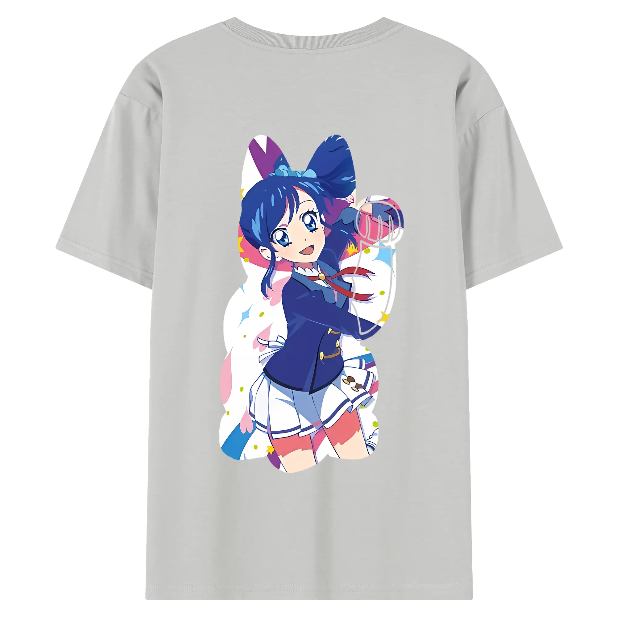 アイカツ グッズ 霧矢 あおい - 綿100% ヴィンテージ風 半袖Tシャツ ・ 背面プリント ・ 柔らか肌触り ・ 通気性 快適 ・ スポーツ カジュアル 外出用