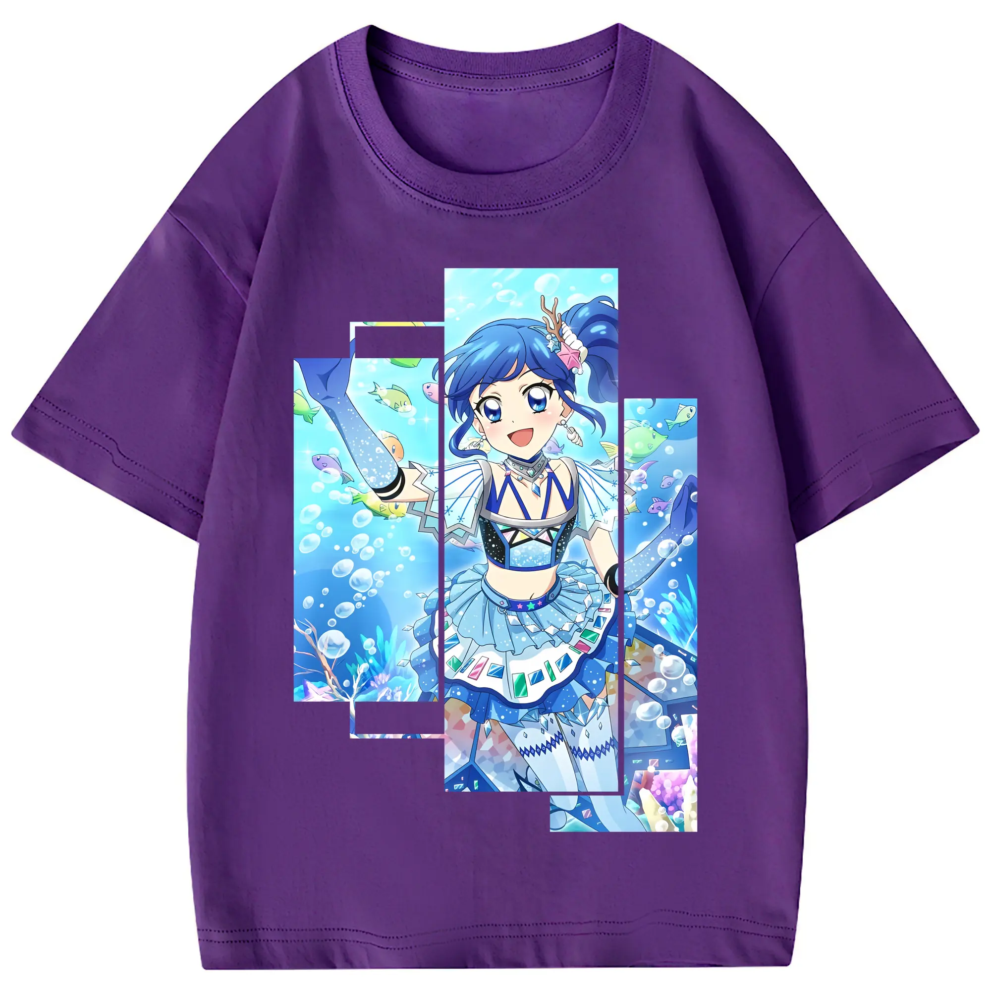 アイカツ グッズ 霧矢 あおい - 綿100% 半袖Tシャツ ・ フロントプリント ・ 快適 通気性 ・ 日常使い 散歩 スポーツ用