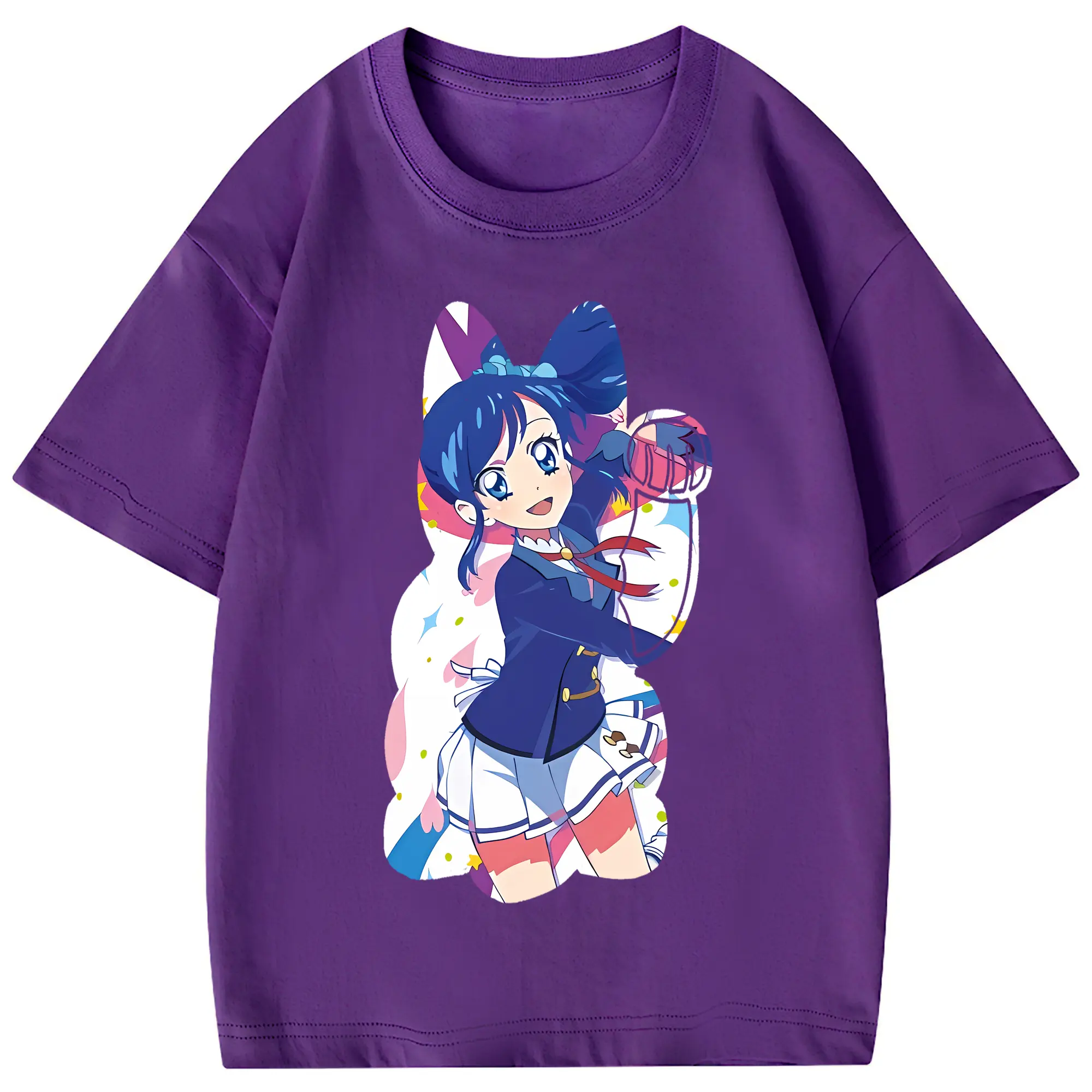 アイカツ グッズ 霧矢 あおい - 綿100% 半袖Tシャツ ・ フロントプリント ・ 快適 通気性 ・ 日常使い 散歩 スポーツ用