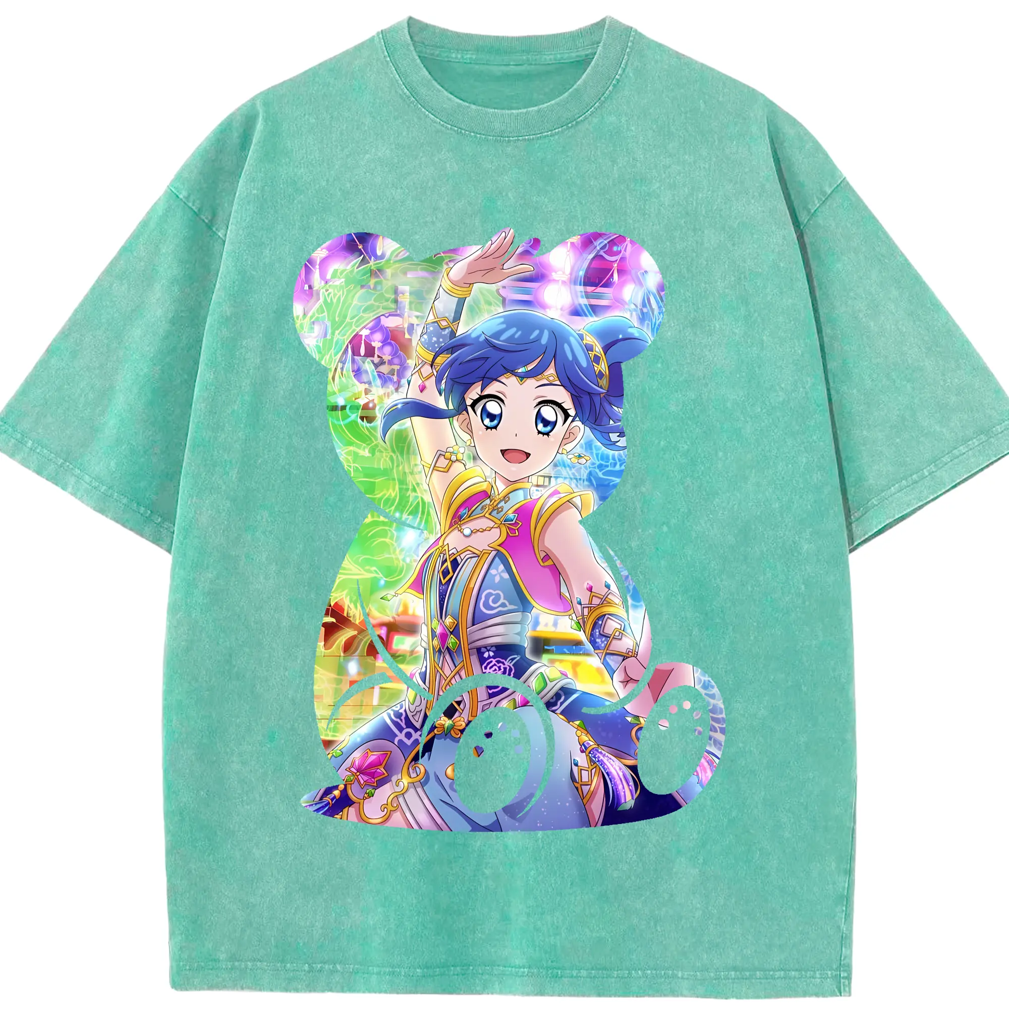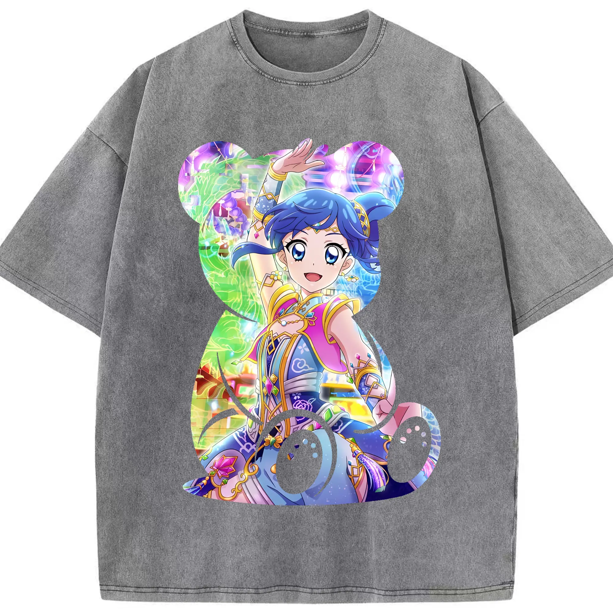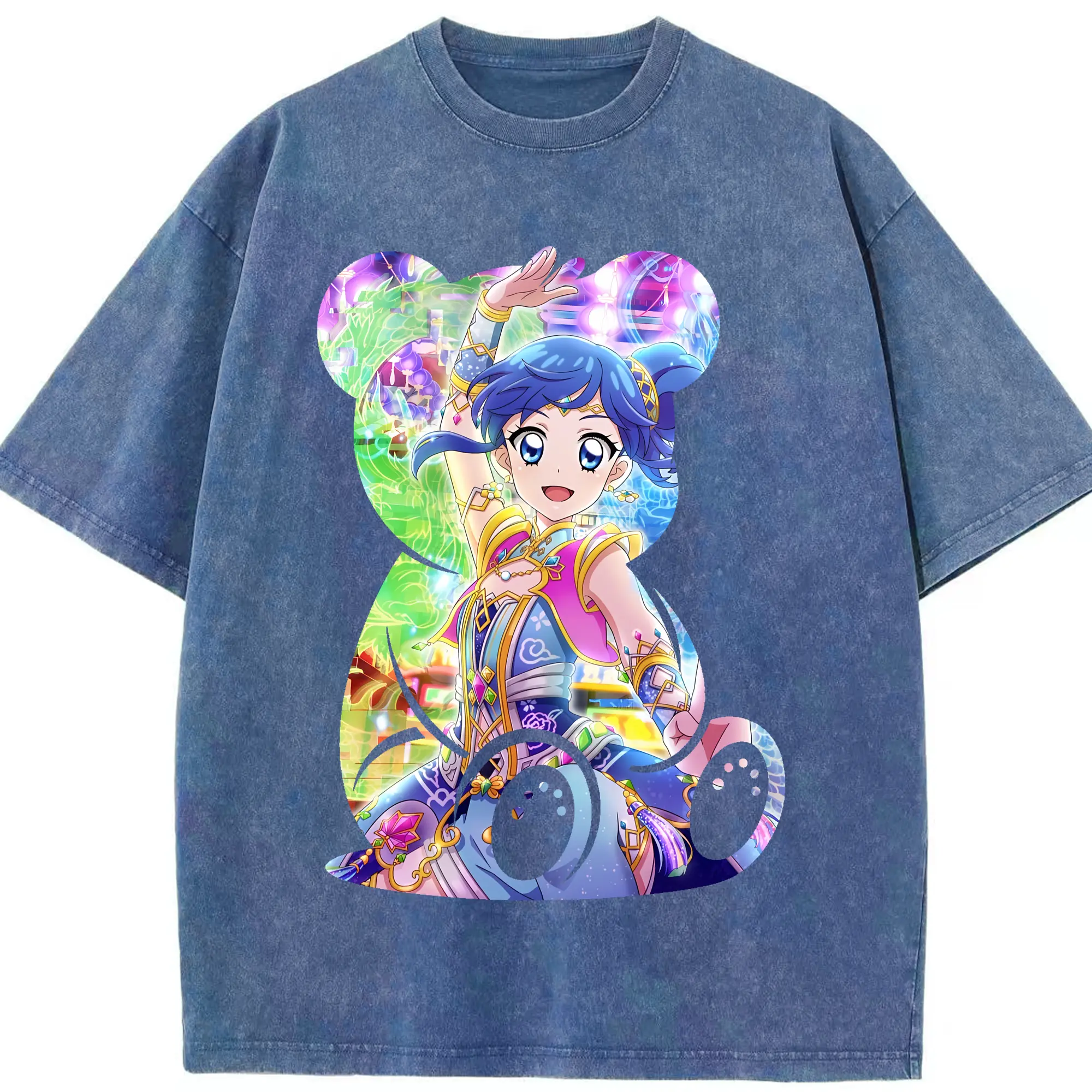 アイカツ グッズ 霧矢 あおい - 綿100% ヴィンテージ風 半袖Tシャツ ・ 背面プリント ・ 柔らか肌触り ・ 通気性 快適 ・ スポーツ カジュアル 外出用