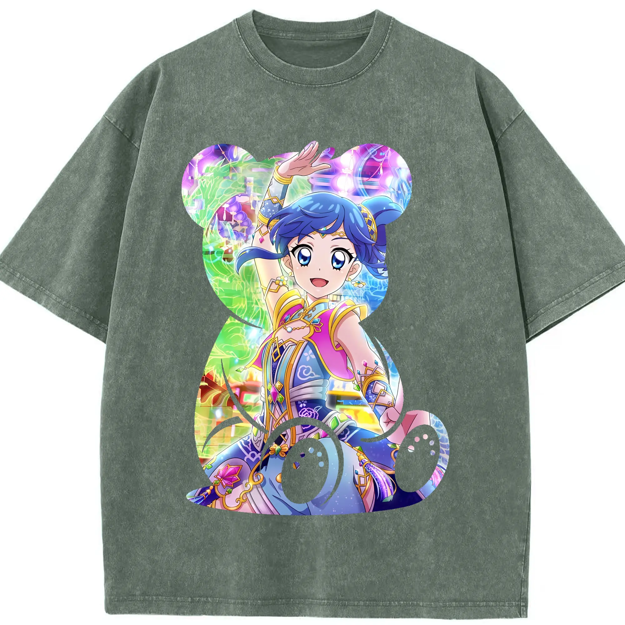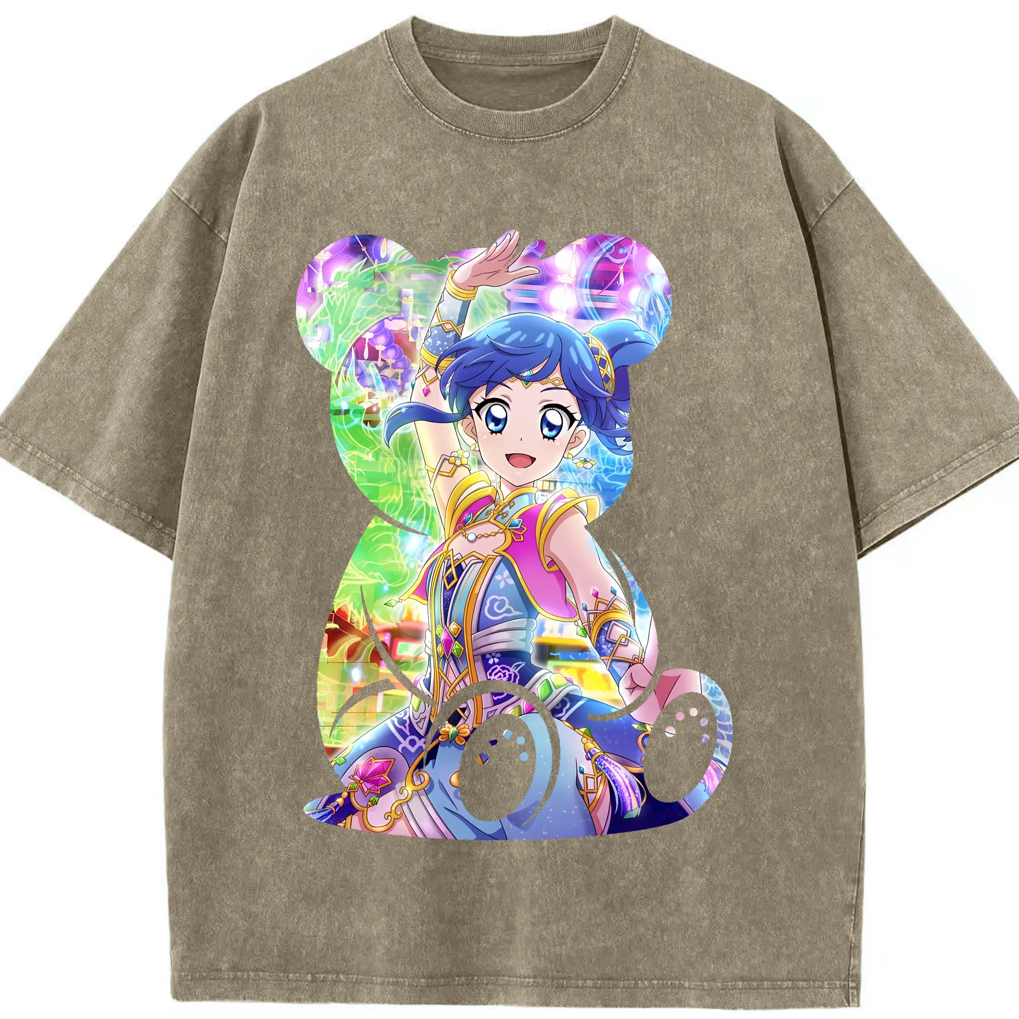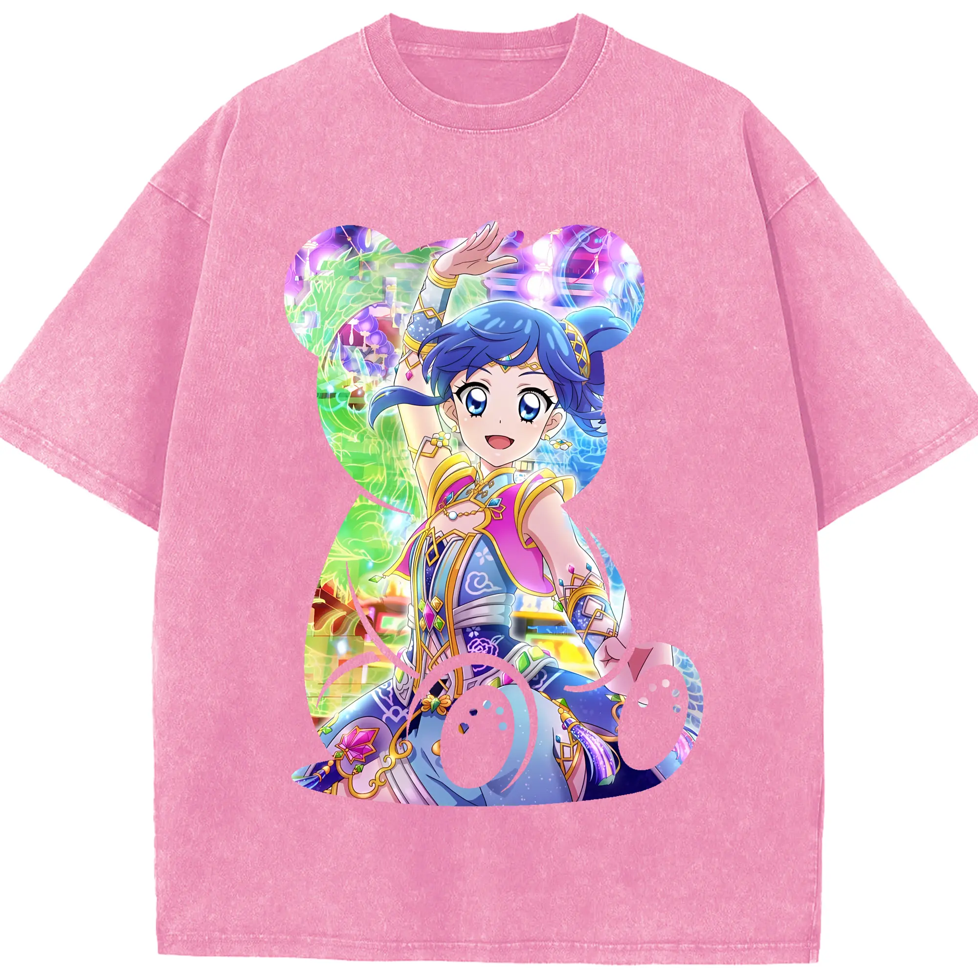 アイカツ グッズ 霧矢 あおい - 綿100% ヴィンテージ風 半袖Tシャツ ・ 背面プリント ・ 柔らか肌触り ・ 通気性 快適 ・ スポーツ カジュアル 外出用