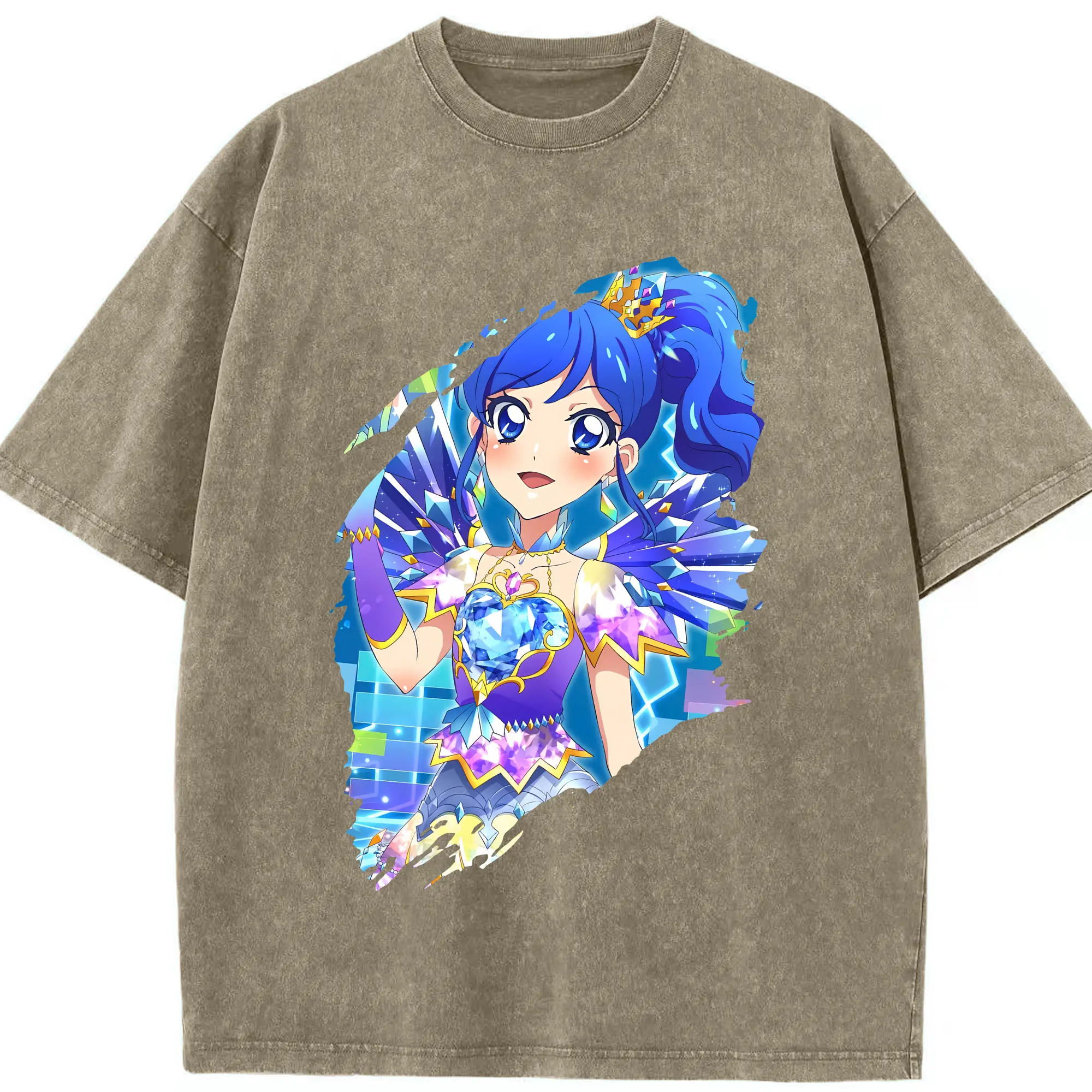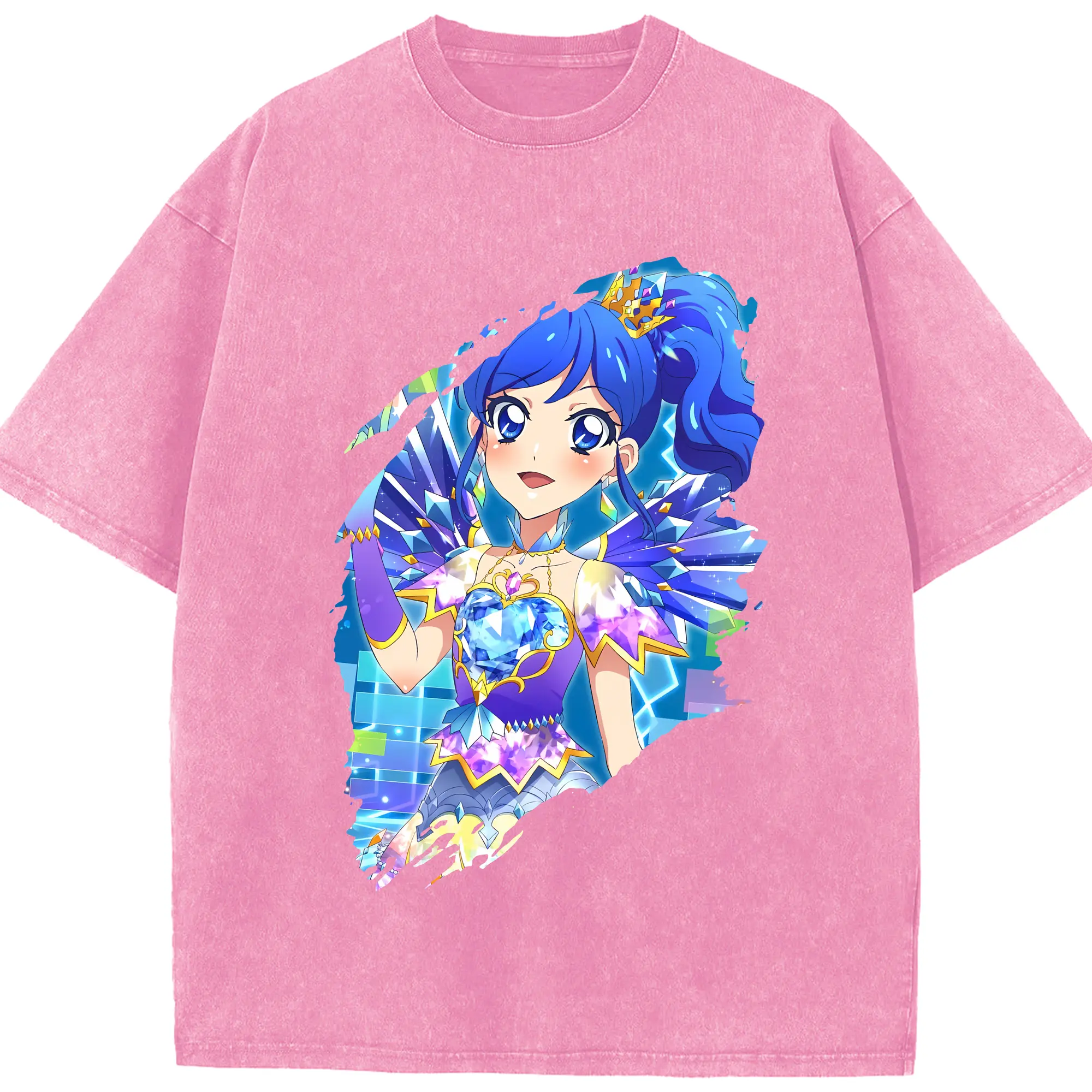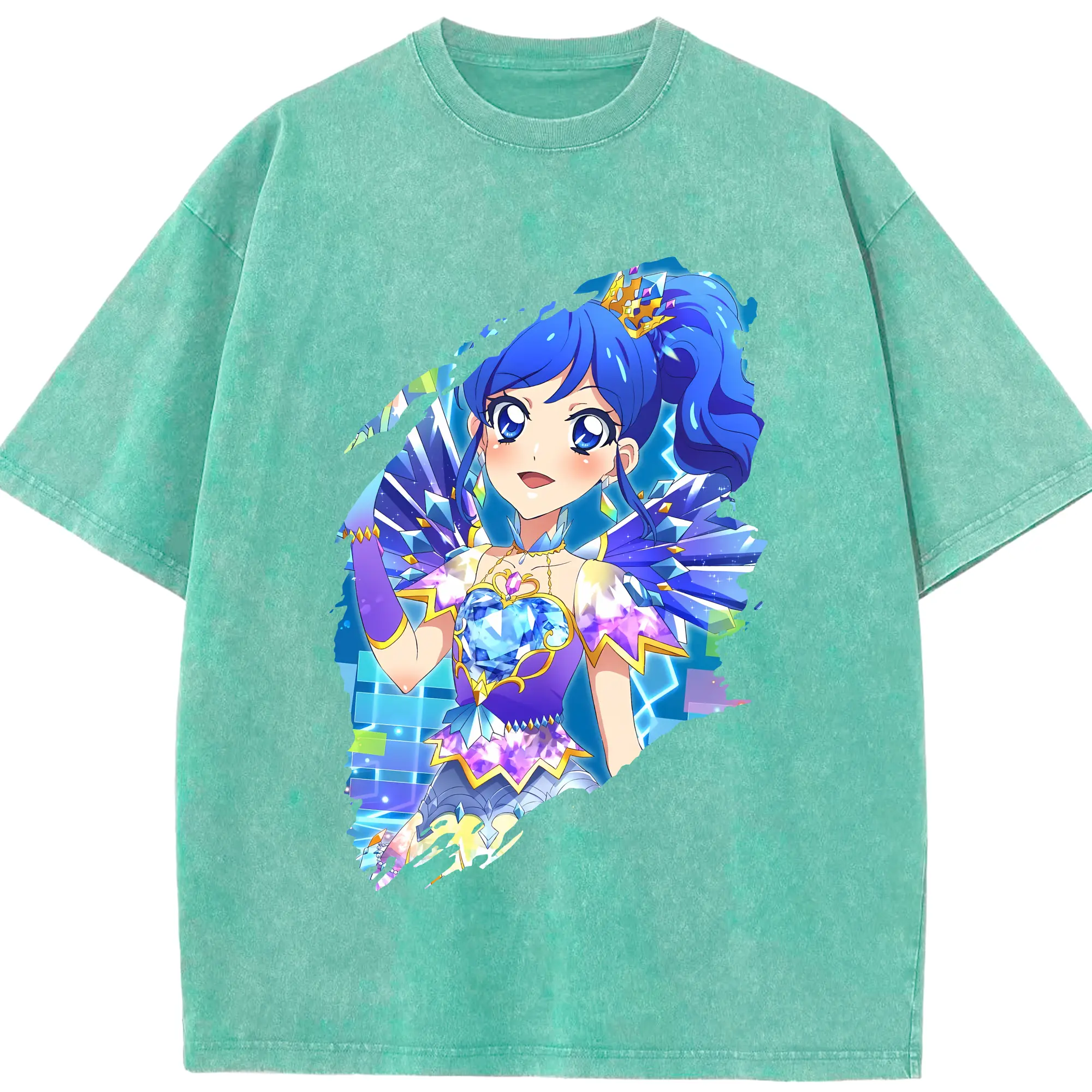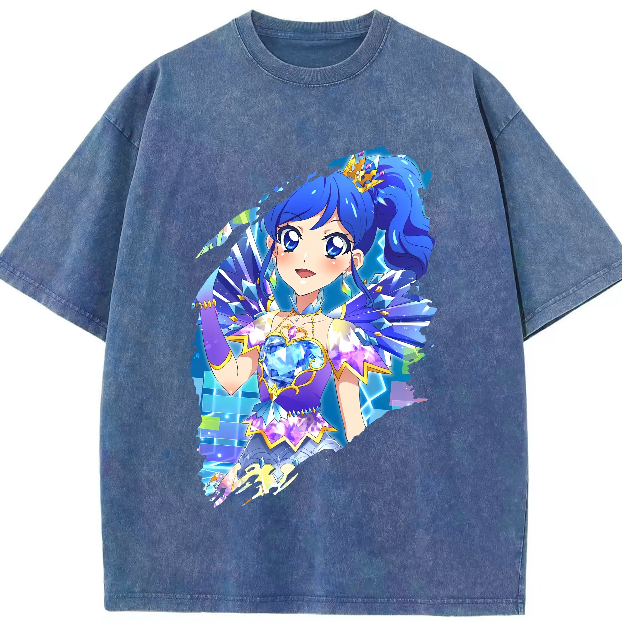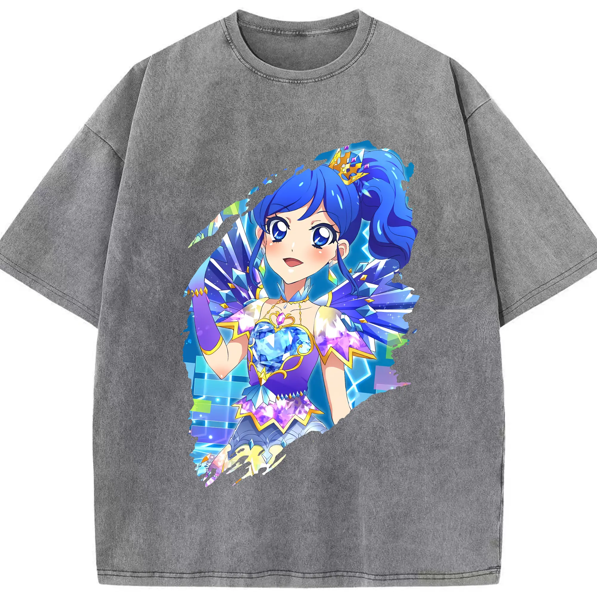 アイカツ グッズ 霧矢 あおい - 綿100% ヴィンテージ風 半袖Tシャツ ・ 背面プリント ・ 柔らか肌触り ・ 通気性 快適 ・ スポーツ カジュアル 外出用
