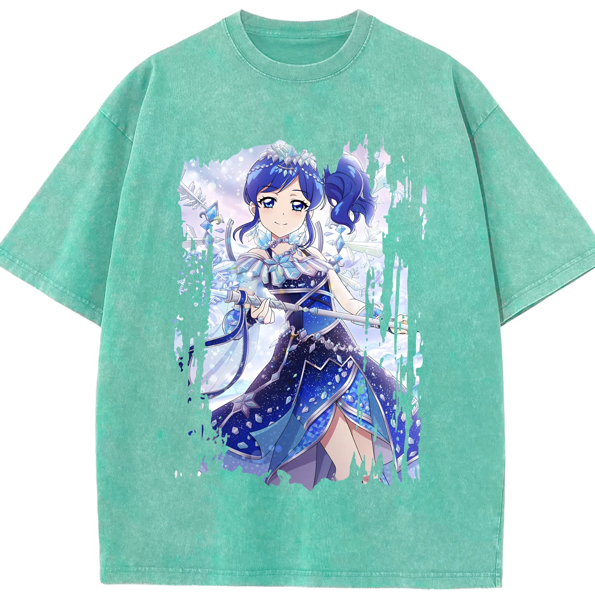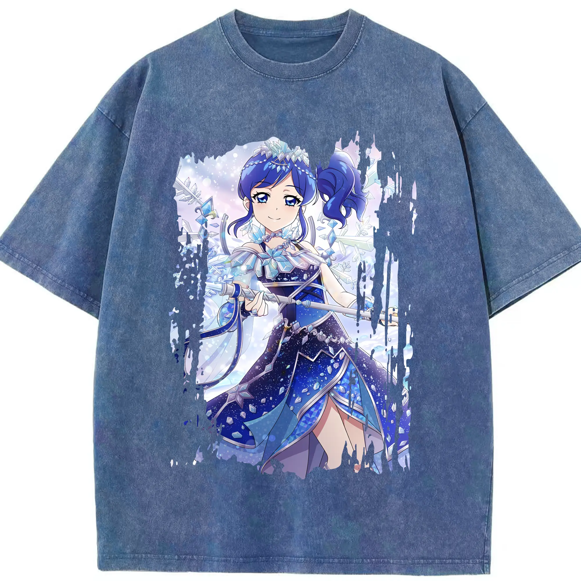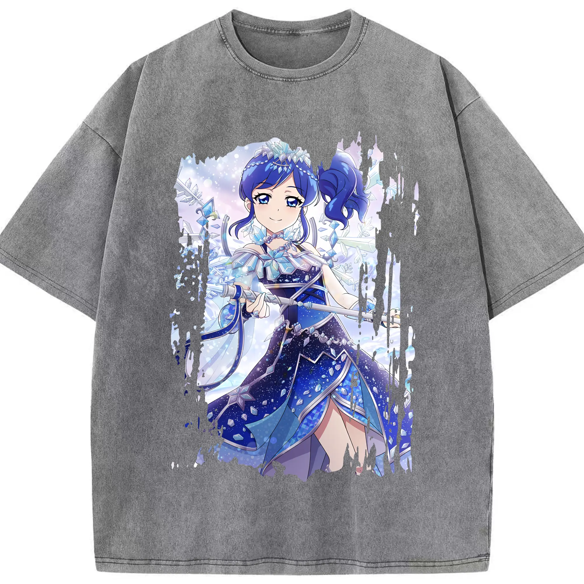 アイカツ グッズ 霧矢 あおい - 綿100% ヴィンテージ風 半袖Tシャツ ・ 背面プリント ・ 柔らか肌触り ・ 通気性 快適 ・ スポーツ カジュアル 外出用
