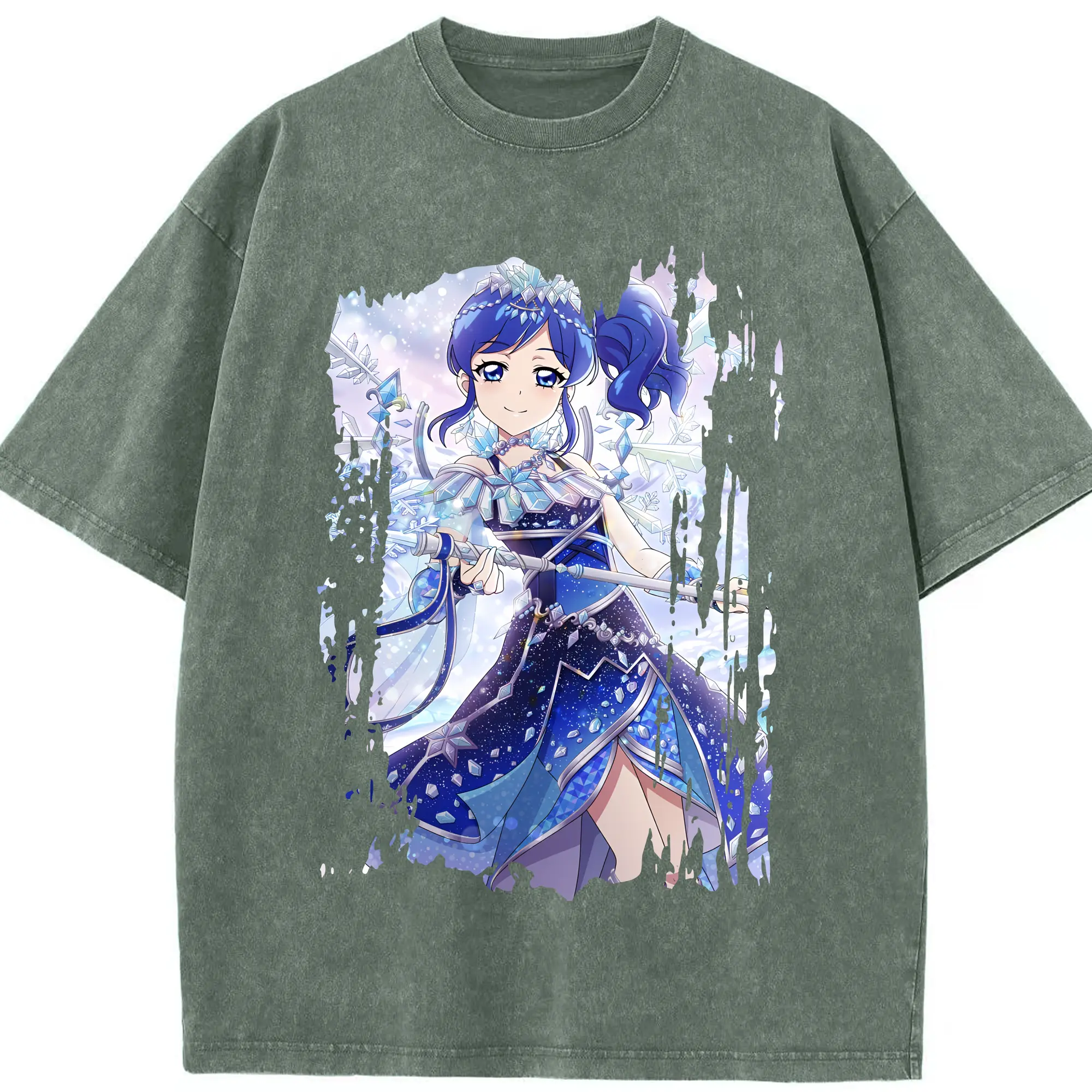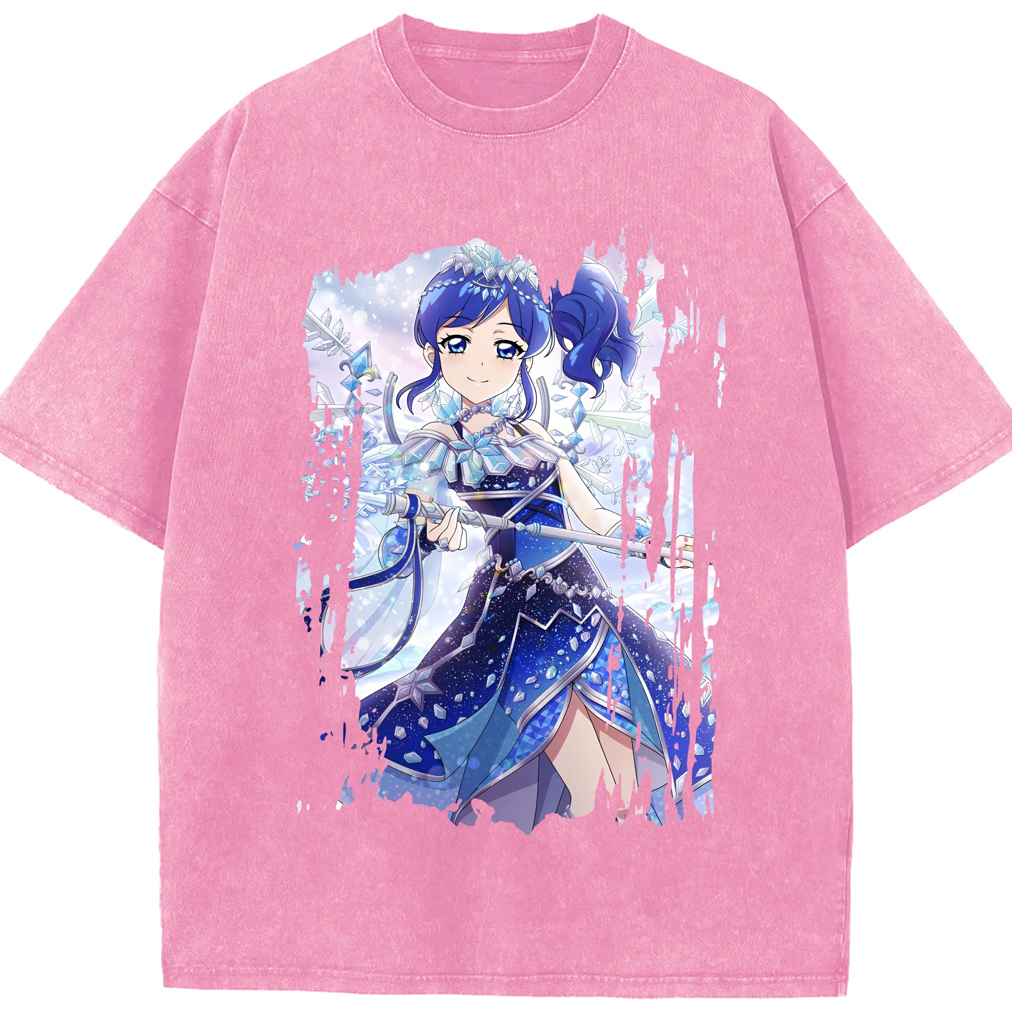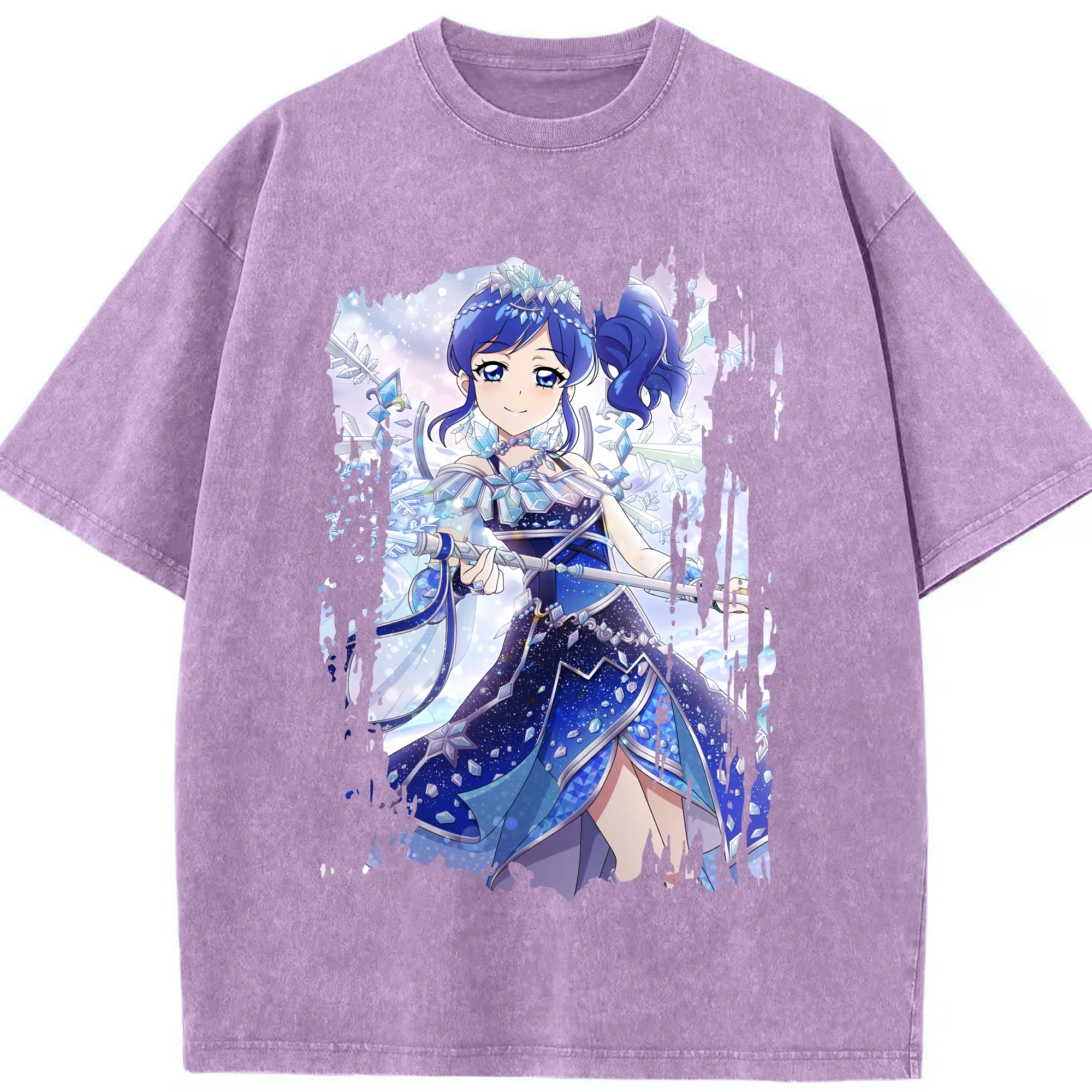 アイカツ グッズ 霧矢 あおい - 綿100% ヴィンテージ風 半袖Tシャツ ・ 背面プリント ・ 柔らか肌触り ・ 通気性 快適 ・ スポーツ カジュアル 外出用