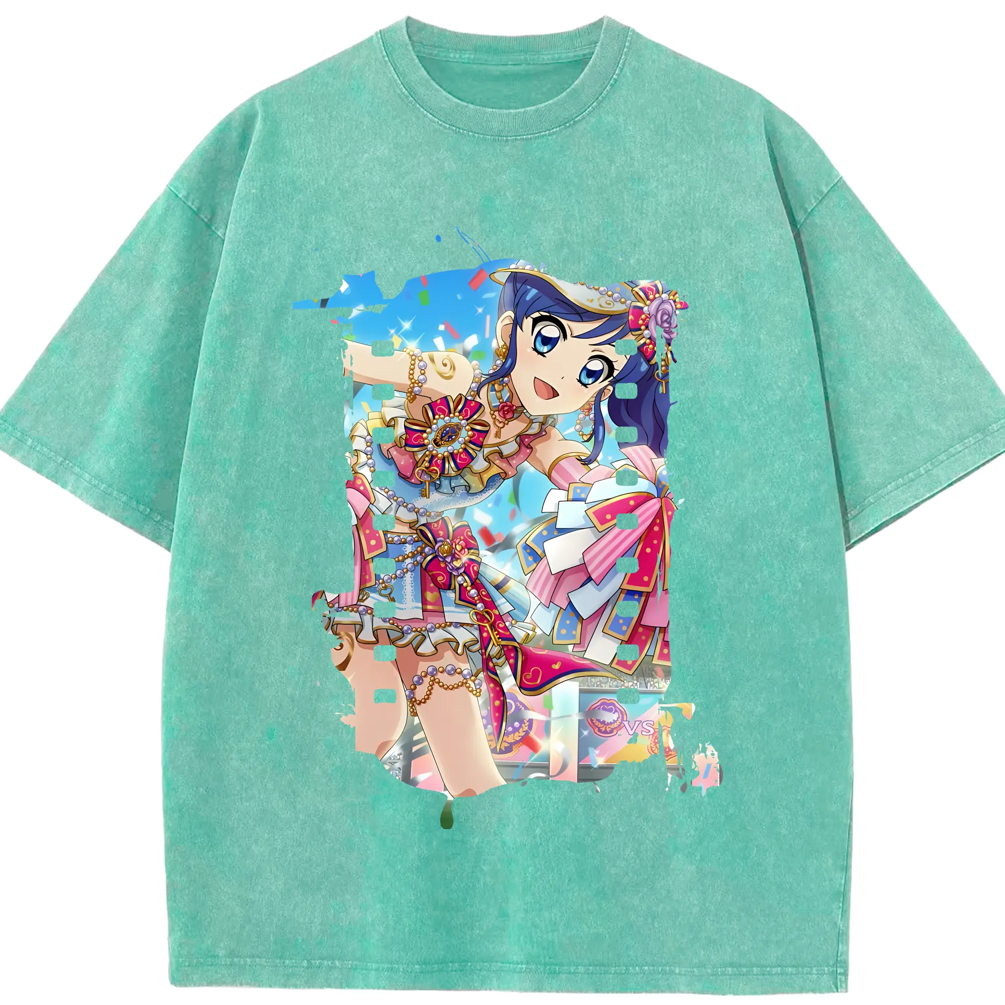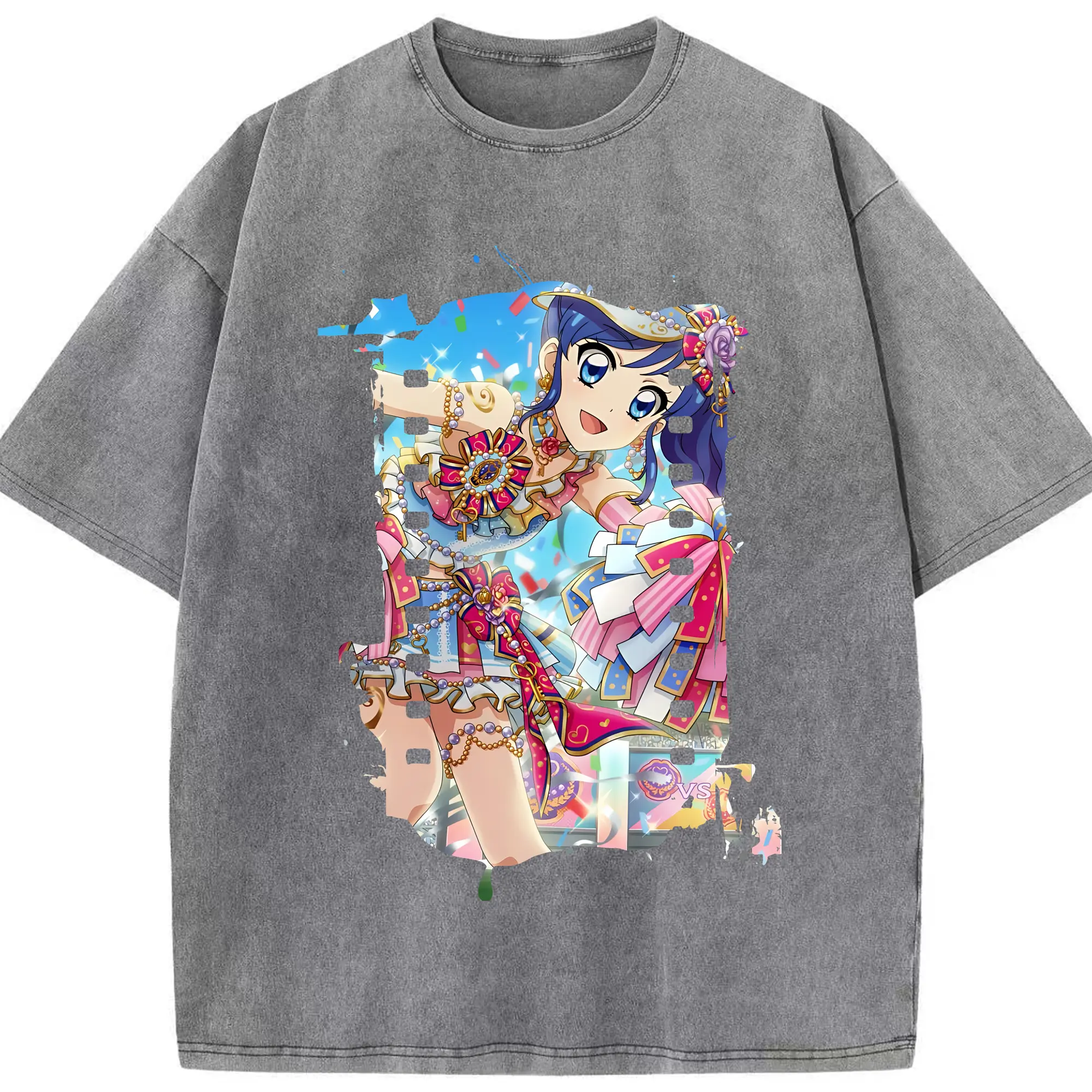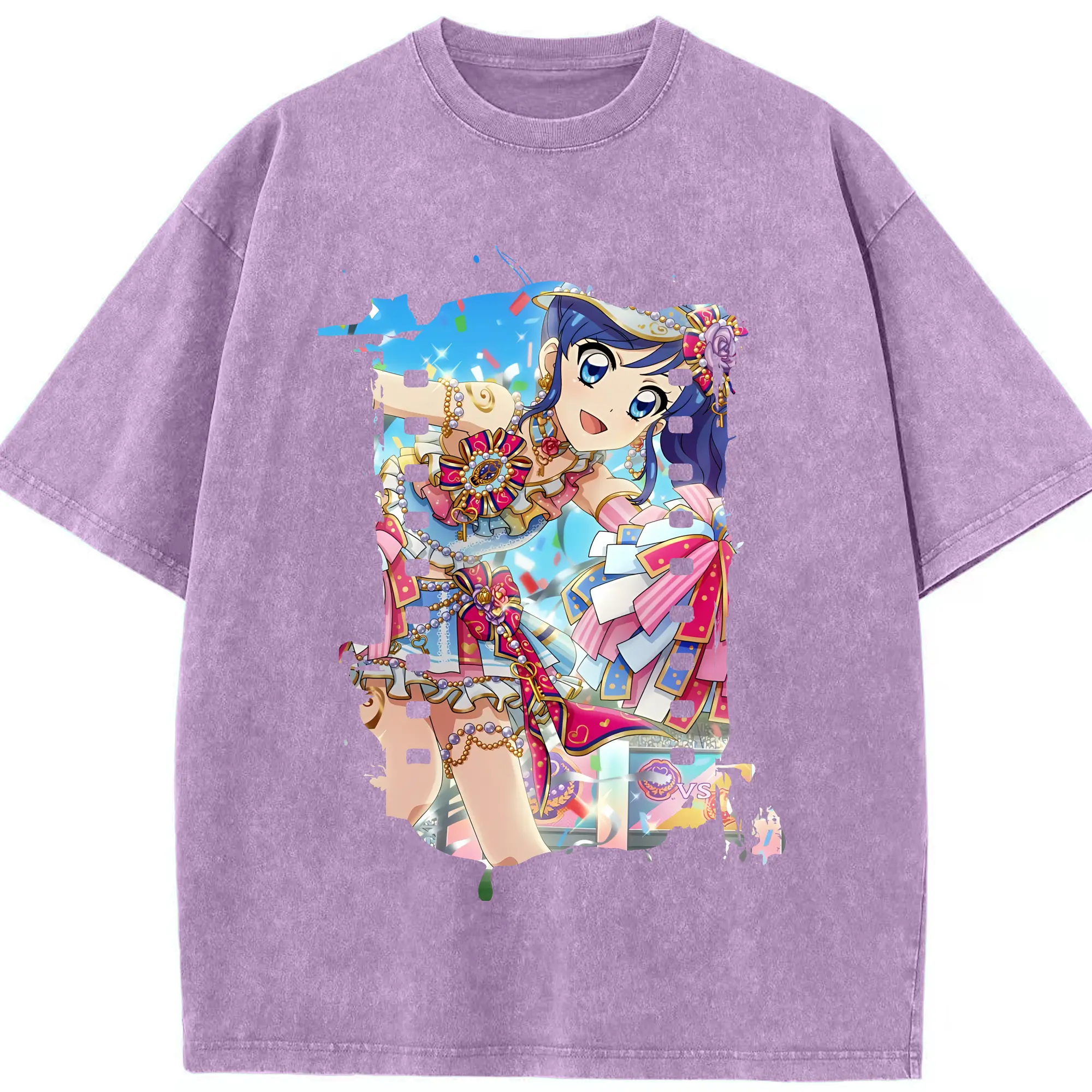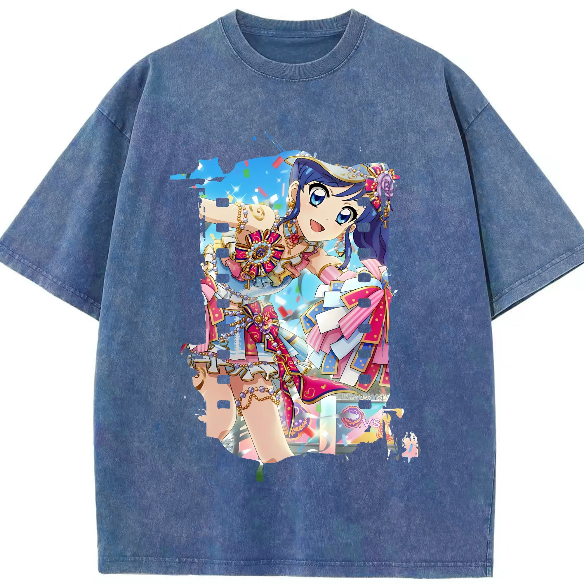 アイカツ グッズ 霧矢 あおい - 綿100% ヴィンテージ風 半袖Tシャツ ・ 背面プリント ・ 柔らか肌触り ・ 通気性 快適 ・ スポーツ カジュアル 外出用