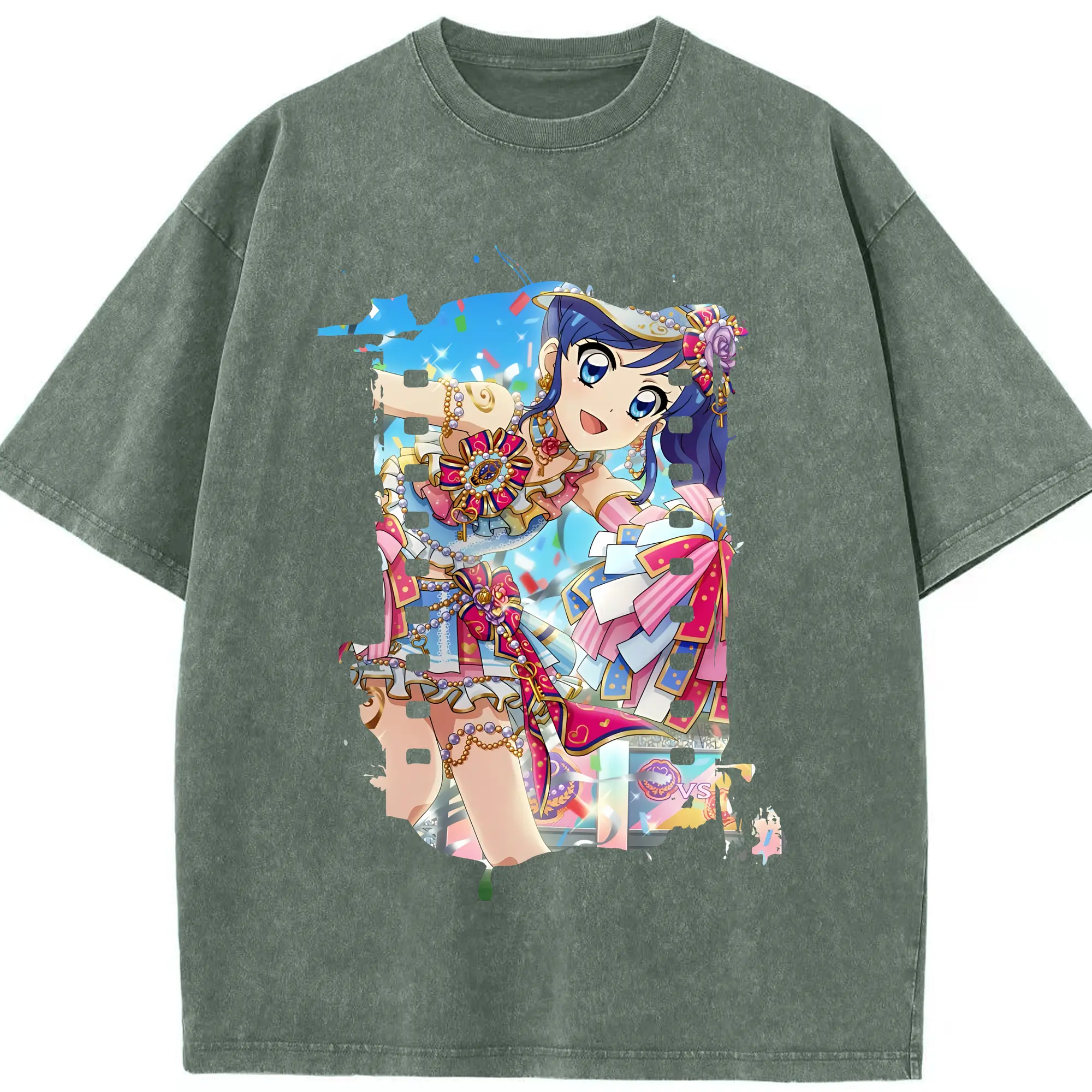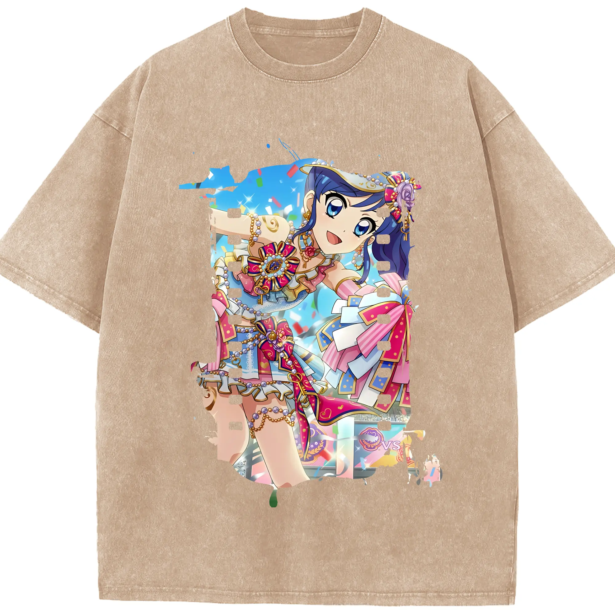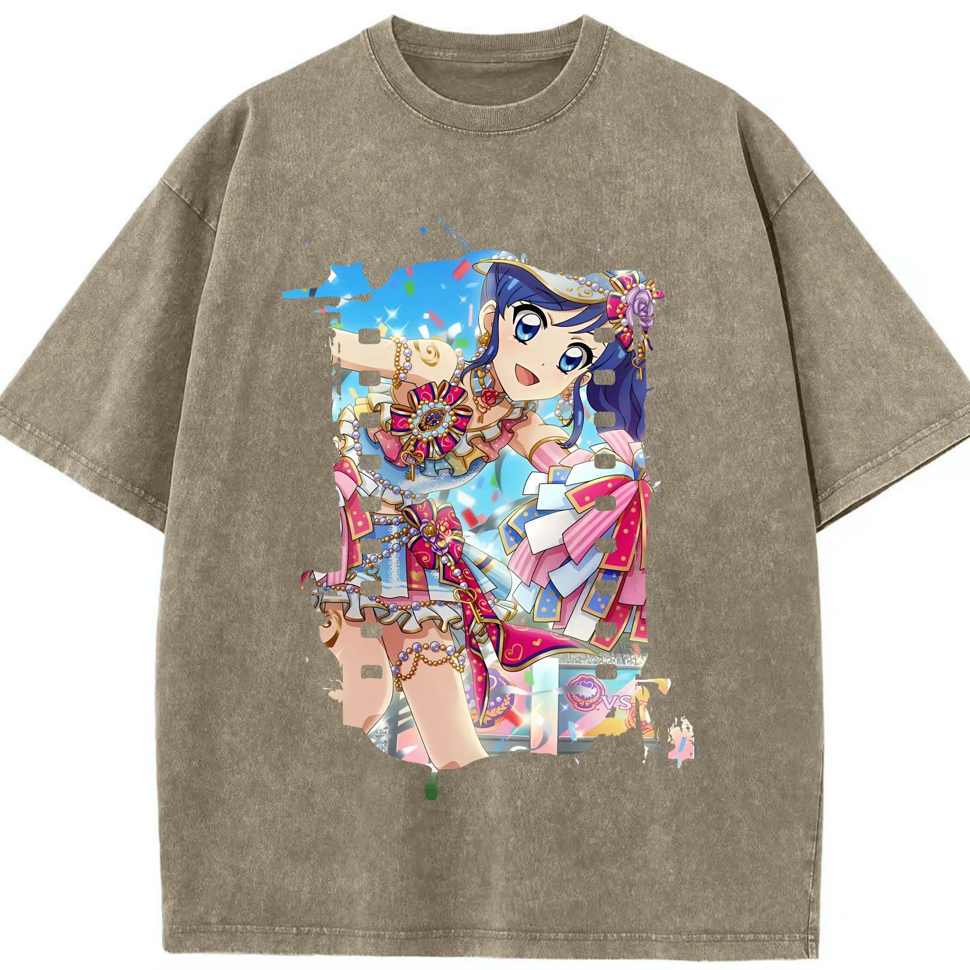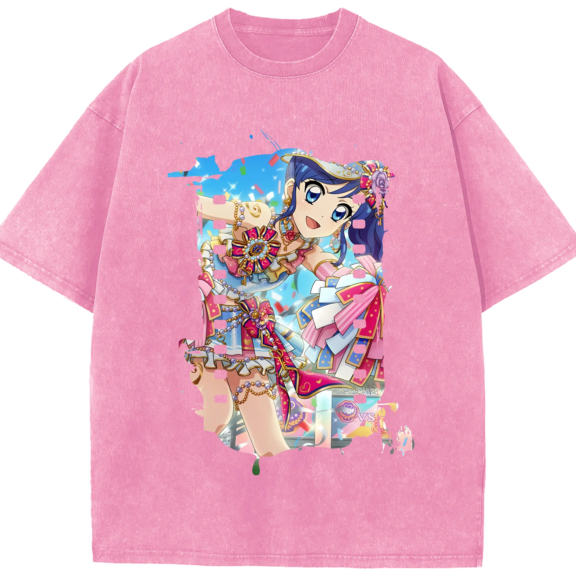 アイカツ グッズ 霧矢 あおい - 綿100% ヴィンテージ風 半袖Tシャツ ・ 背面プリント ・ 柔らか肌触り ・ 通気性 快適 ・ スポーツ カジュアル 外出用
