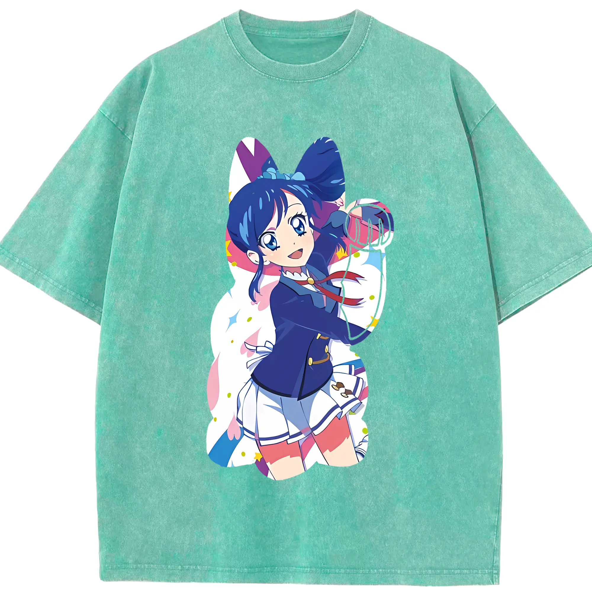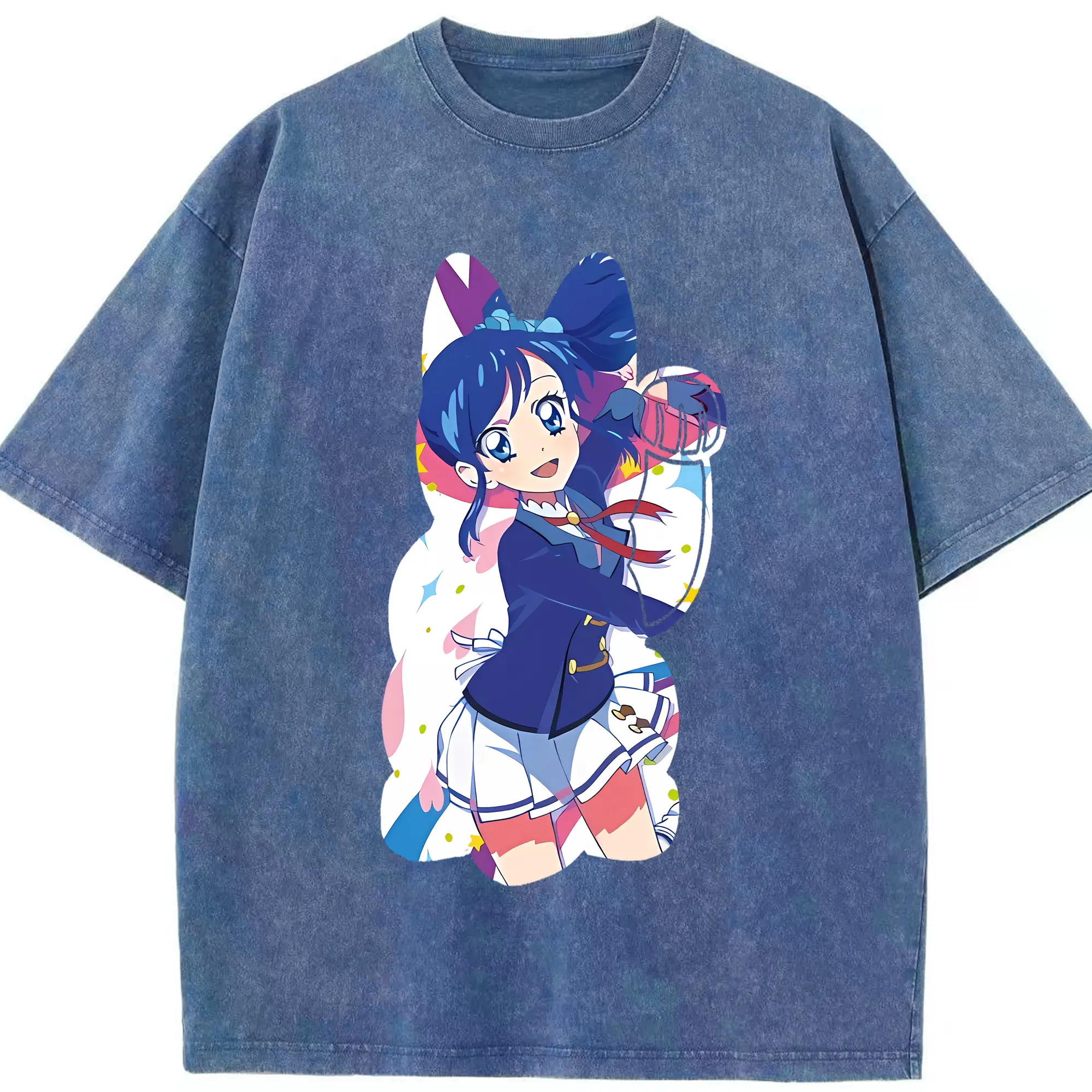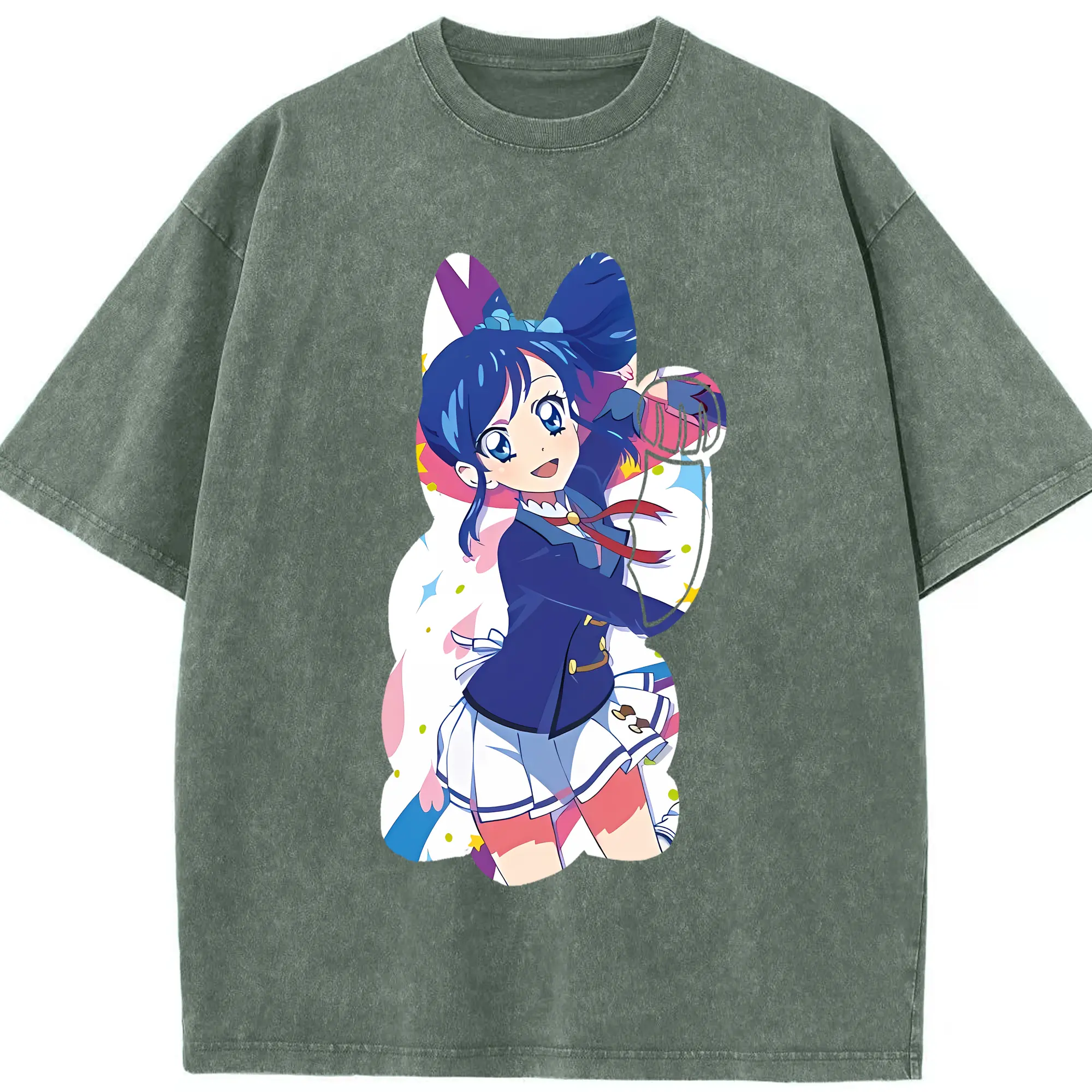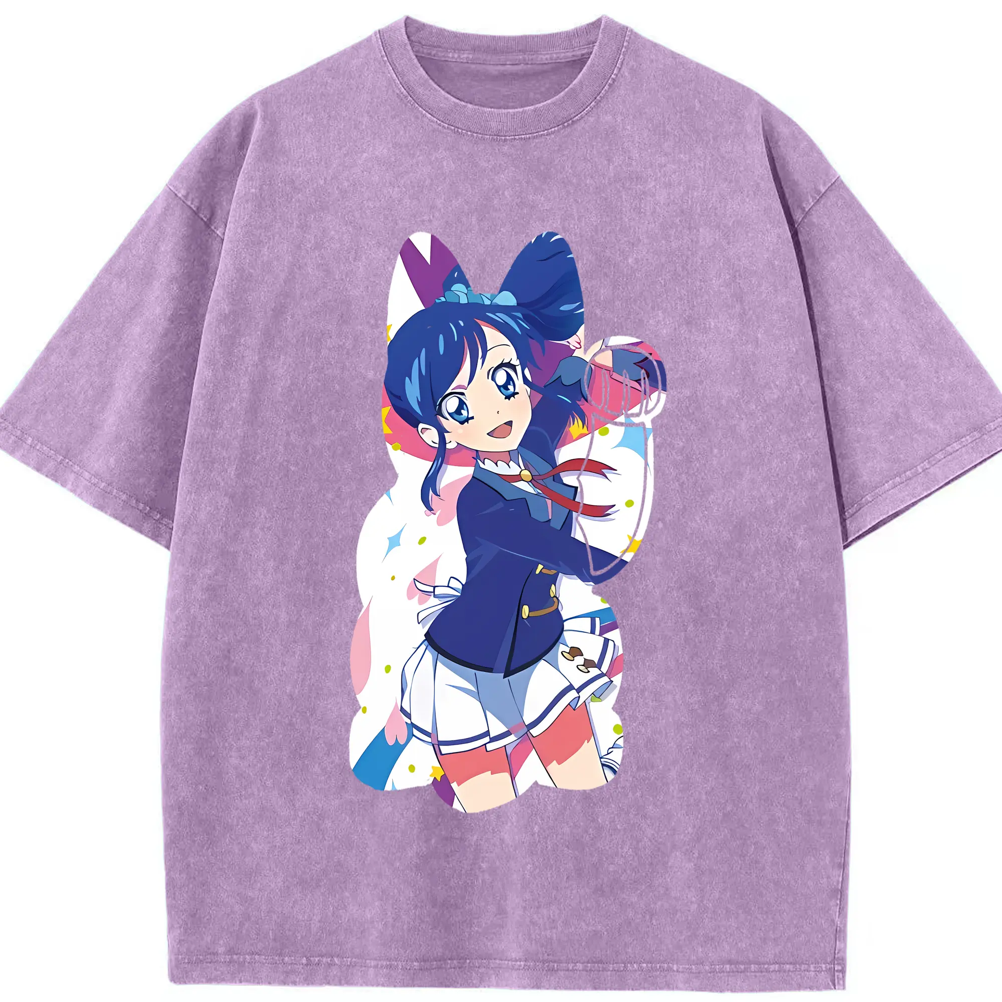 アイカツ グッズ 霧矢 あおい - 綿100% ヴィンテージ風 半袖Tシャツ ・ 背面プリント ・ 柔らか肌触り ・ 通気性 快適 ・ スポーツ カジュアル 外出用
