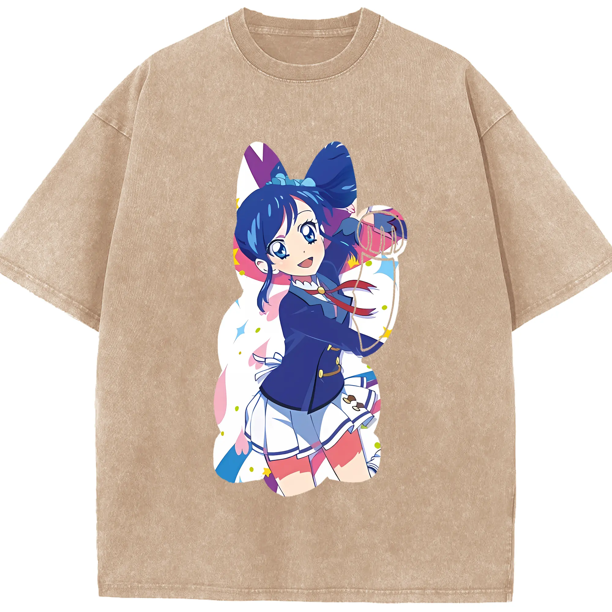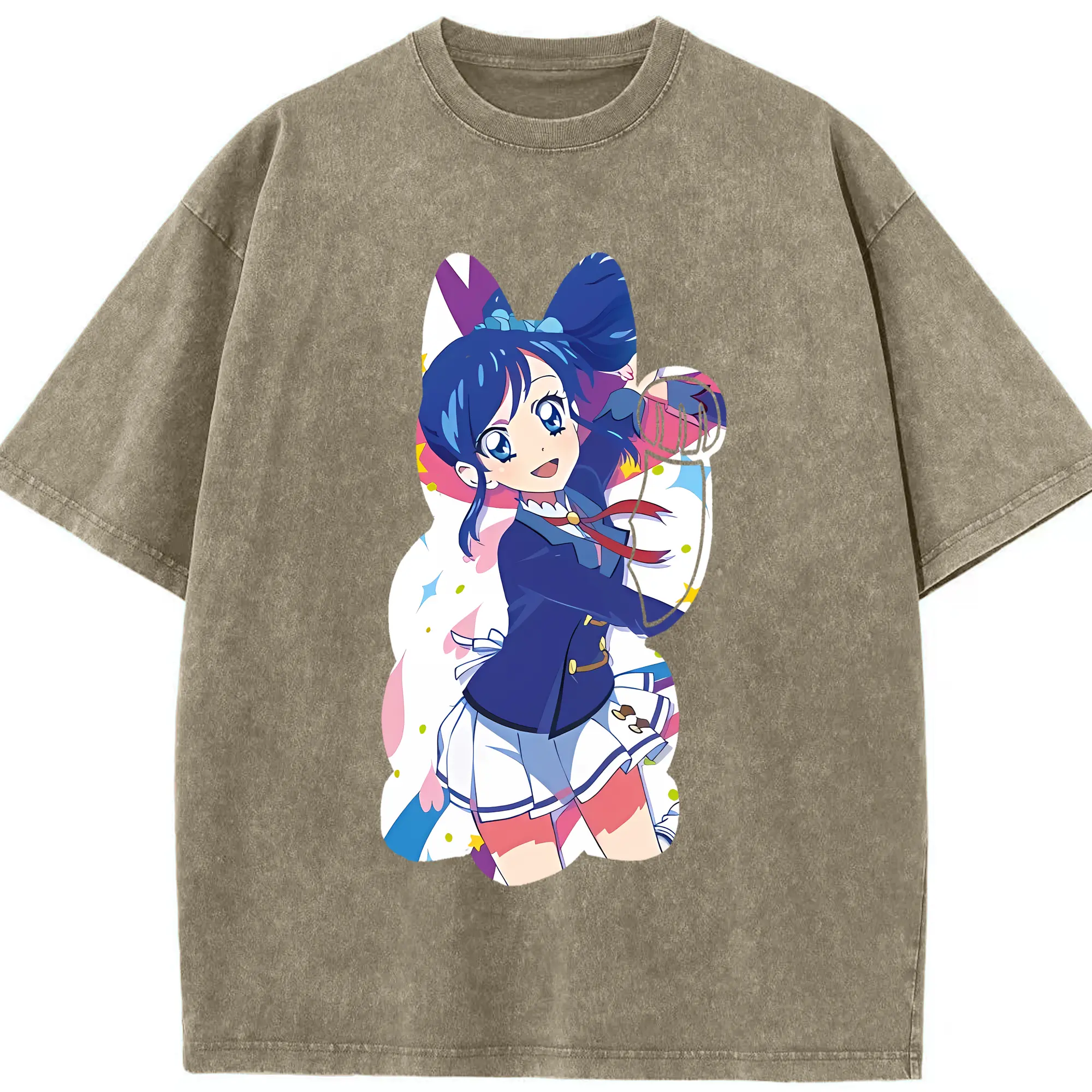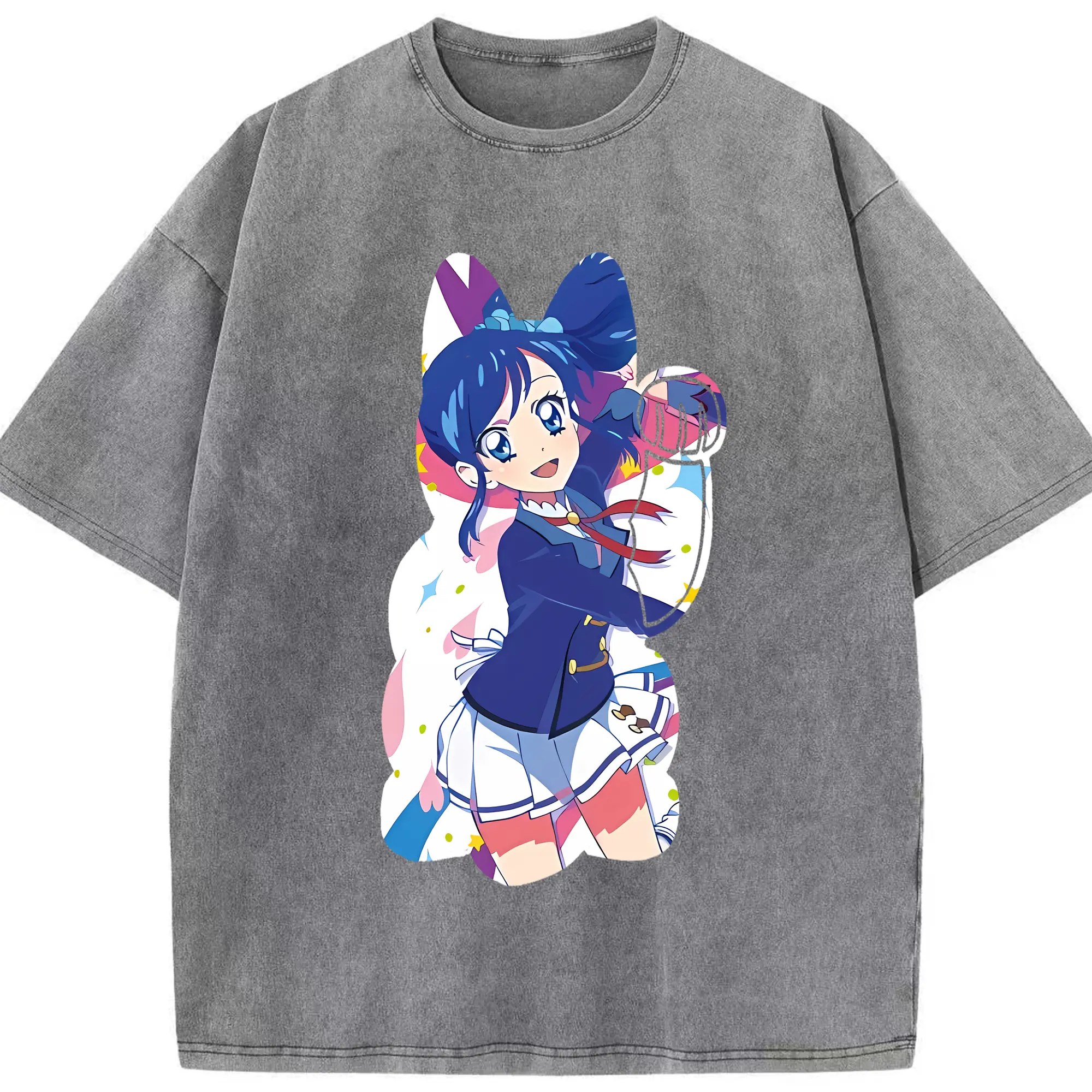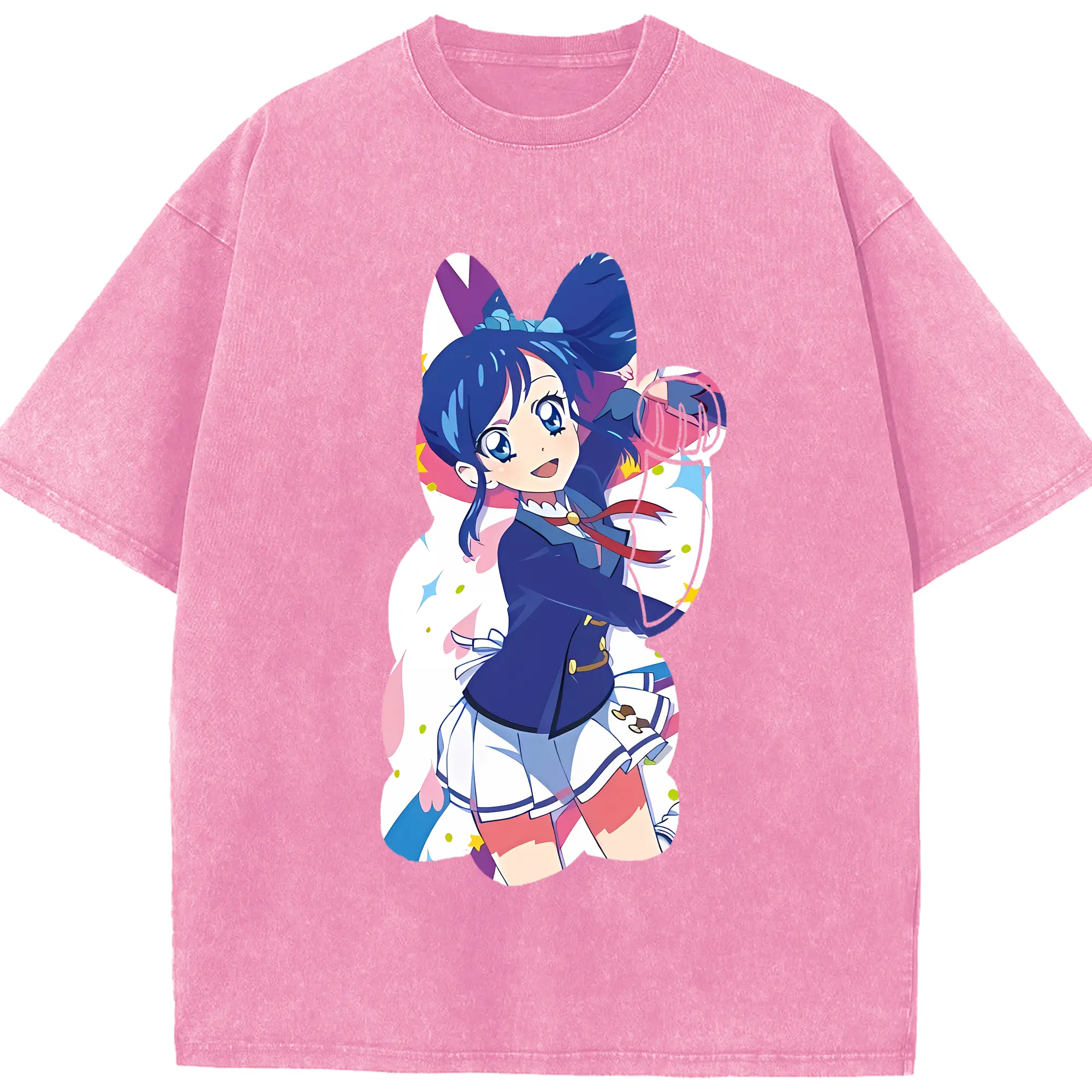 アイカツ グッズ 霧矢 あおい - 綿100% ヴィンテージ風 半袖Tシャツ ・ 背面プリント ・ 柔らか肌触り ・ 通気性 快適 ・ スポーツ カジュアル 外出用