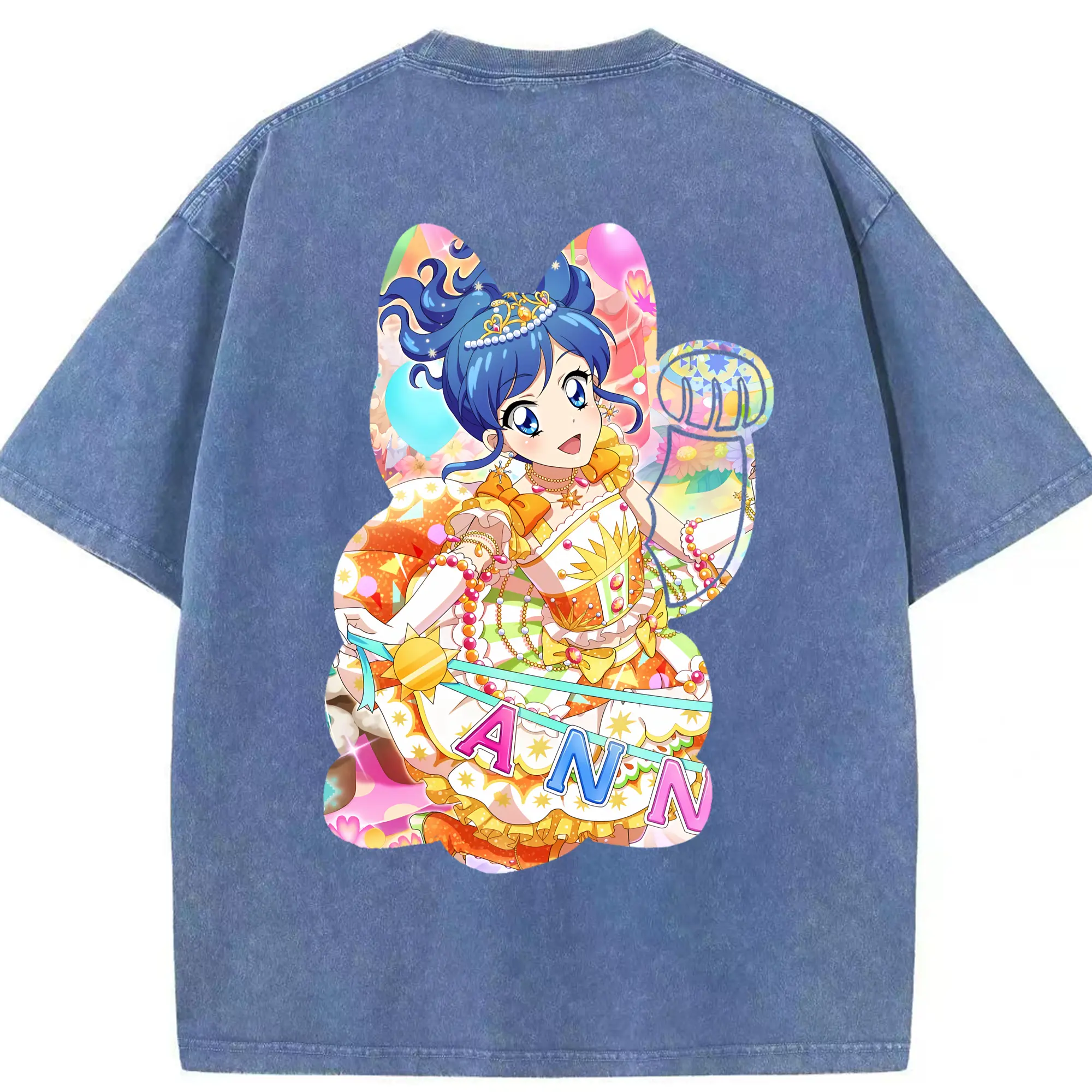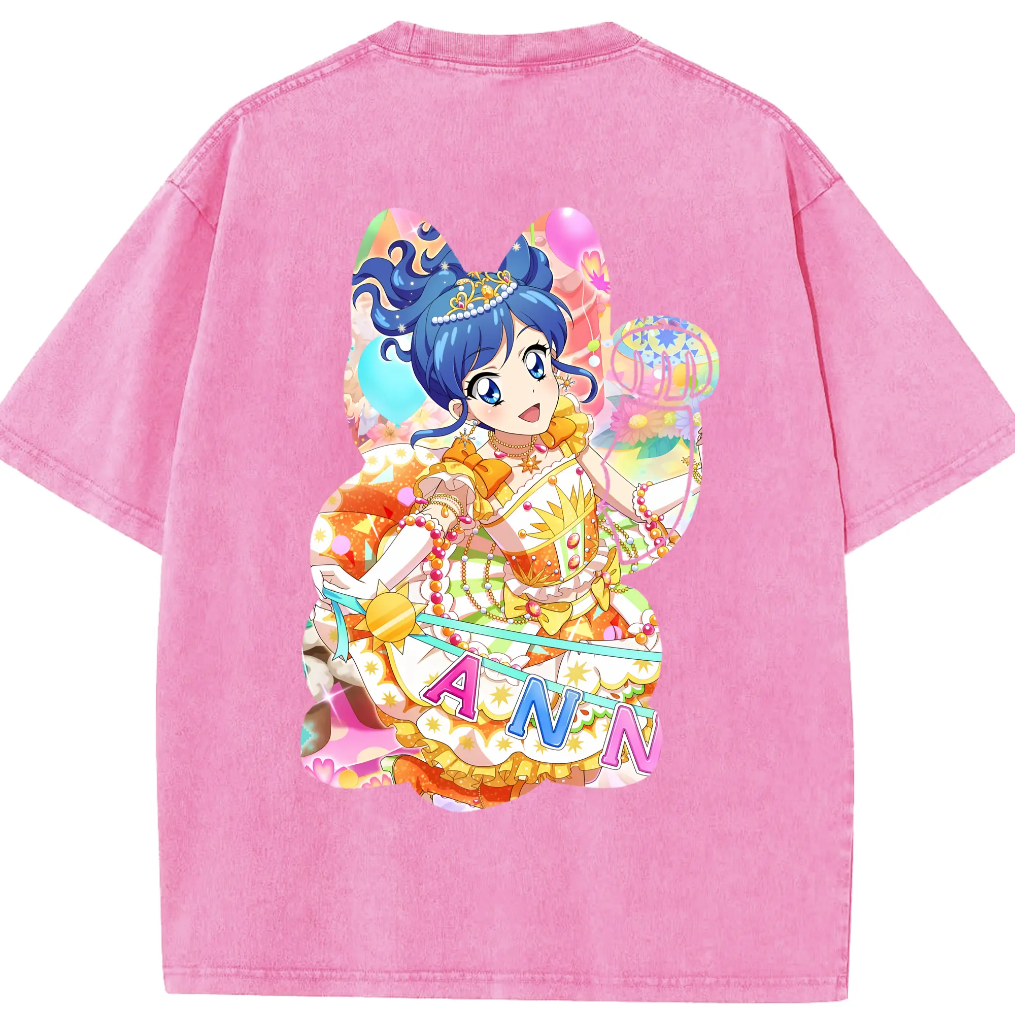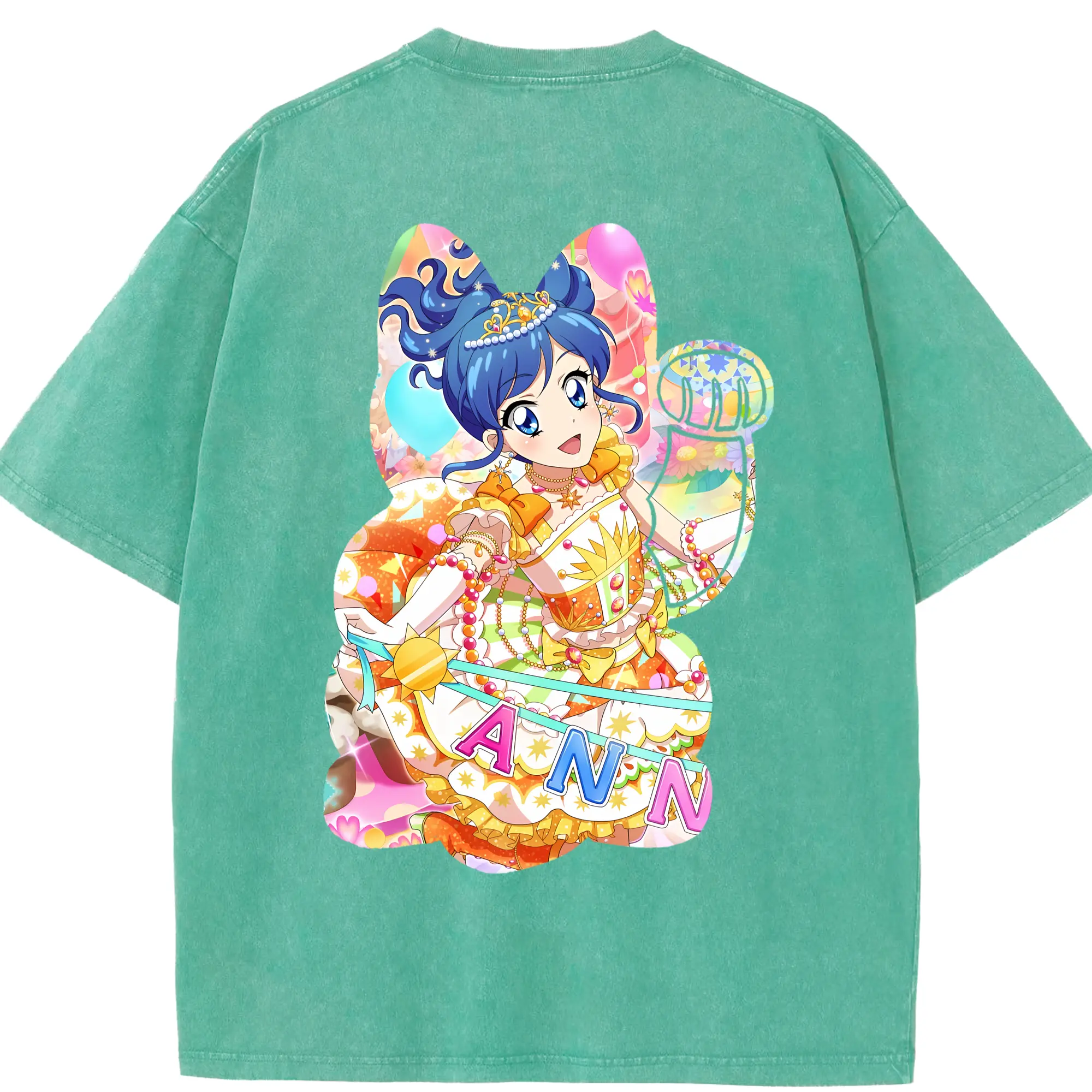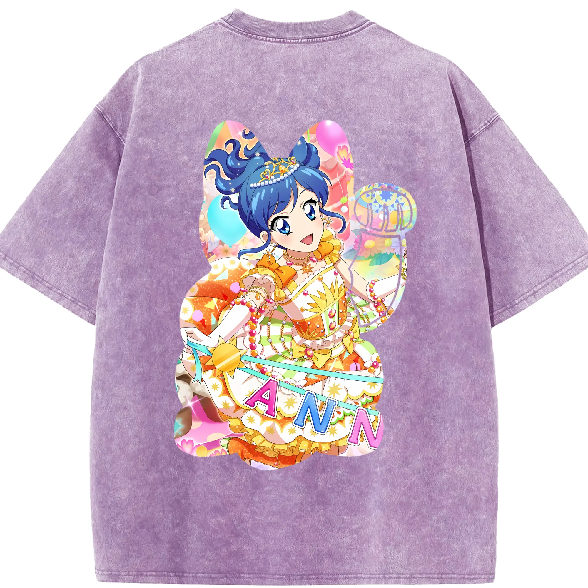 アイカツ グッズ 霧矢 あおい - 綿100% ヴィンテージ風 半袖Tシャツ ・ フロントプリント ・ 柔らか肌触り ・ 通気性 快適 ・ スポーツ カジュアル 外出用