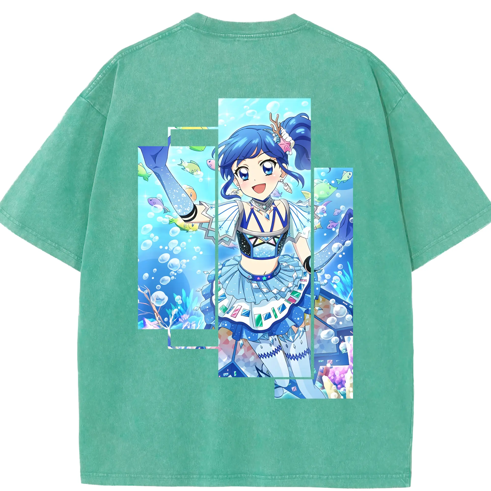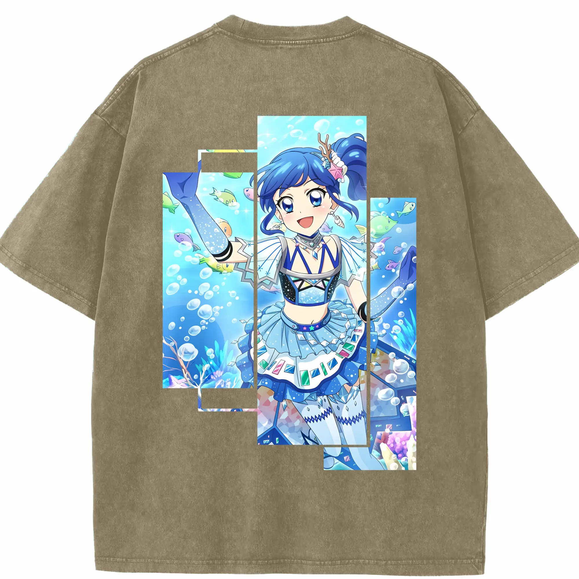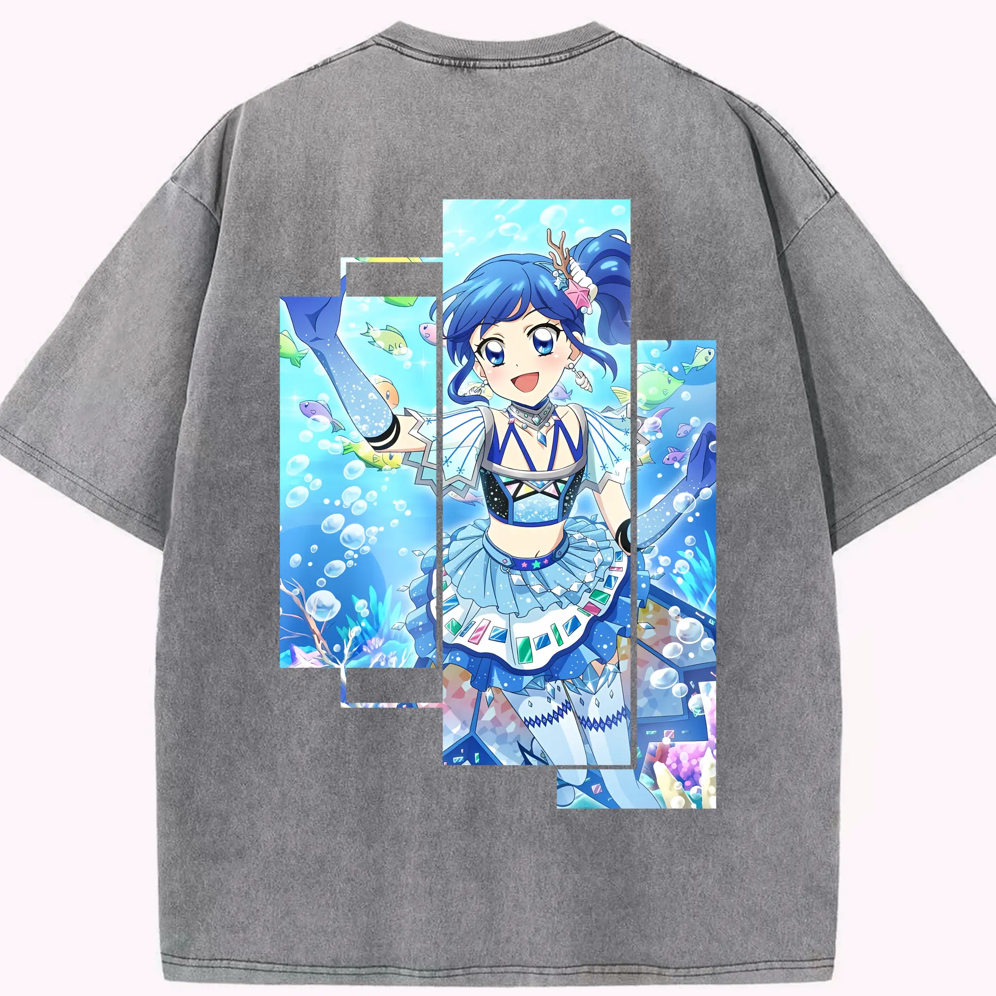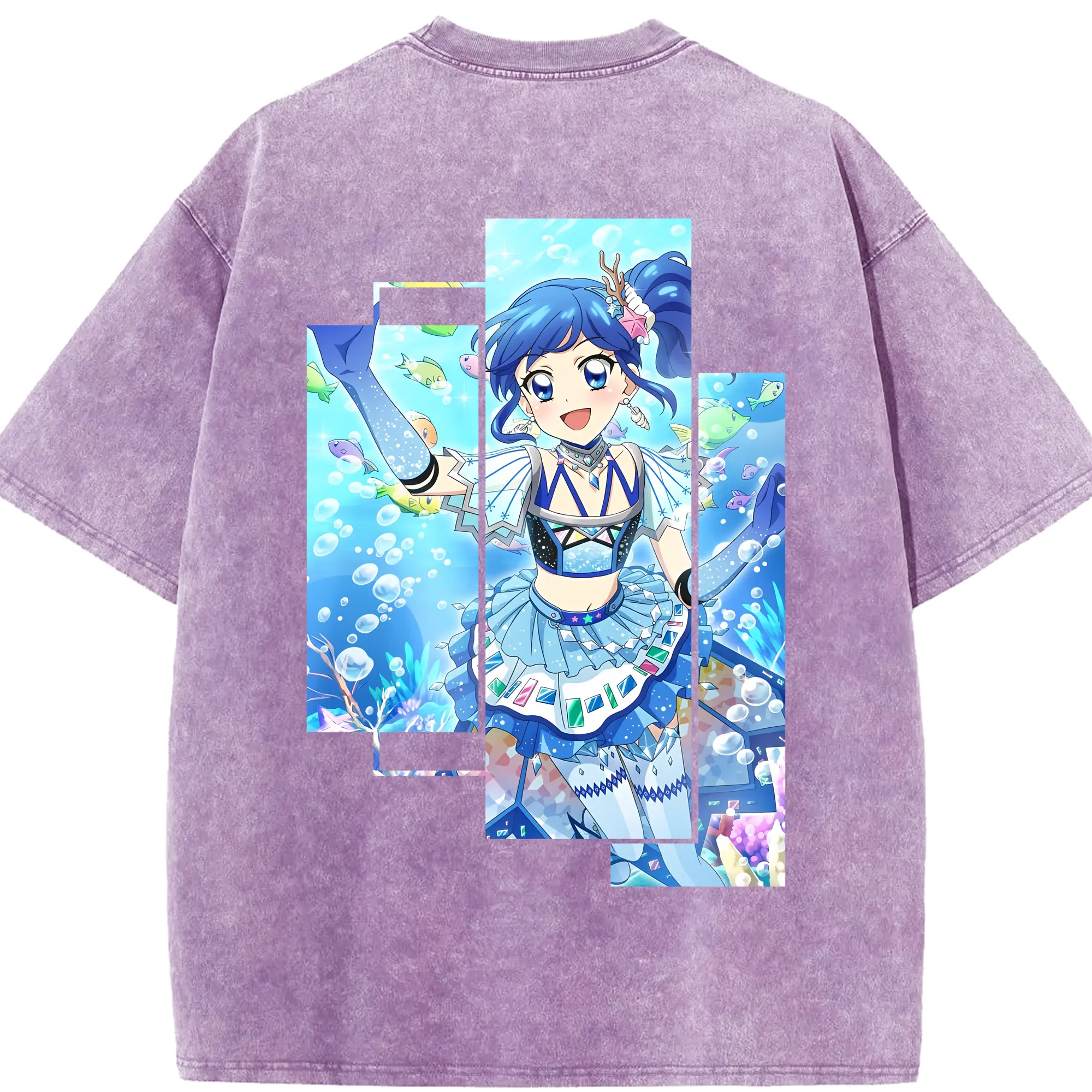 アイカツ グッズ 霧矢 あおい - 綿100% ヴィンテージ風 半袖Tシャツ ・ フロントプリント ・ 柔らか肌触り ・ 通気性 快適 ・ スポーツ カジュアル 外出用