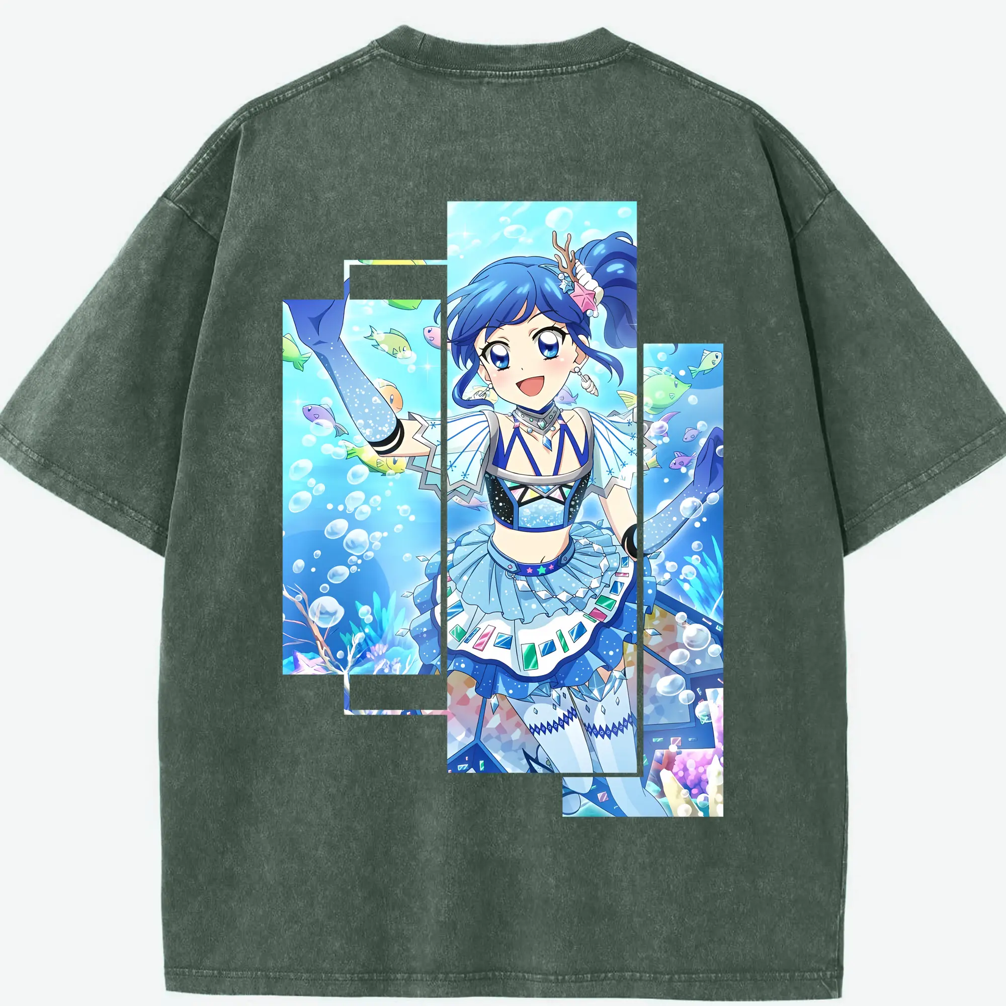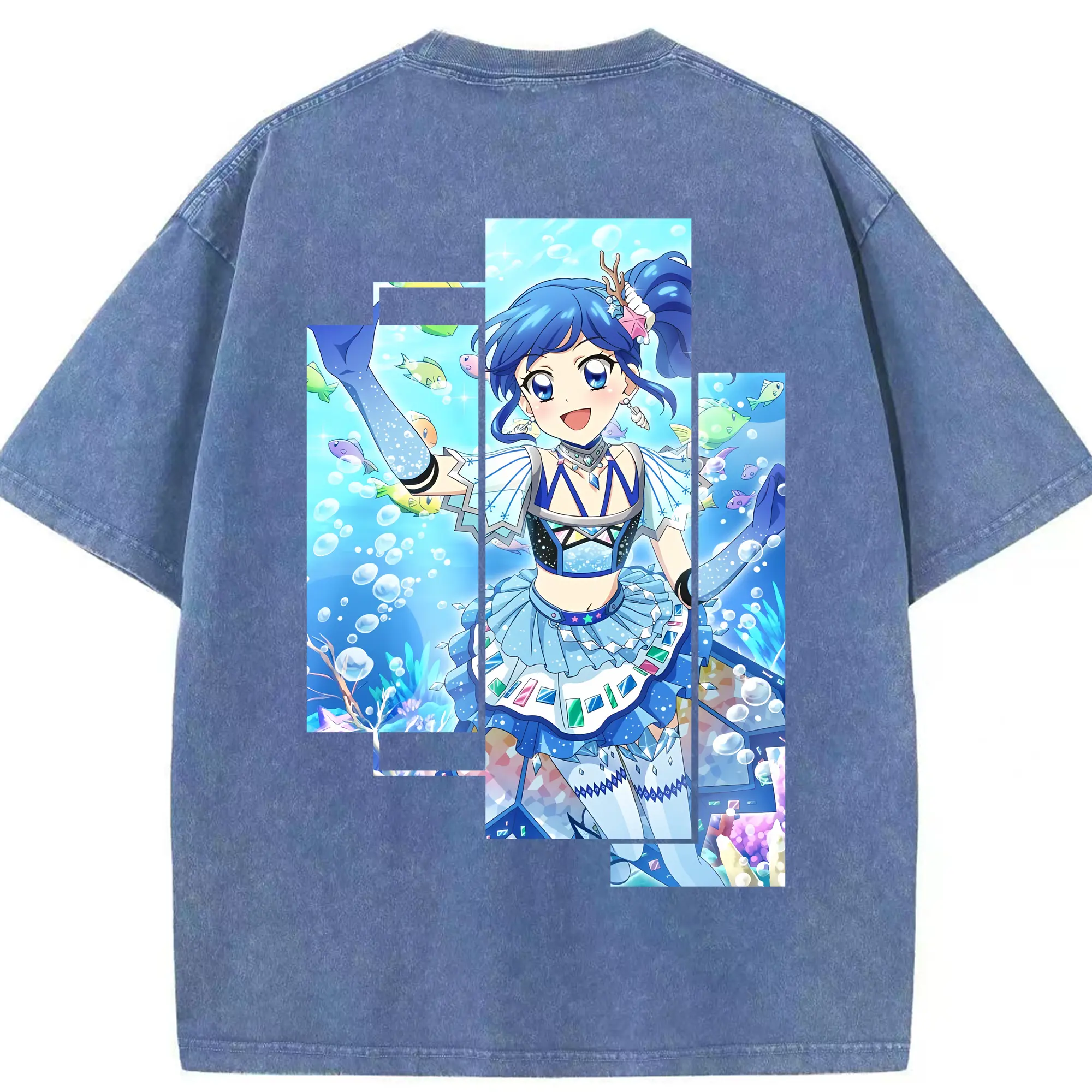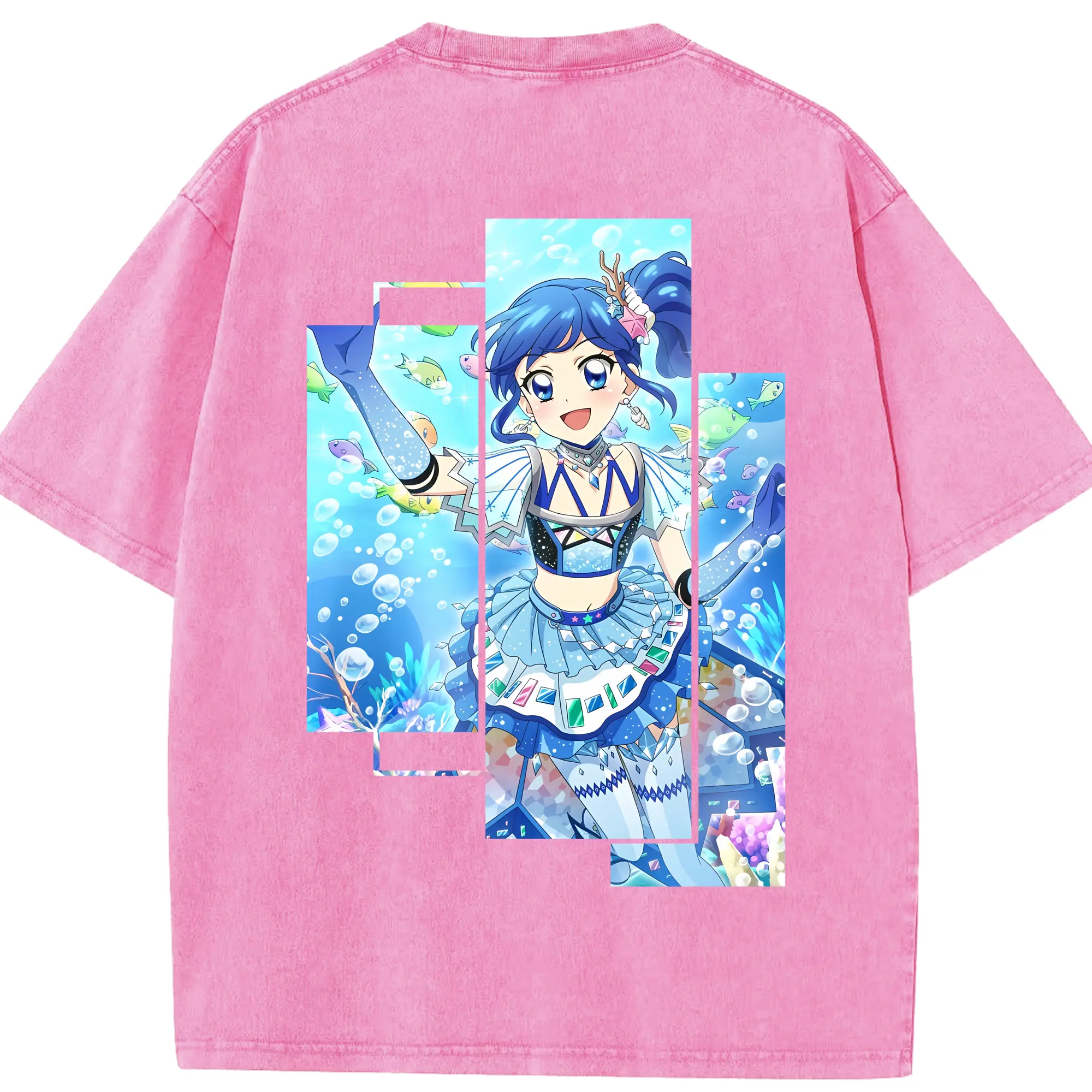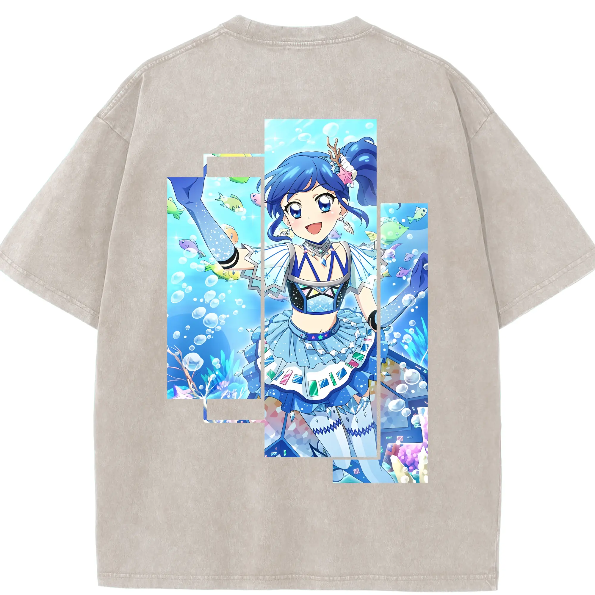アイカツ グッズ 霧矢 あおい - 綿100% ヴィンテージ風 半袖Tシャツ ・ フロントプリント ・ 柔らか肌触り ・ 通気性 快適 ・ スポーツ カジュアル 外出用