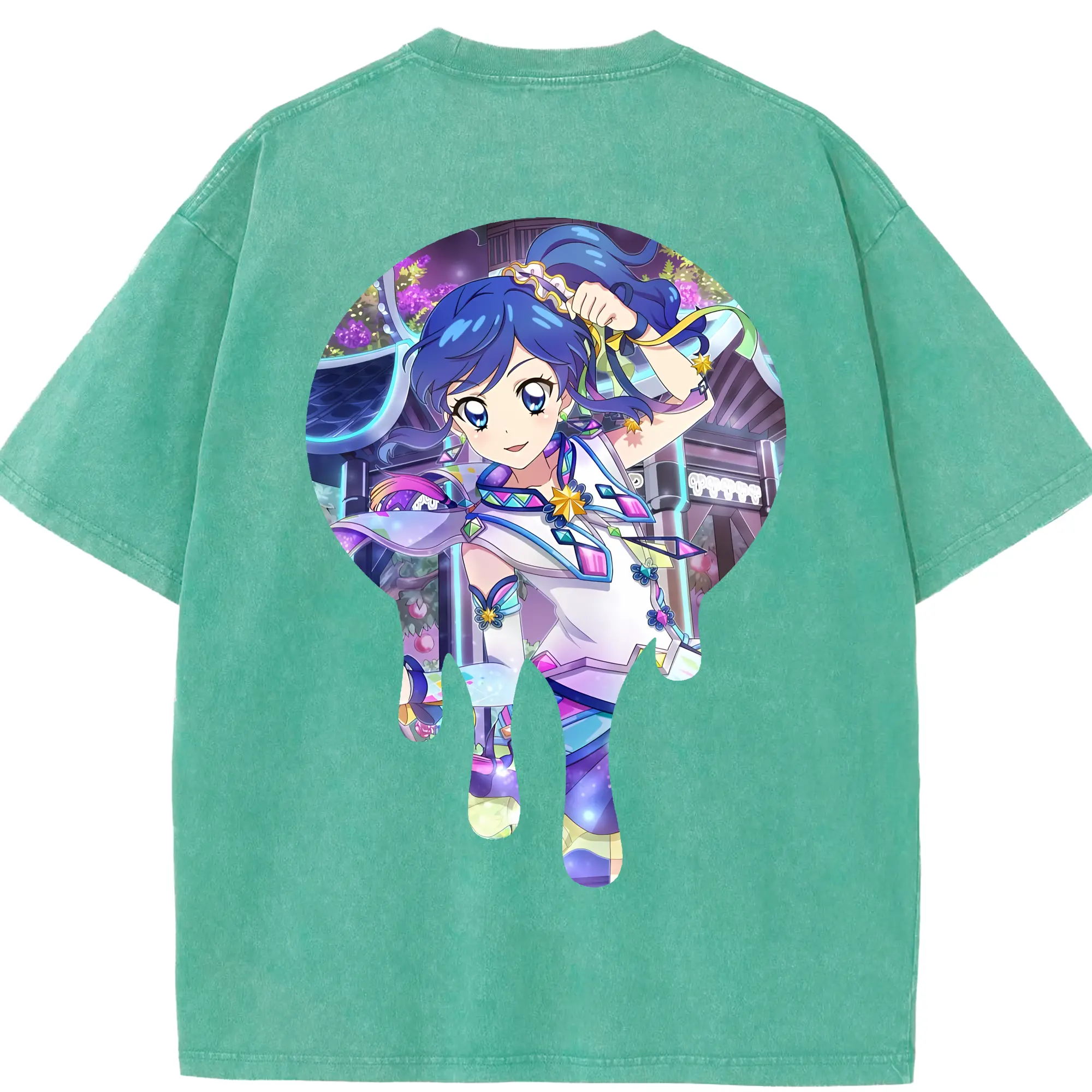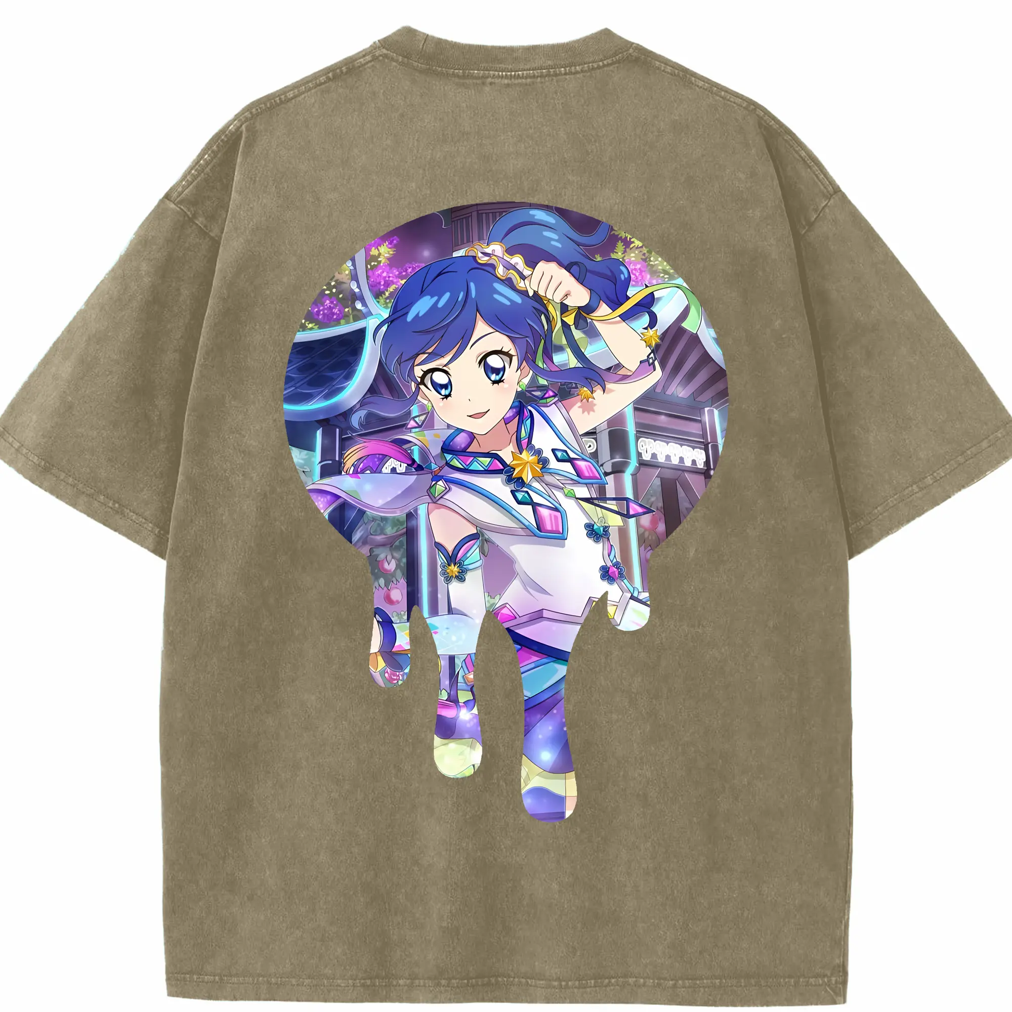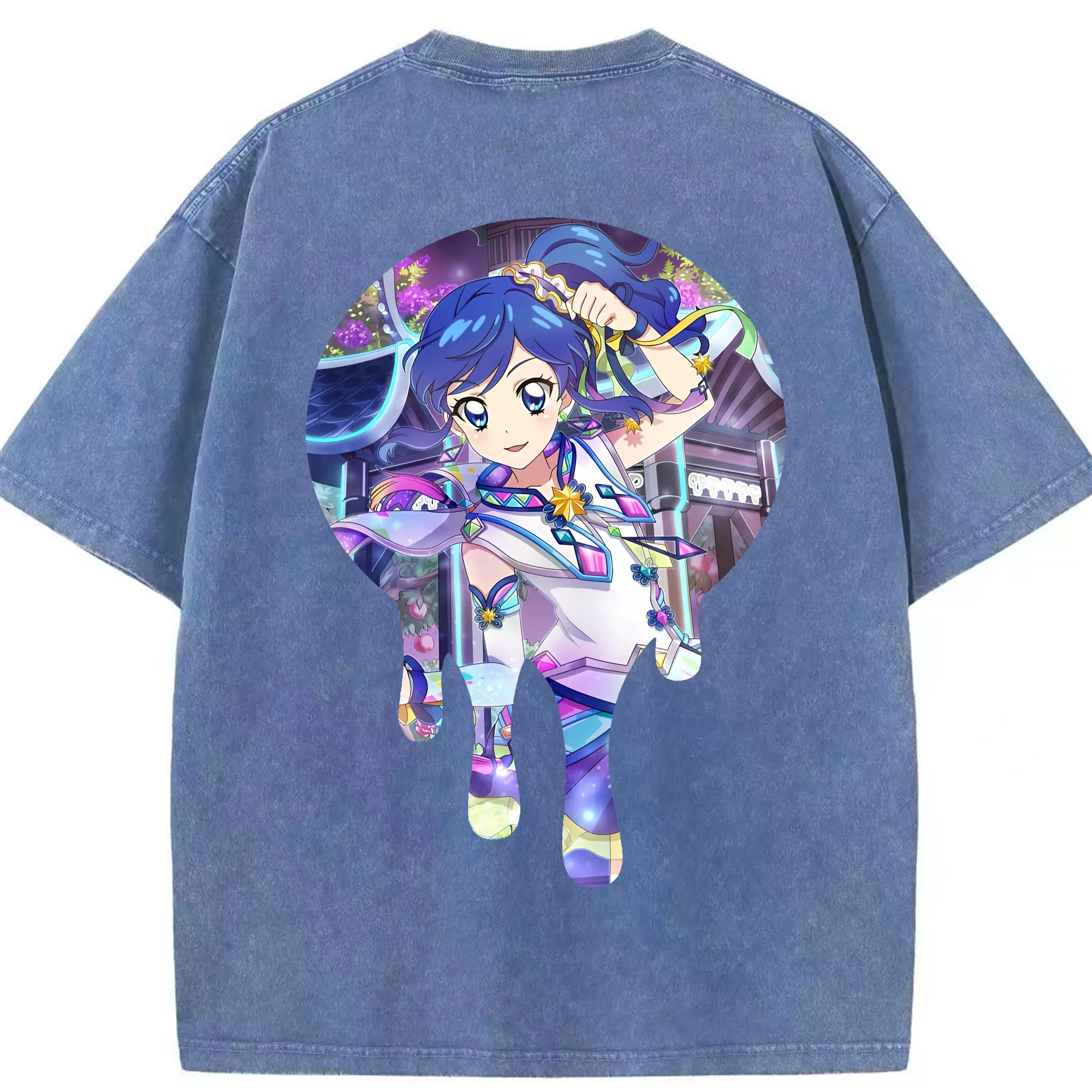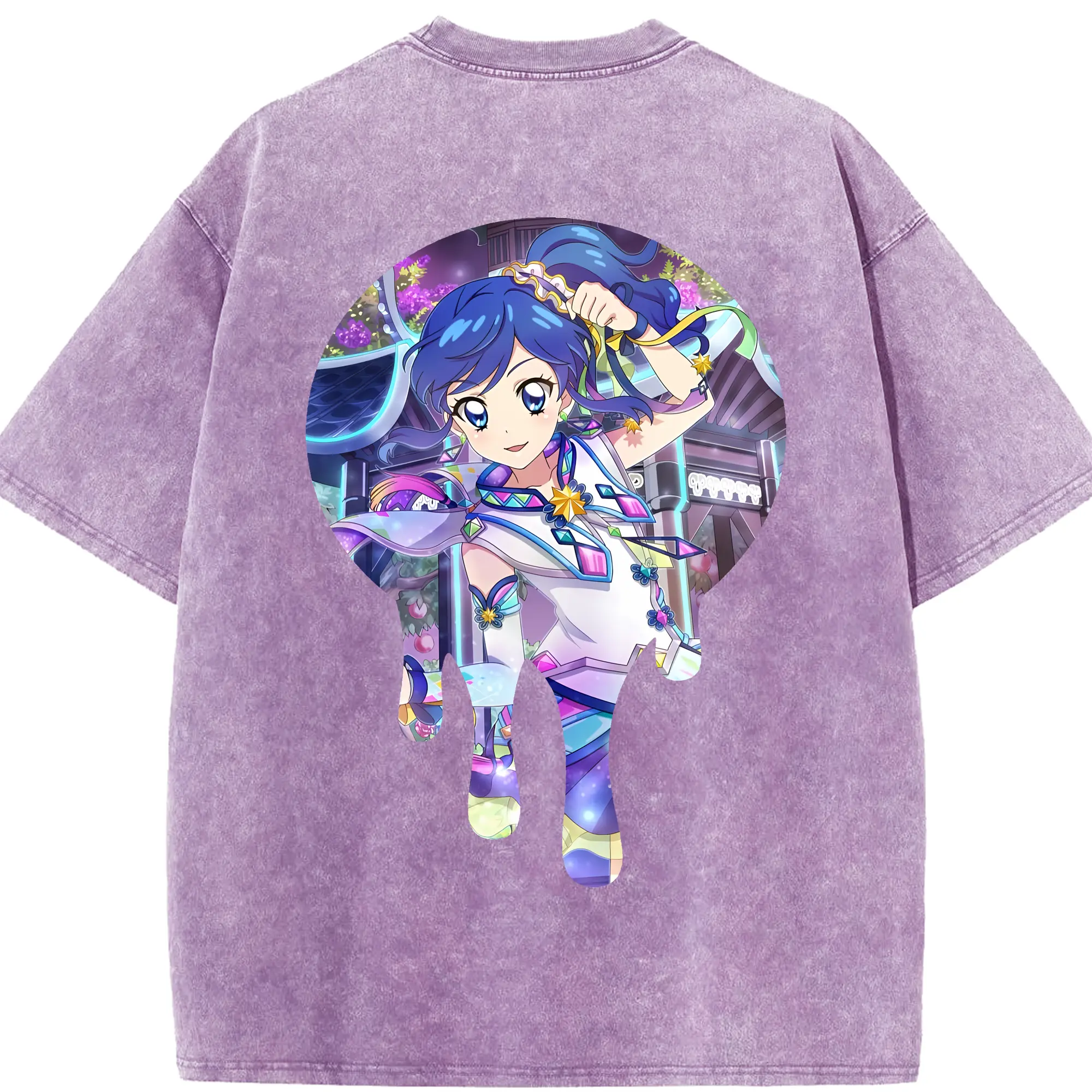 アイカツ グッズ 霧矢 あおい - 綿100% ヴィンテージ風 半袖Tシャツ ・ フロントプリント ・ 柔らか肌触り ・ 通気性 快適 ・ スポーツ カジュアル 外出用