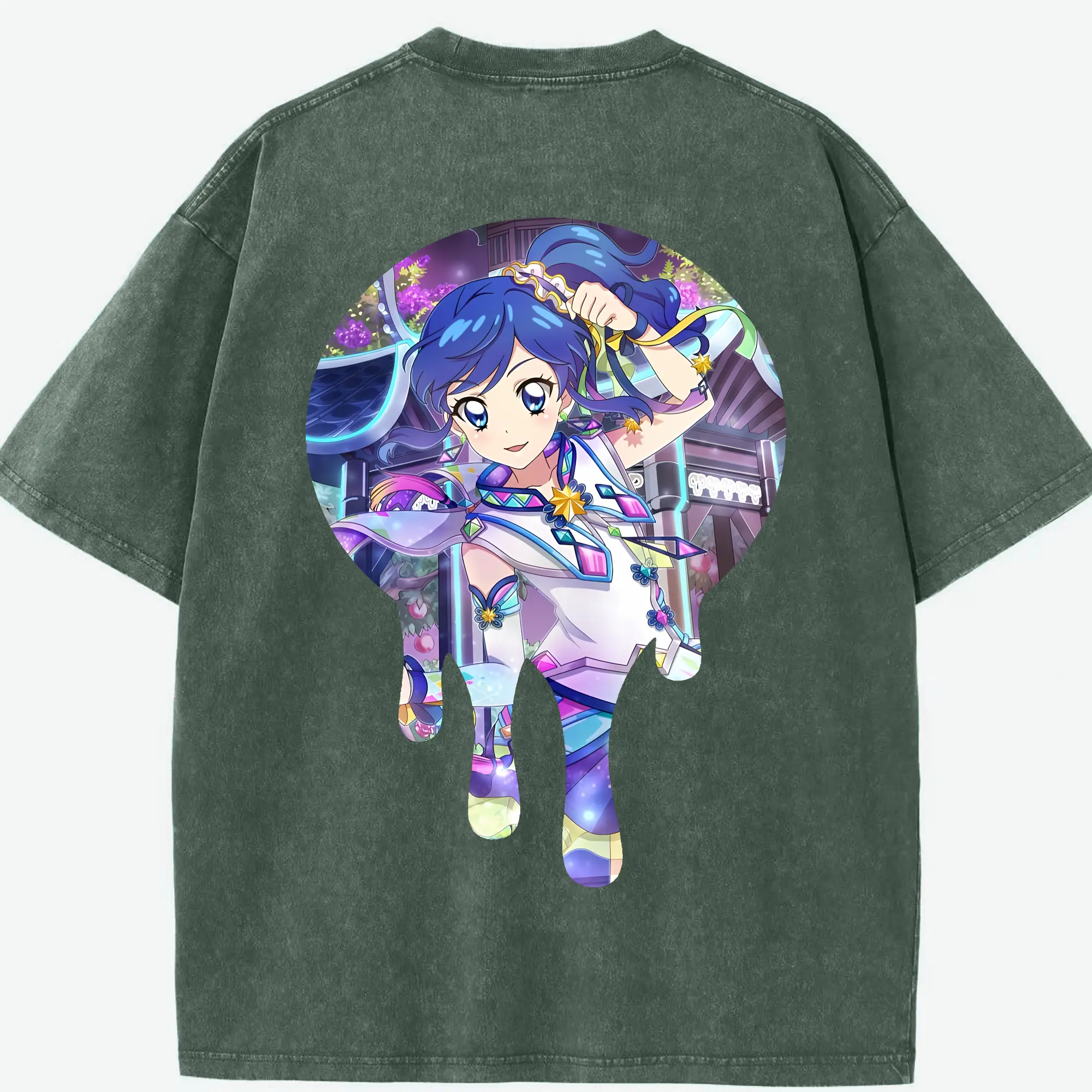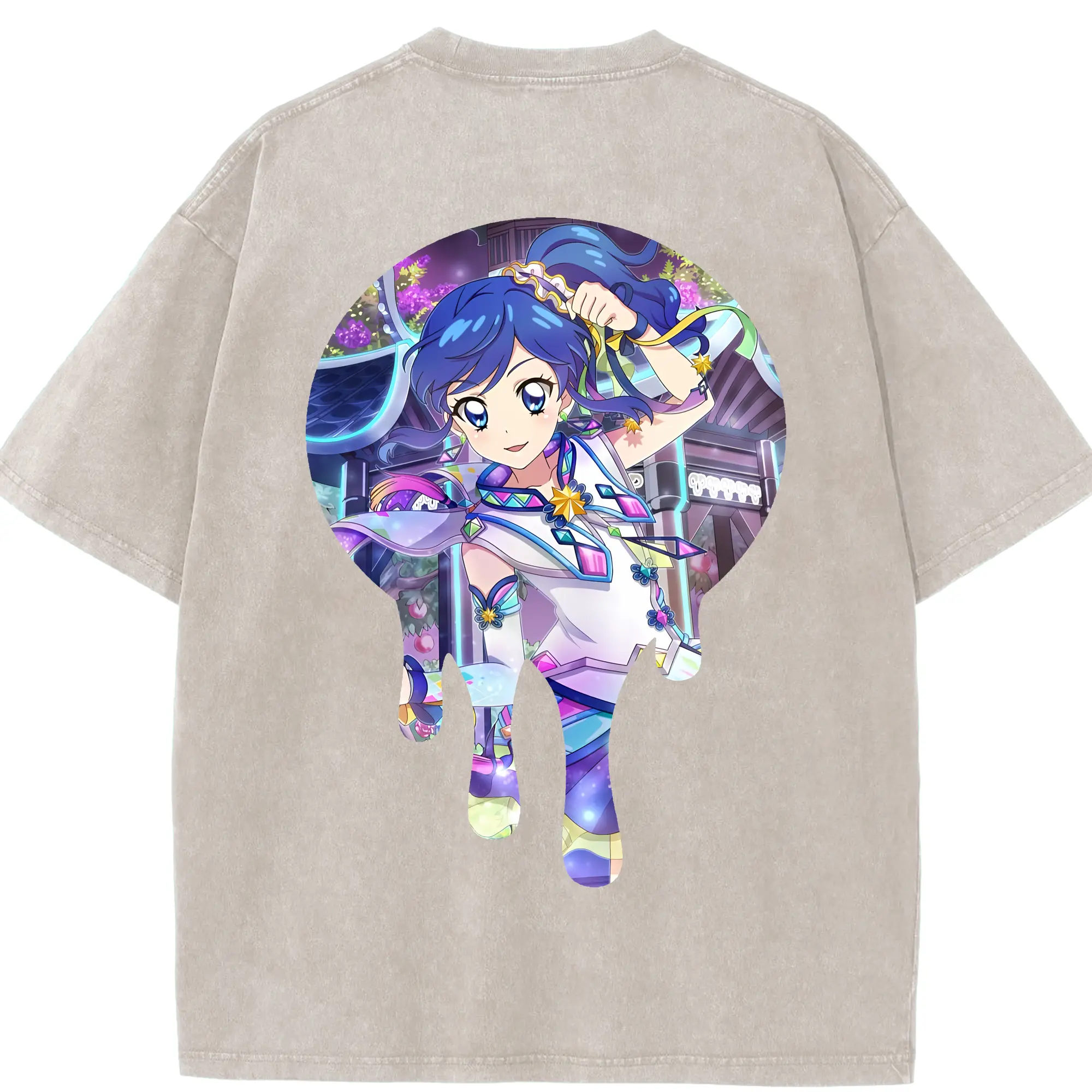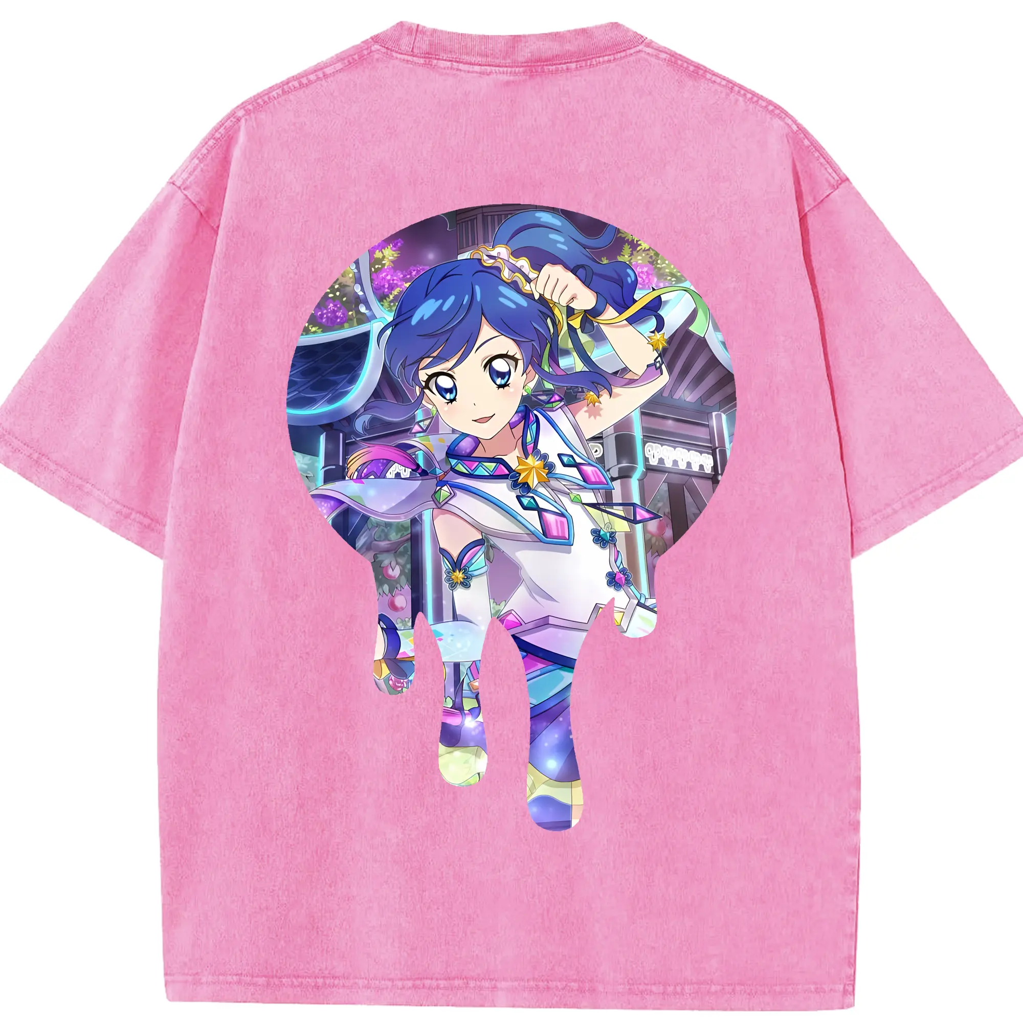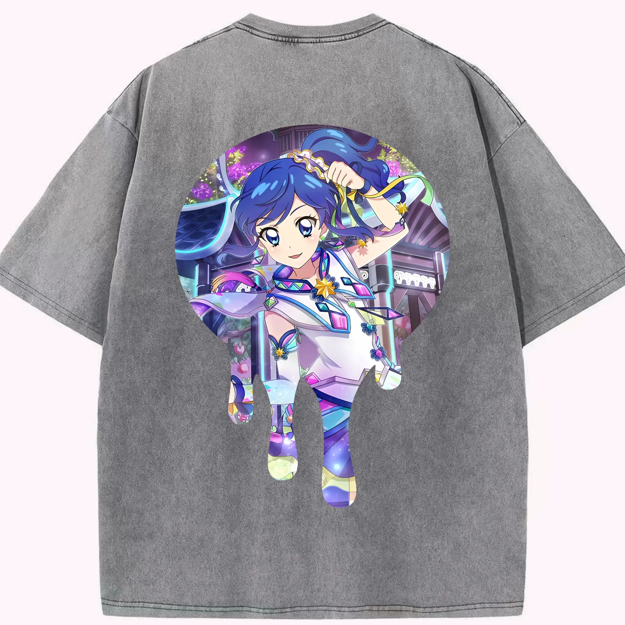 アイカツ グッズ 霧矢 あおい - 綿100% ヴィンテージ風 半袖Tシャツ ・ フロントプリント ・ 柔らか肌触り ・ 通気性 快適 ・ スポーツ カジュアル 外出用
