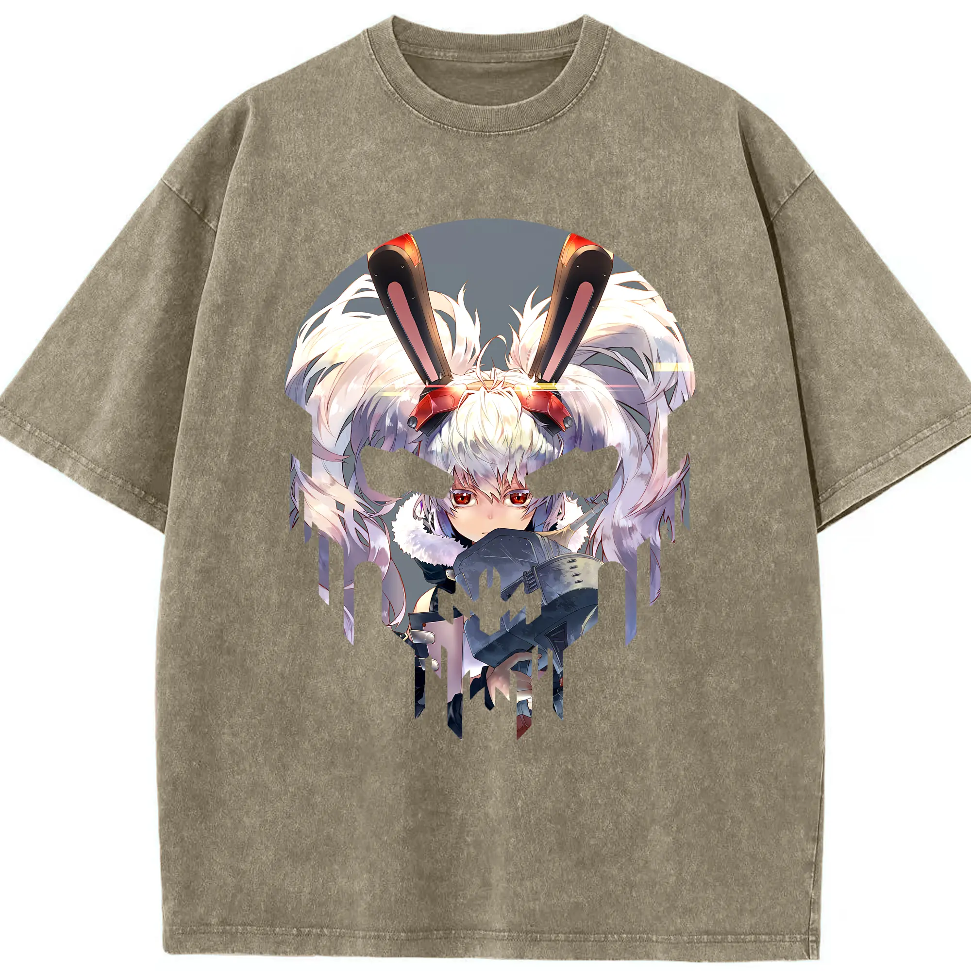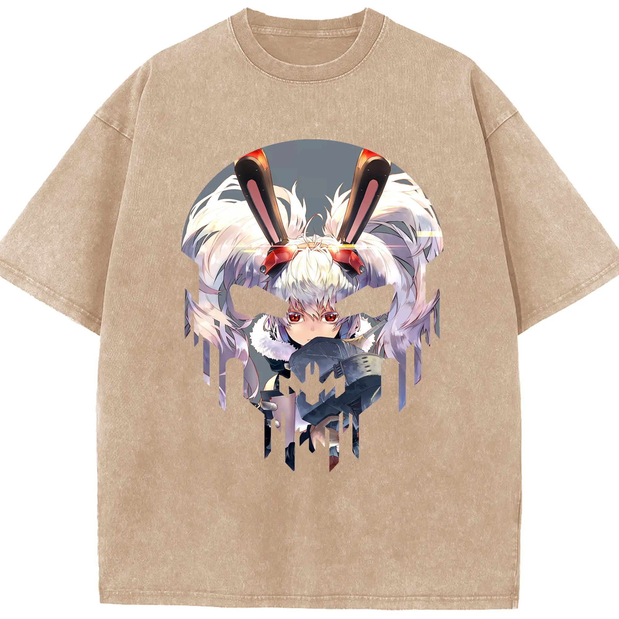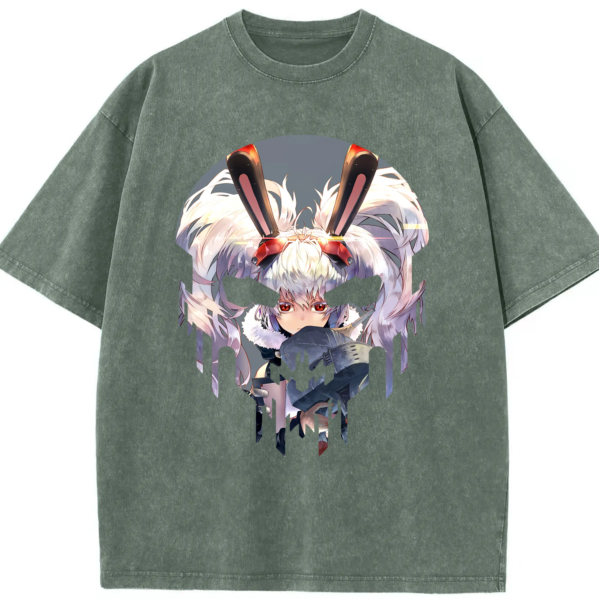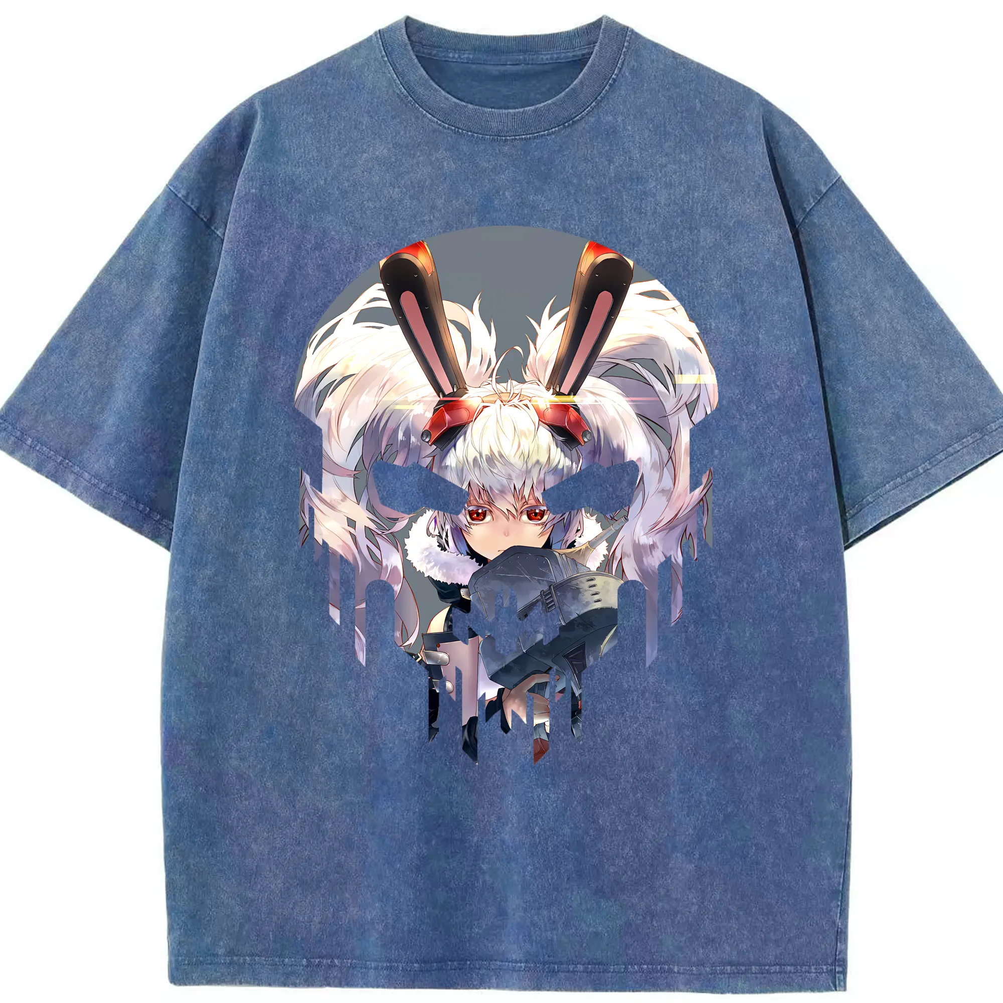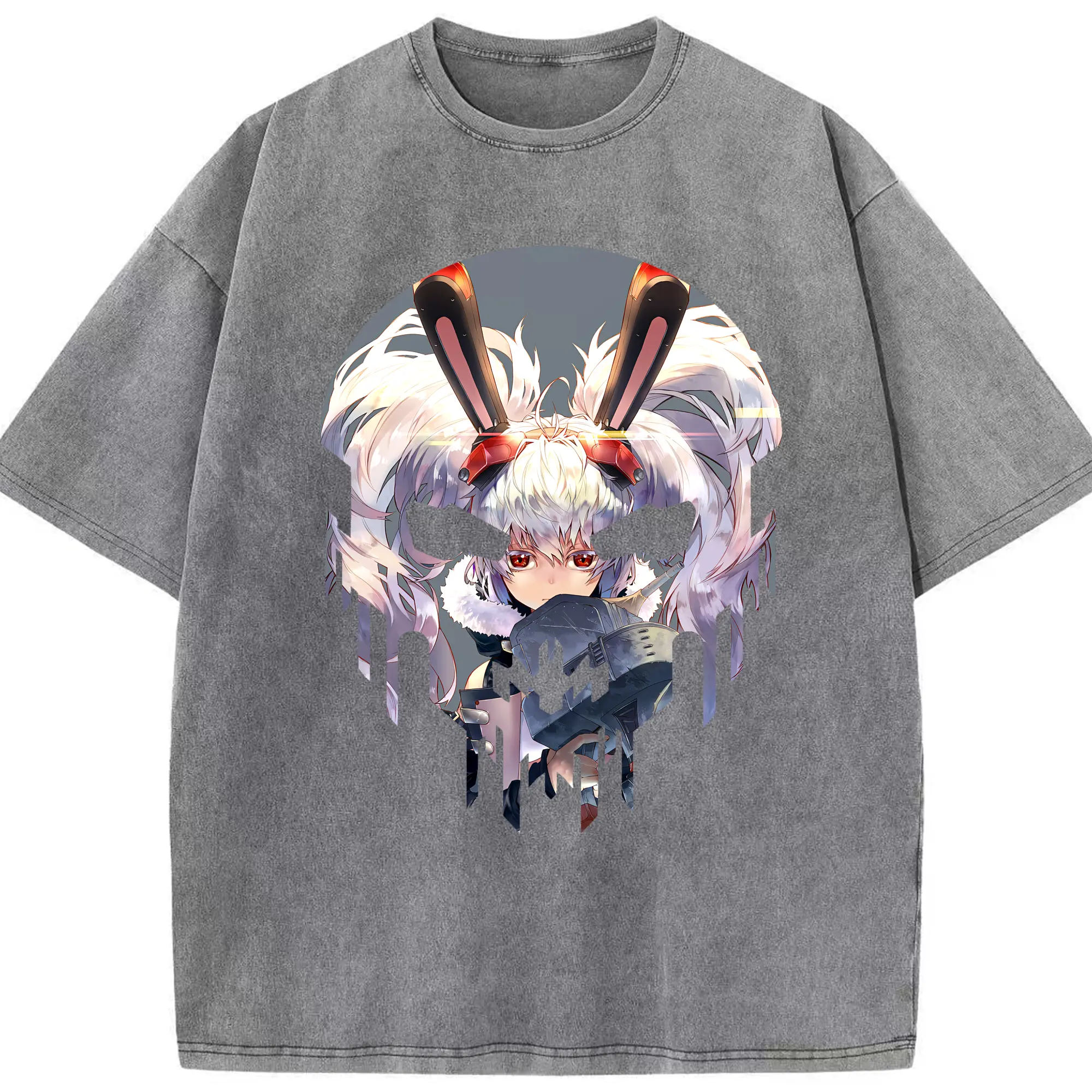 アズールレーン グッズ,ラフィー - 綿100% ヴィンテージ風 半袖Tシャツ ・ 背面プリント ・ 柔らか肌触り ・ 通気性 快適 ・ スポーツ カジュアル 外出用
