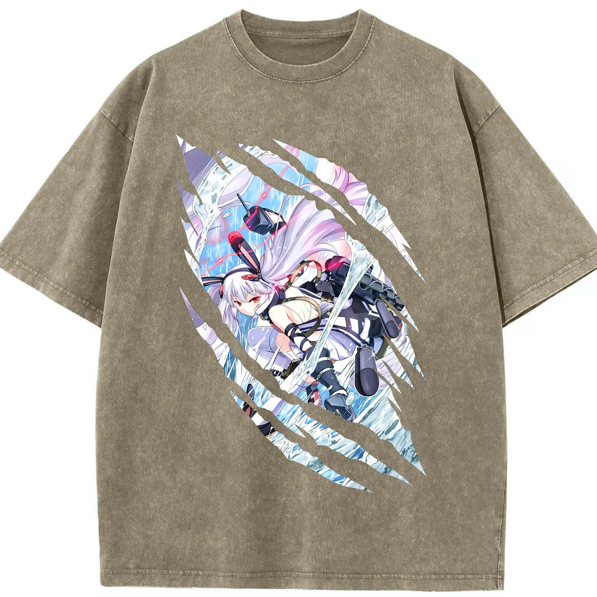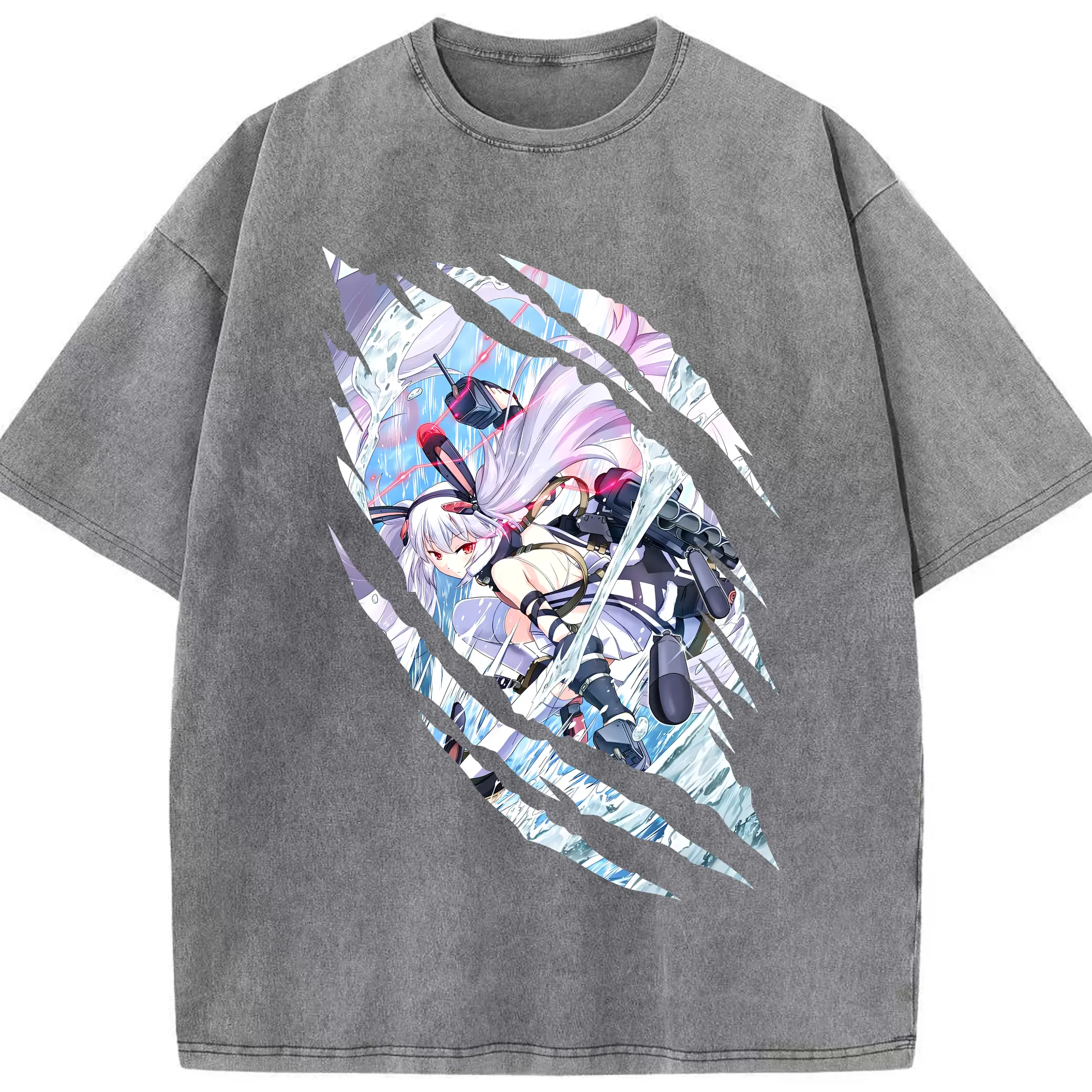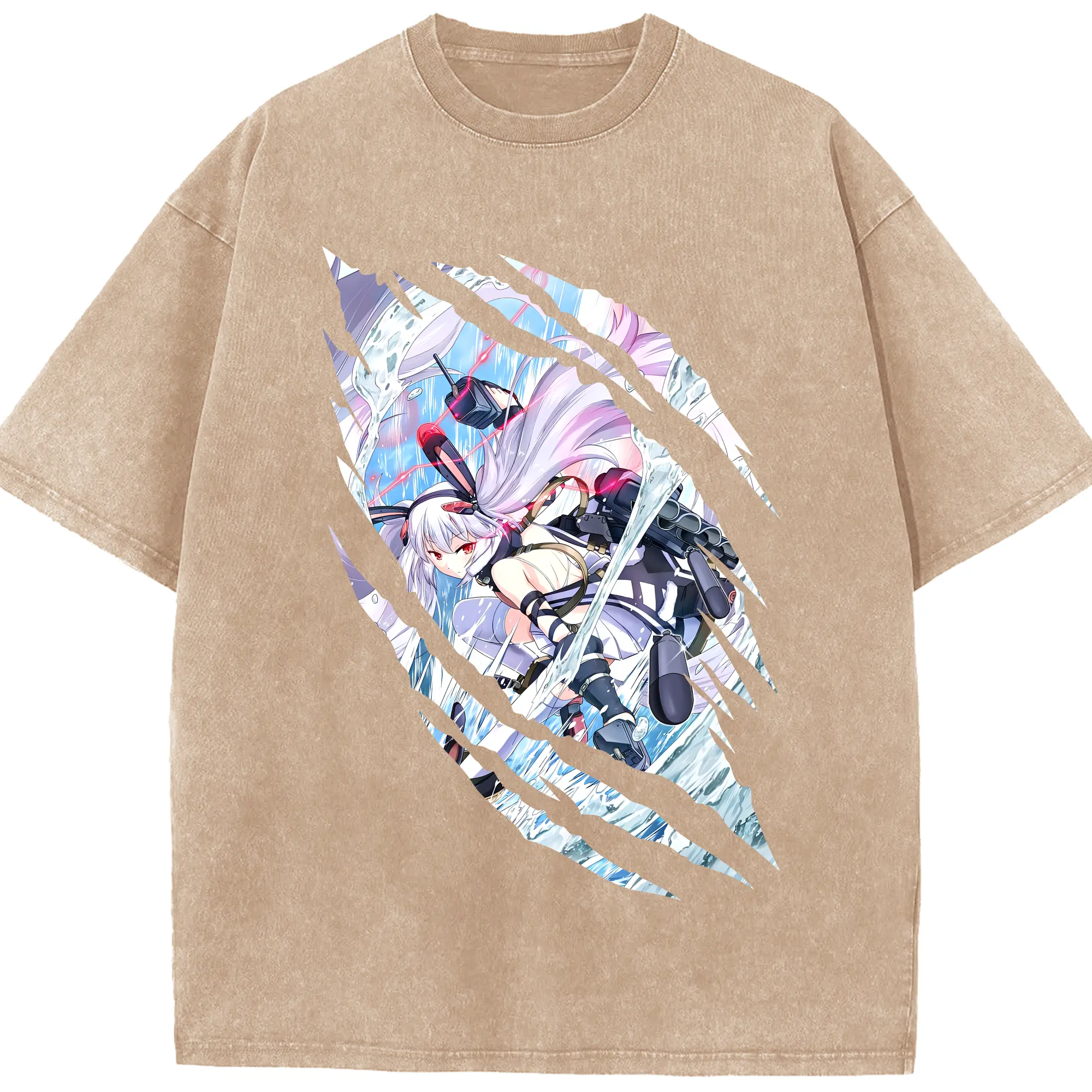 アズールレーン グッズ,ラフィー - 綿100% ヴィンテージ風 半袖Tシャツ ・ 背面プリント ・ 柔らか肌触り ・ 通気性 快適 ・ スポーツ カジュアル 外出用