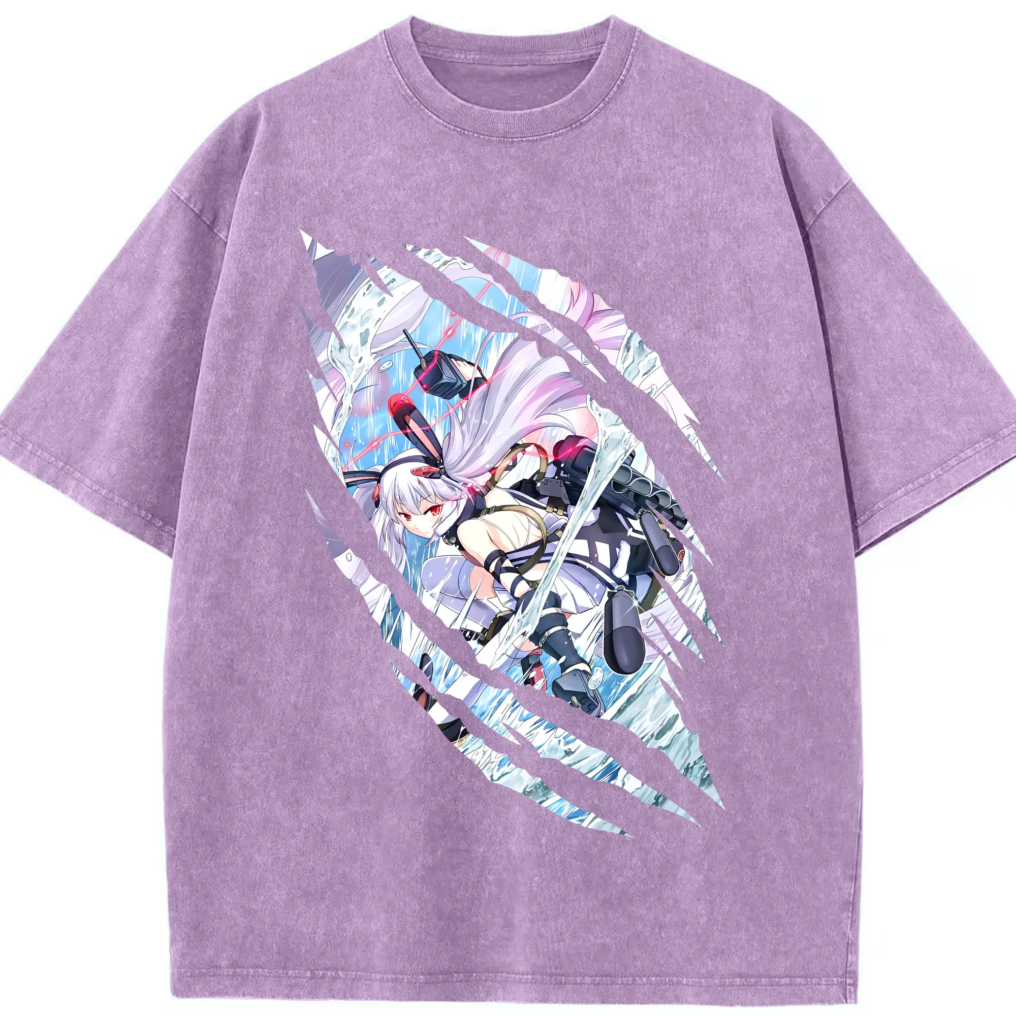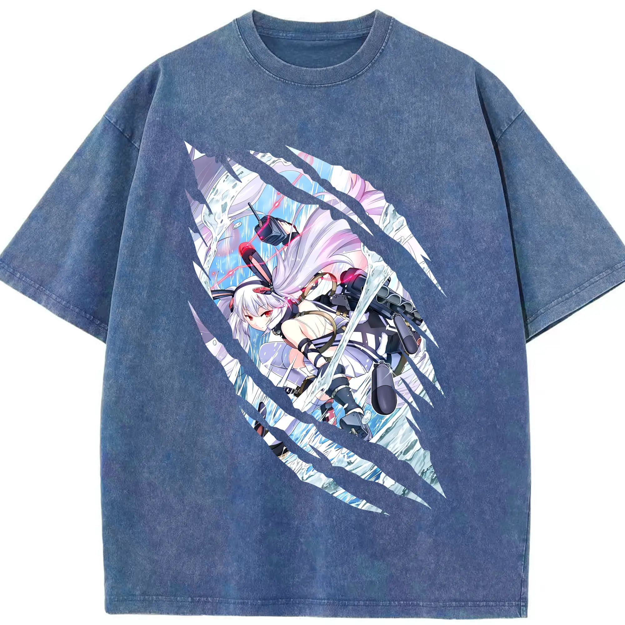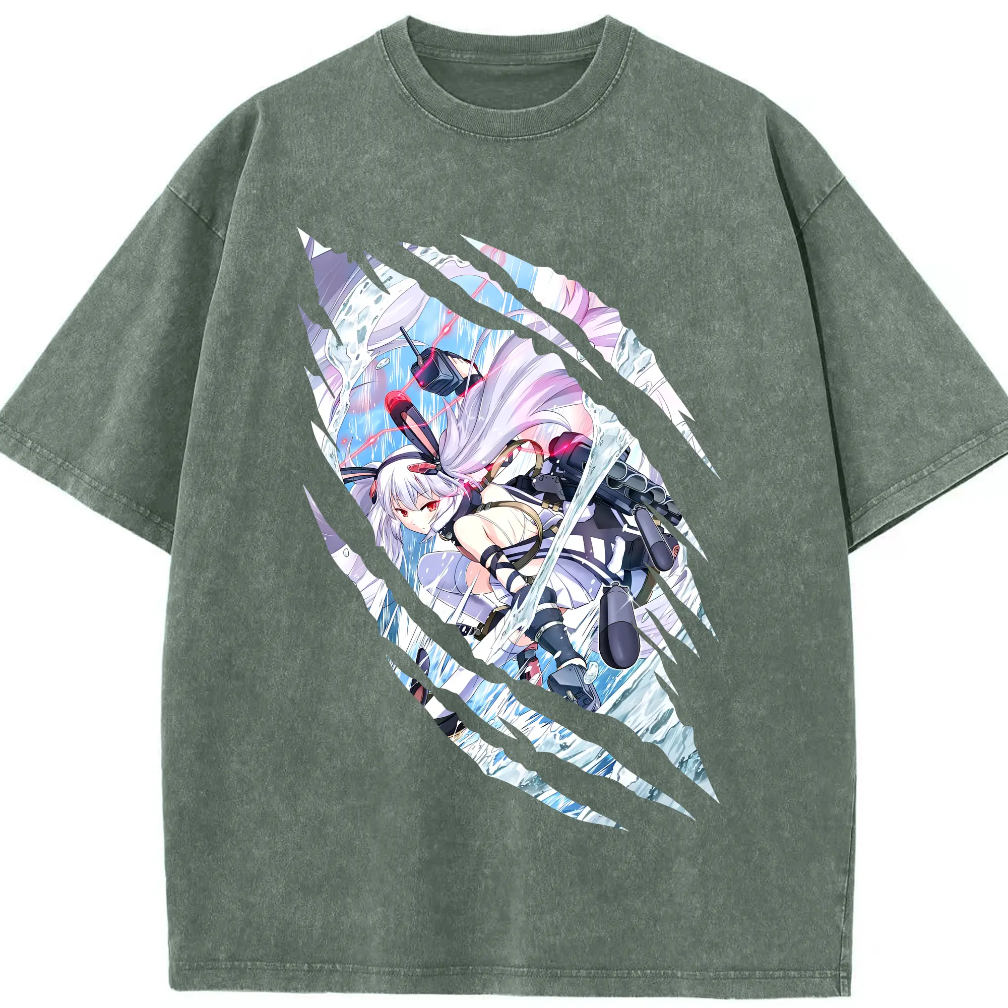 アズールレーン グッズ,ラフィー - 綿100% ヴィンテージ風 半袖Tシャツ ・ 背面プリント ・ 柔らか肌触り ・ 通気性 快適 ・ スポーツ カジュアル 外出用