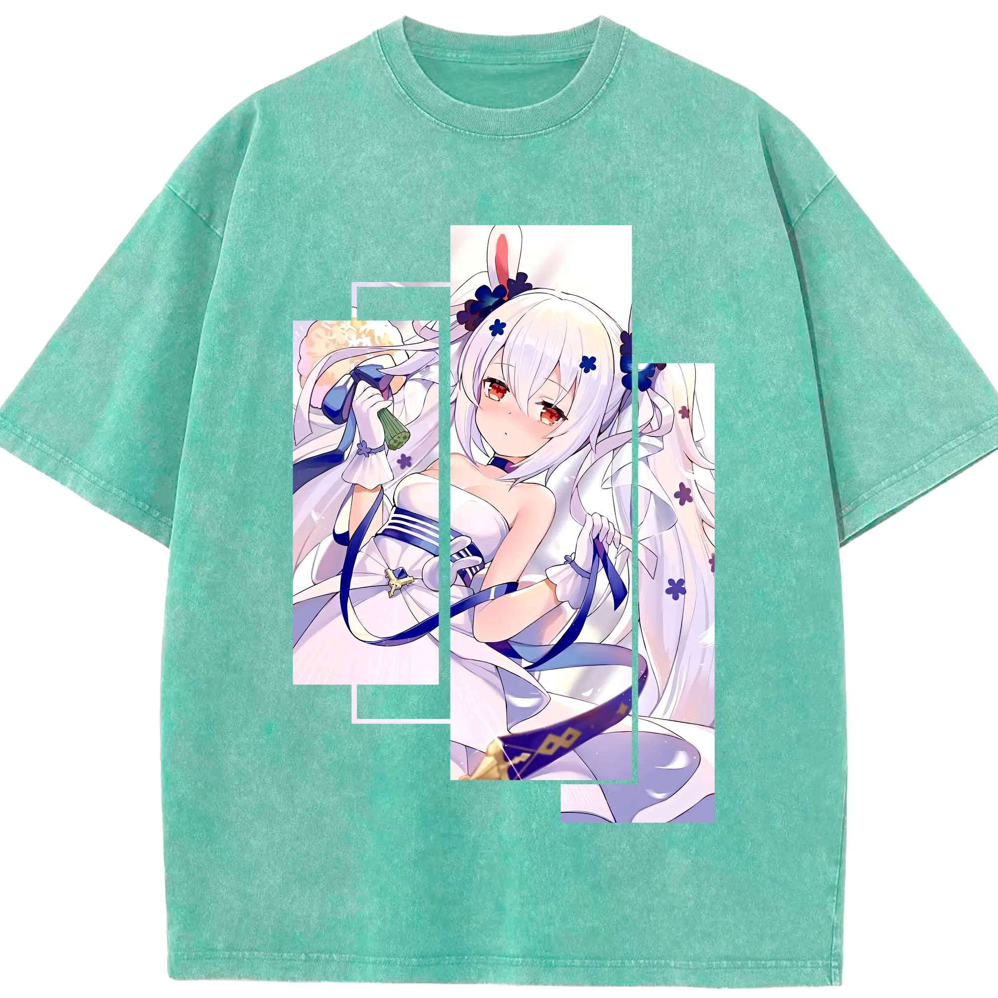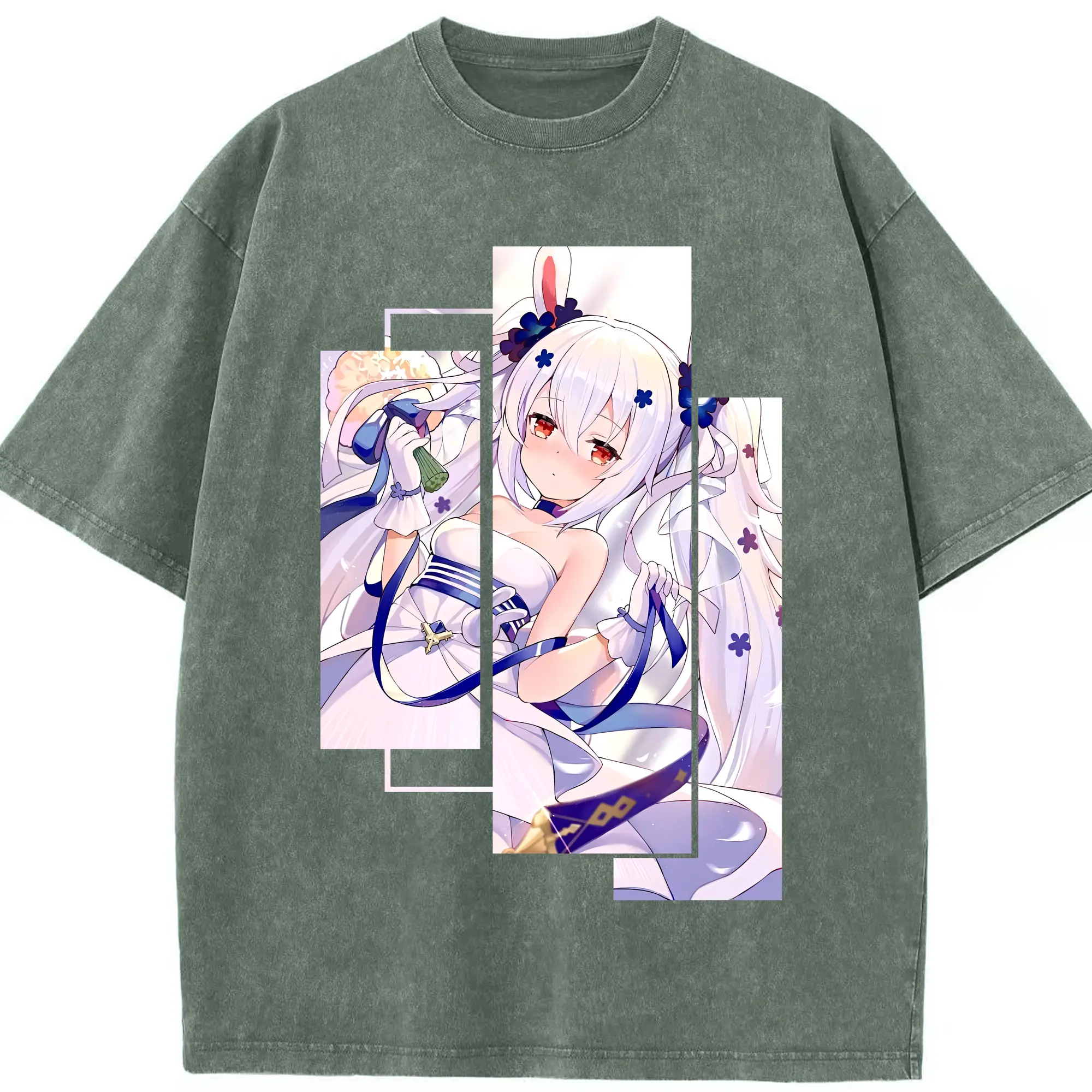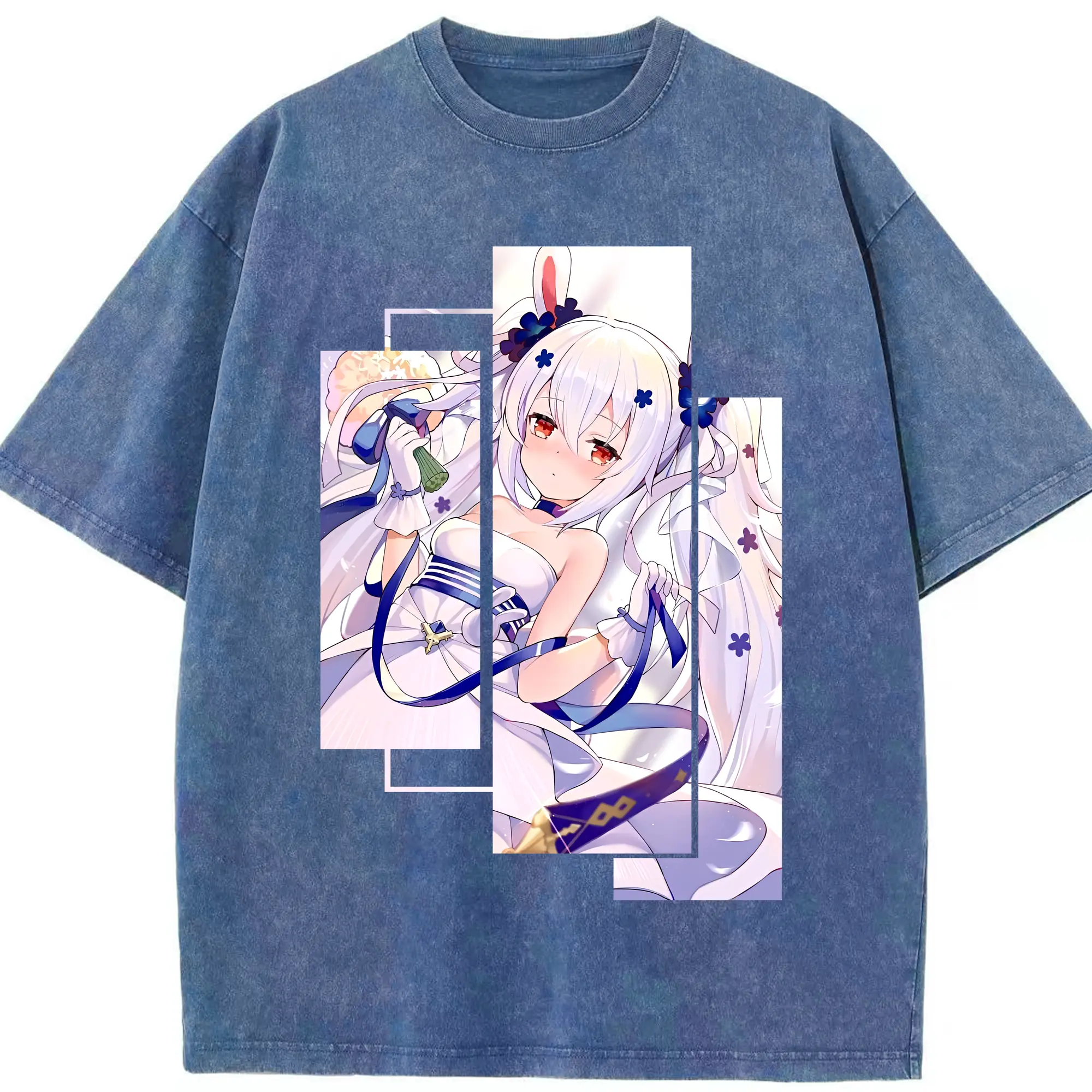 アズールレーン グッズ,ラフィー - 綿100% ヴィンテージ風 半袖Tシャツ ・ 背面プリント ・ 柔らか肌触り ・ 通気性 快適 ・ スポーツ カジュアル 外出用