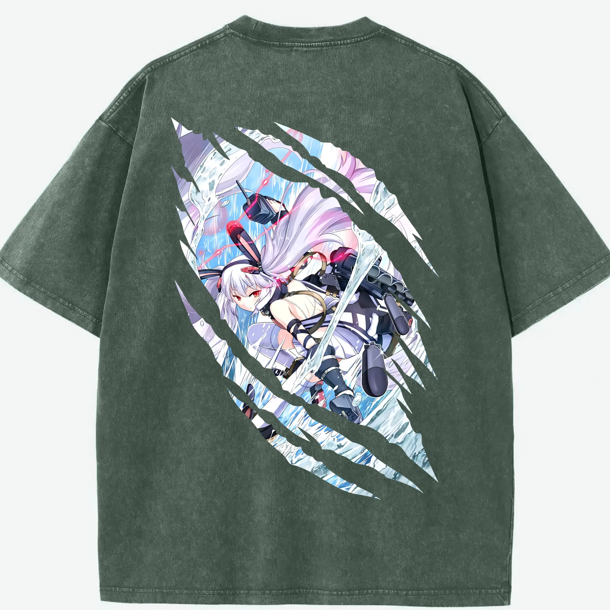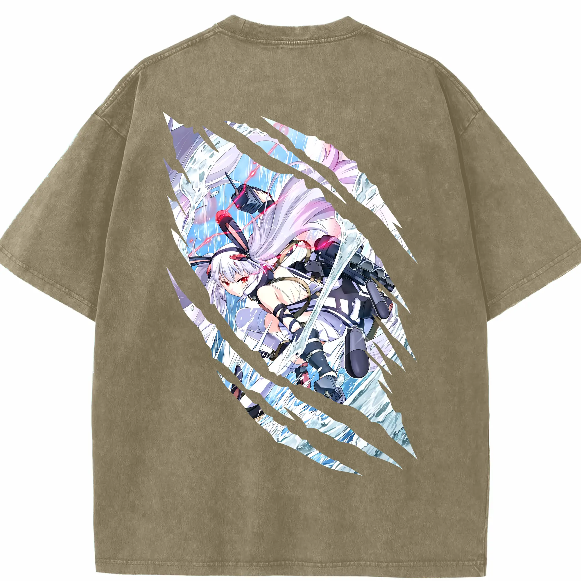 アズールレーン グッズ,ラフィー - 綿100% ヴィンテージ風 半袖Tシャツ ・ フロントプリント ・ 柔らか肌触り ・ 通気性 快適 ・ スポーツ カジュアル 外出用