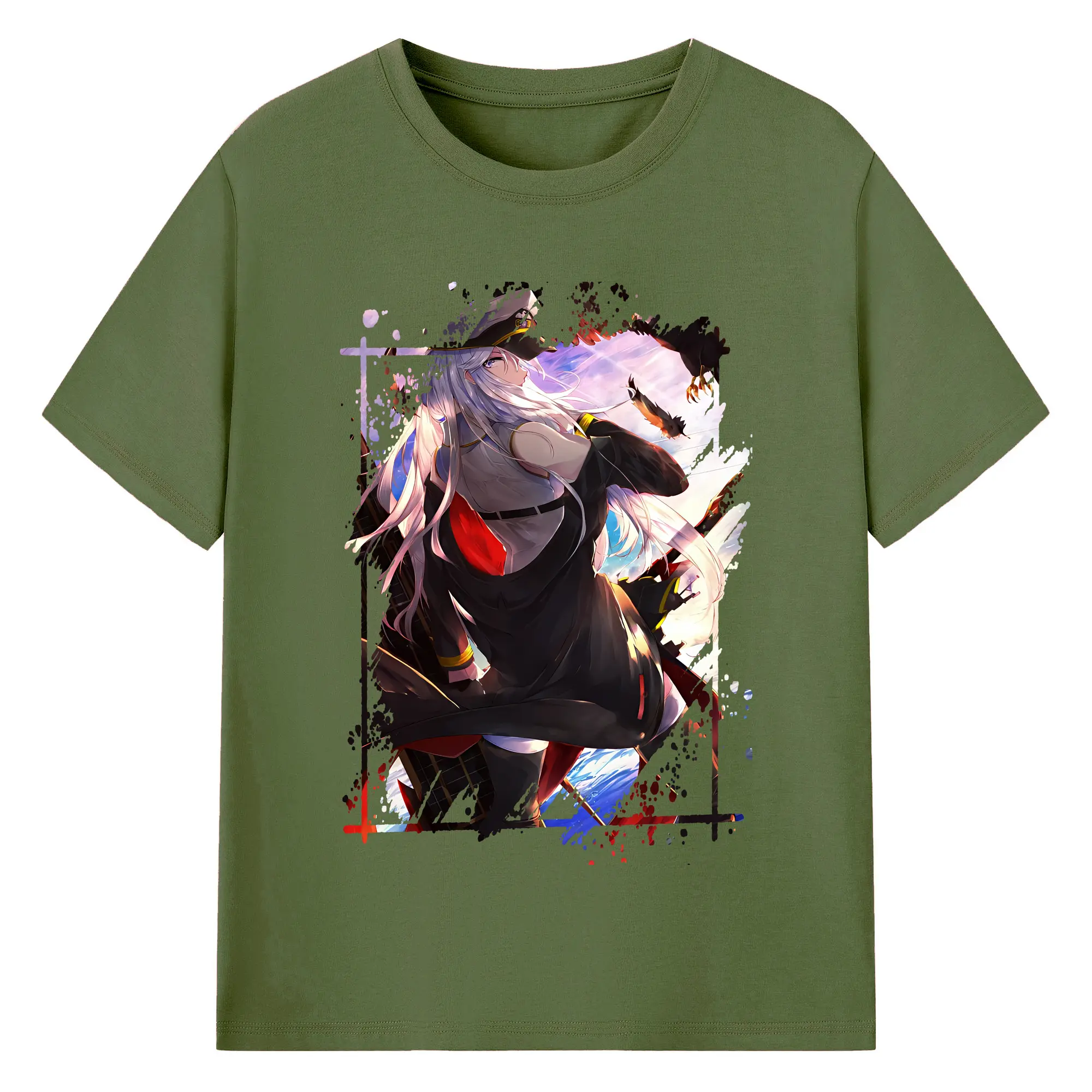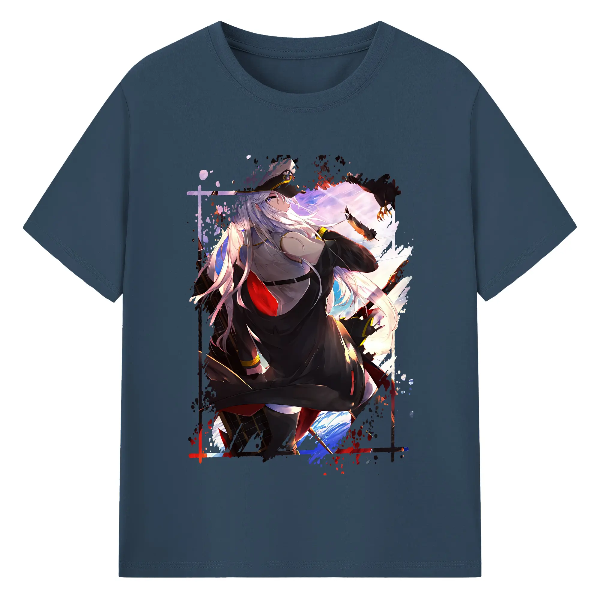 アズールレーン グッズ,エンタープライズ - 綿100% ヴィンテージ風 半袖Tシャツ ・ フロントプリント ・ 柔らか肌触り ・ 通気性 快適 ・ スポーツ カジュアル 外出用