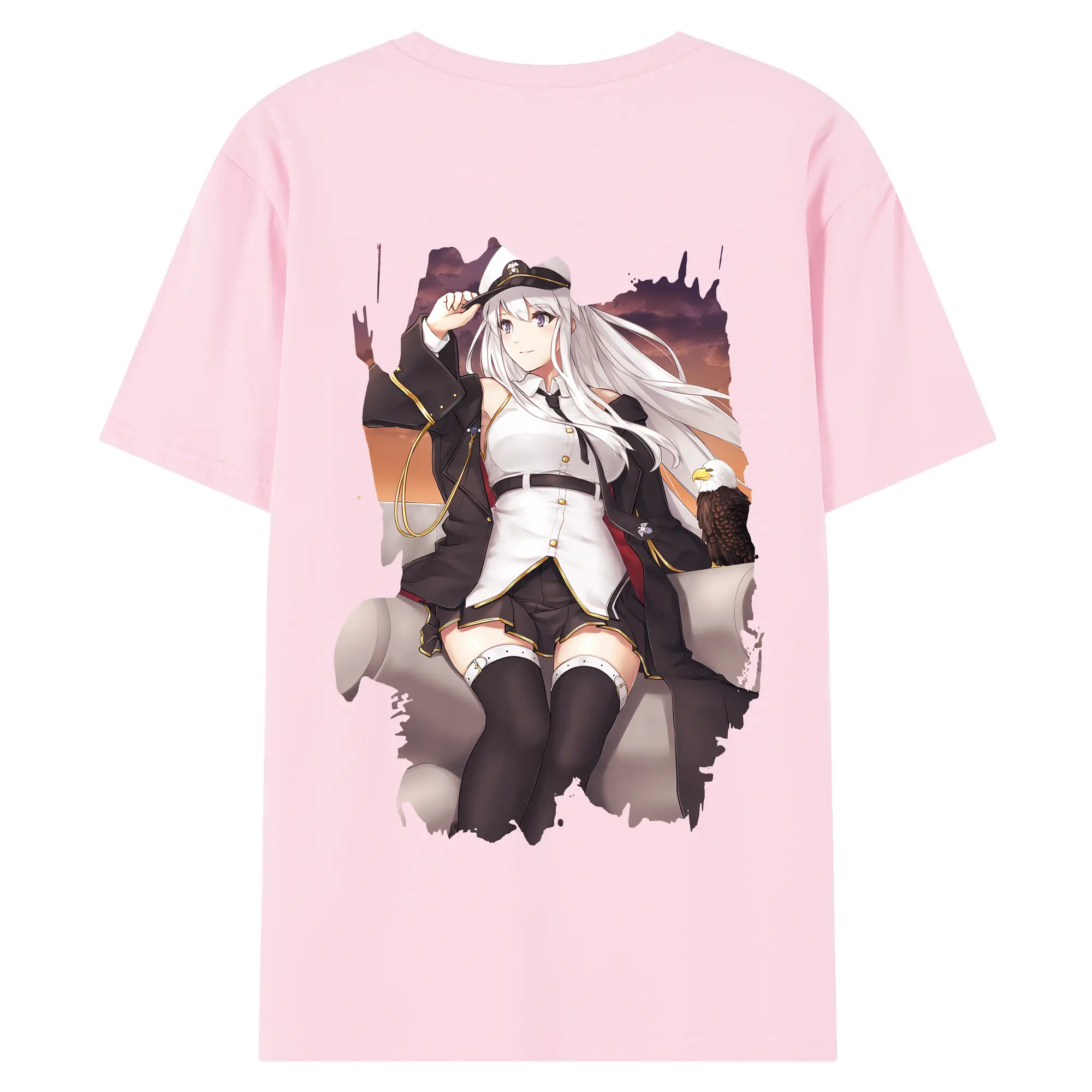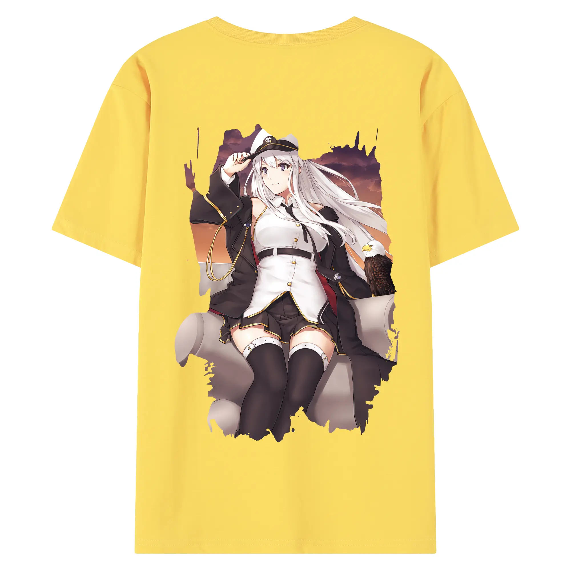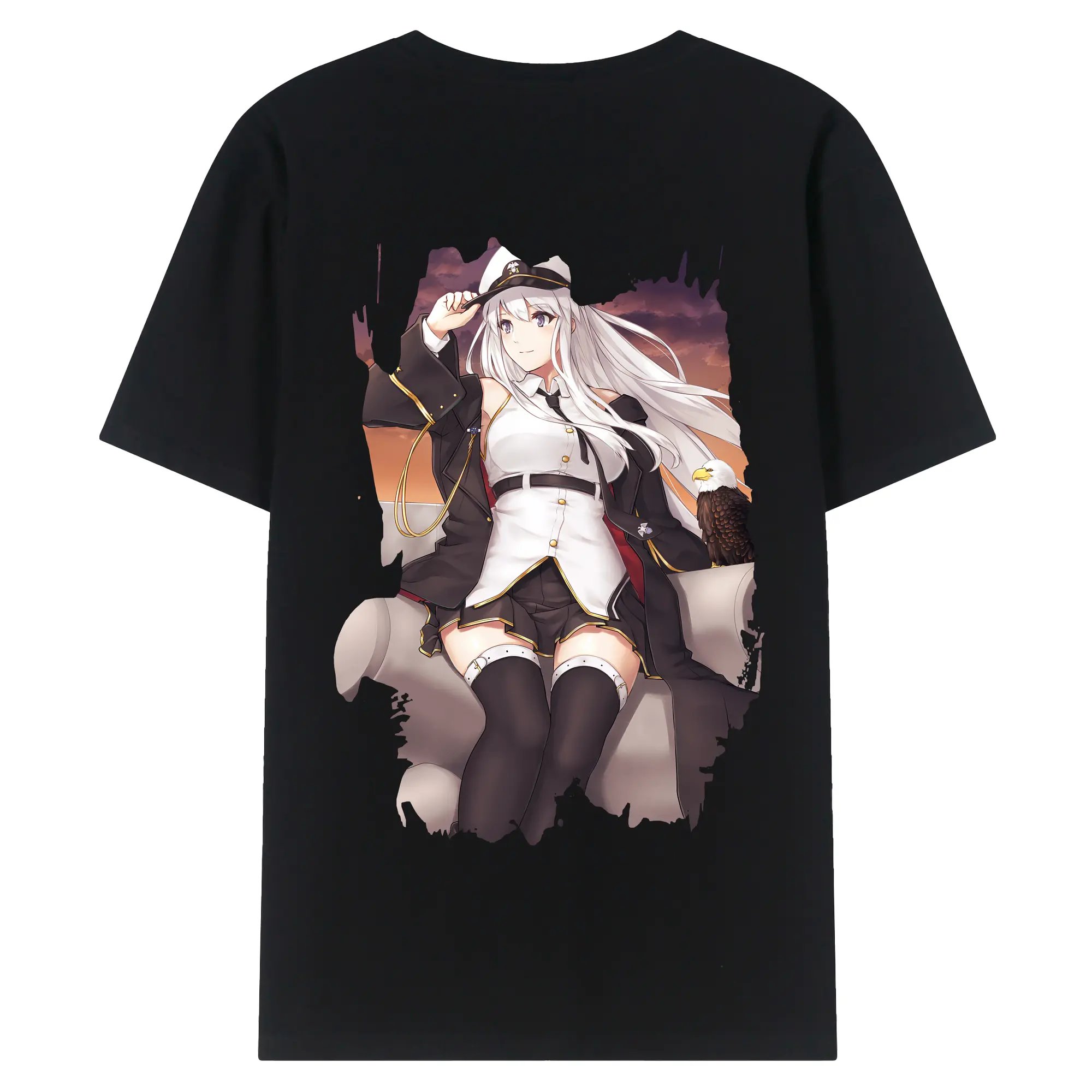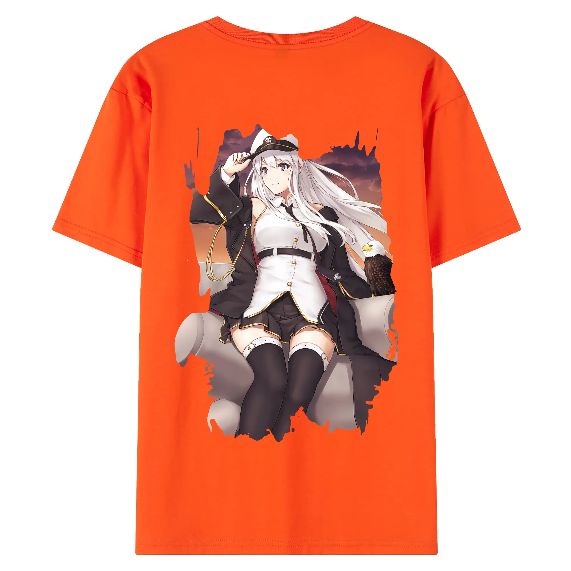 アズールレーン グッズ,エンタープライズ - 綿100% ヴィンテージ風 半袖Tシャツ ・ 背面プリント ・ 柔らか肌触り ・ 通気性 快適 ・ スポーツ カジュアル 外出用